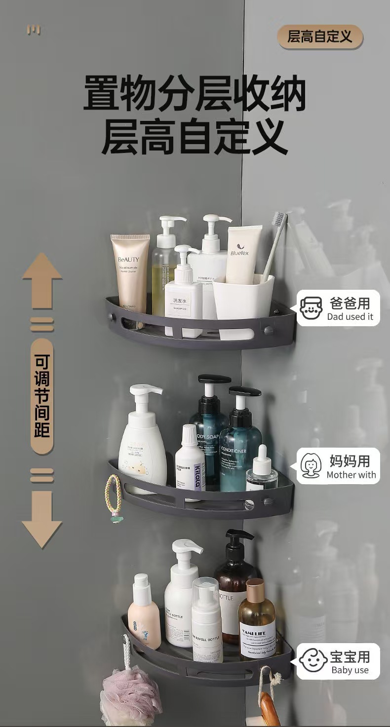 욕실 삼각형 선반 벽 욕실 선반 욕실 화장실 펀치없는 스토리지 랙 수건 걸이스토어 가기