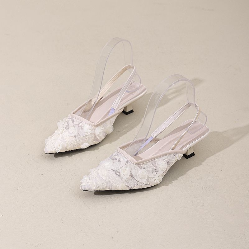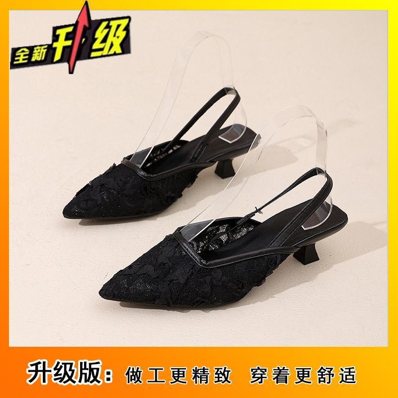 여성을 위한 부드러운 뾰족한 발가락, 두꺼운 굽, 겉옷용 반슬리퍼, 2025 봄 여름 신작 패션 메쉬 샌들스토어 가기