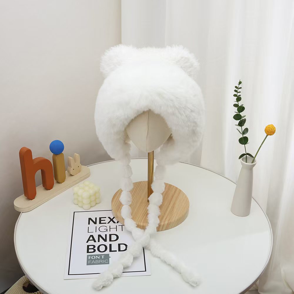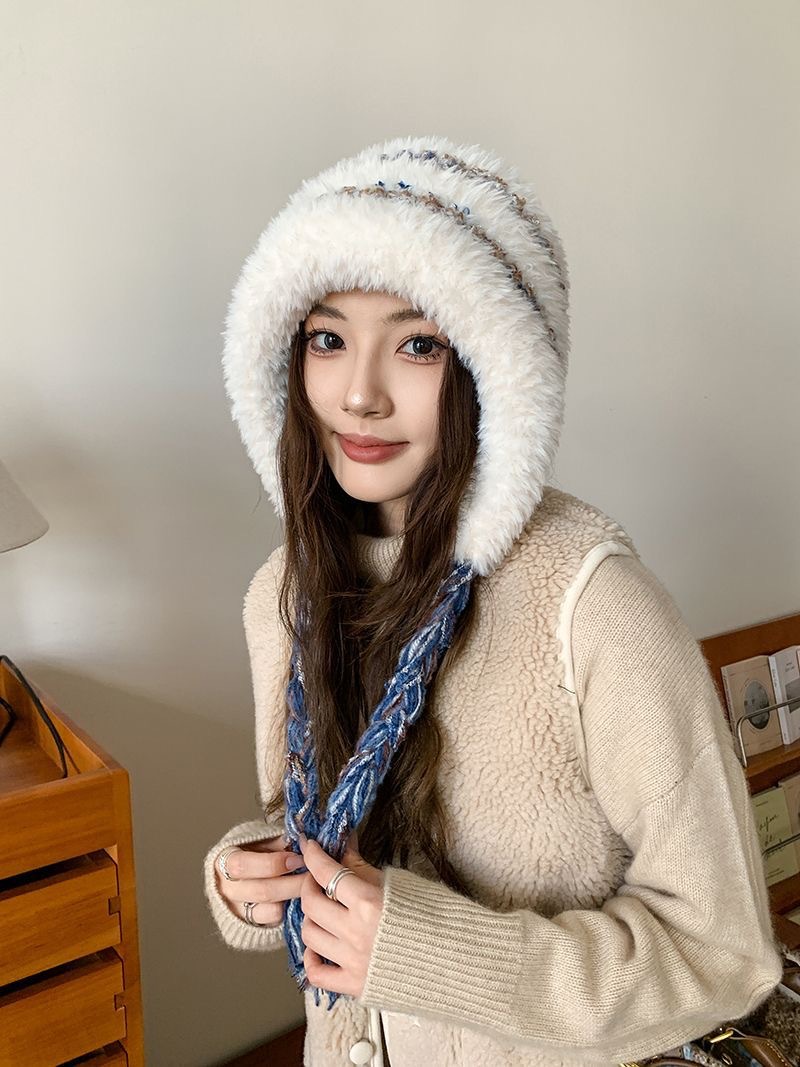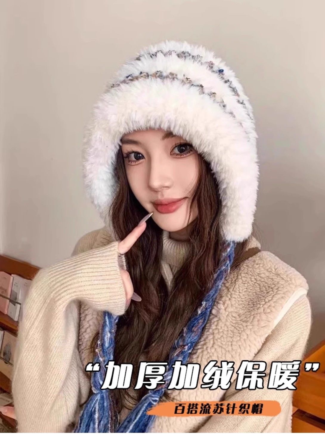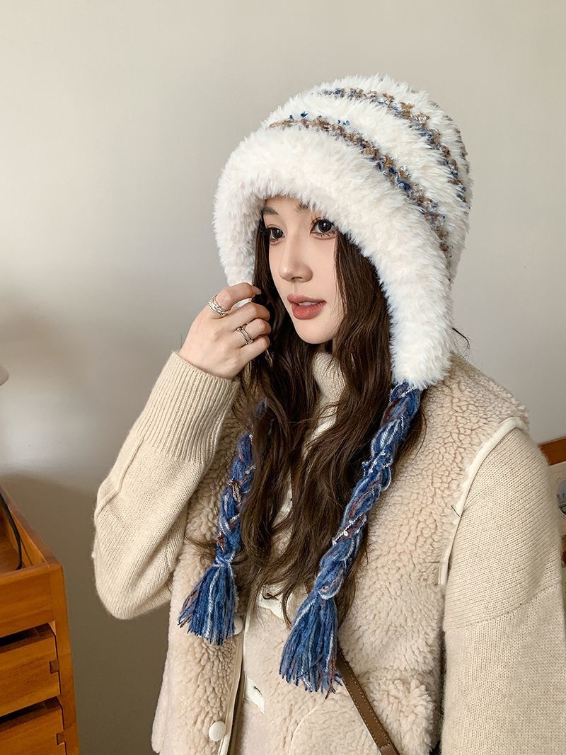 여성을 위한 겨울 따뜻한 귀 보호 컬러 로프 플러시 모자, 다용도 방풍 니트 모직 모자, 벨벳 및 두꺼운 사이클링 풀오버 모자스토어 가기