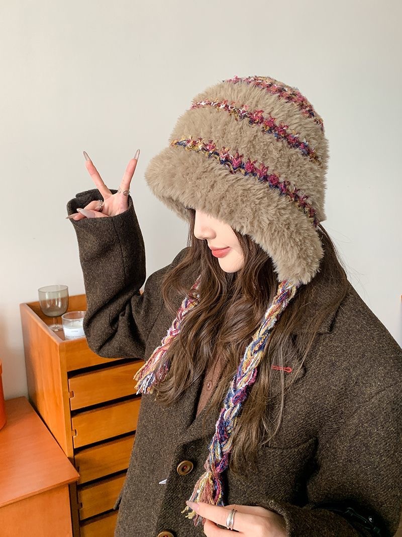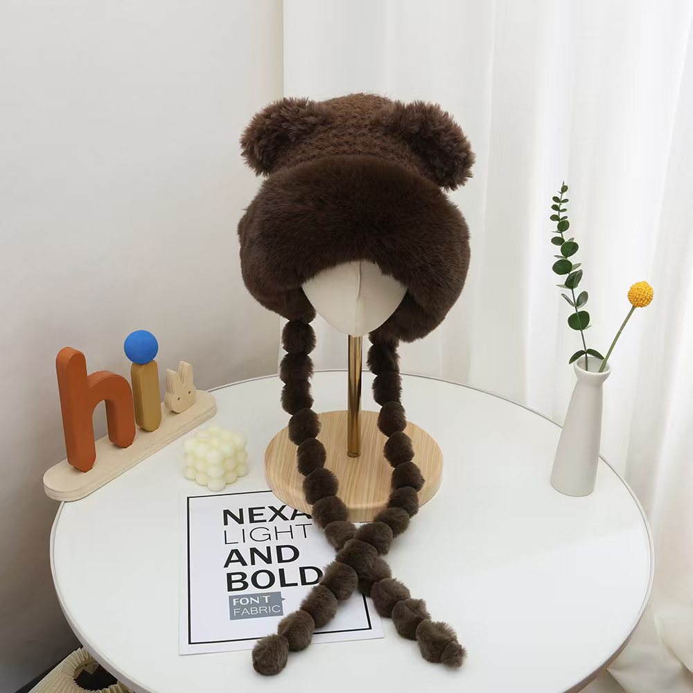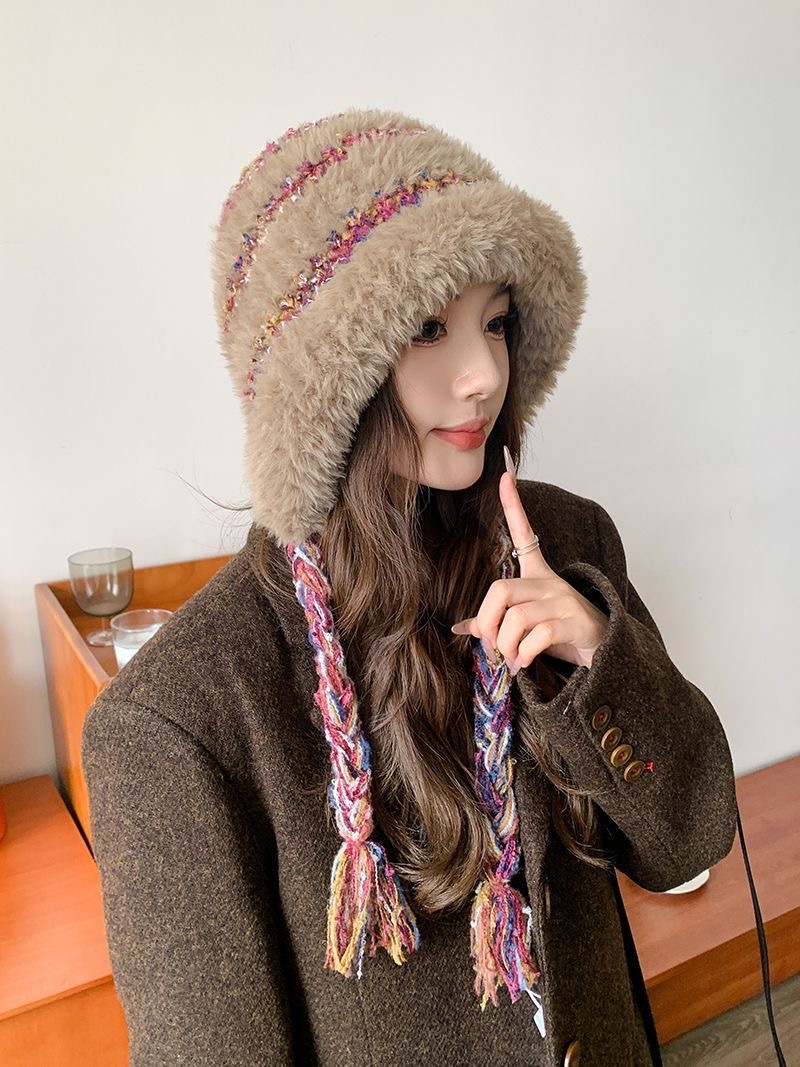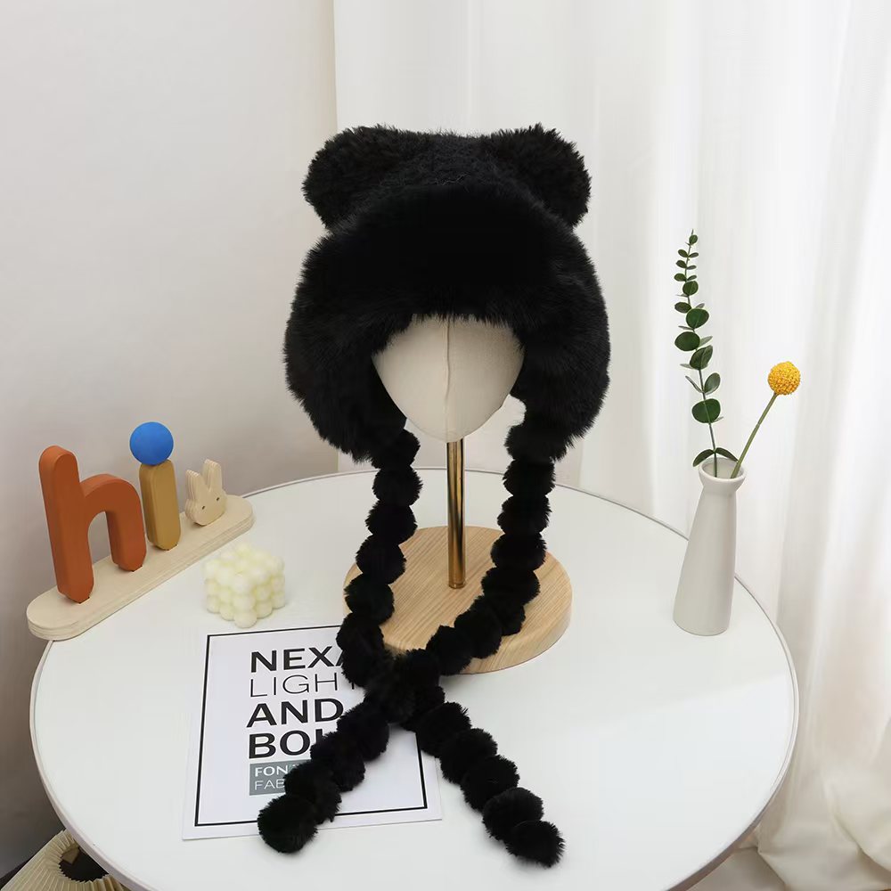 여성을 위한 겨울 따뜻한 귀 보호 컬러 로프 플러시 모자, 다용도 방풍 니트 모직 모자, 벨벳 및 두꺼운 사이클링 풀오버 모자스토어 가기