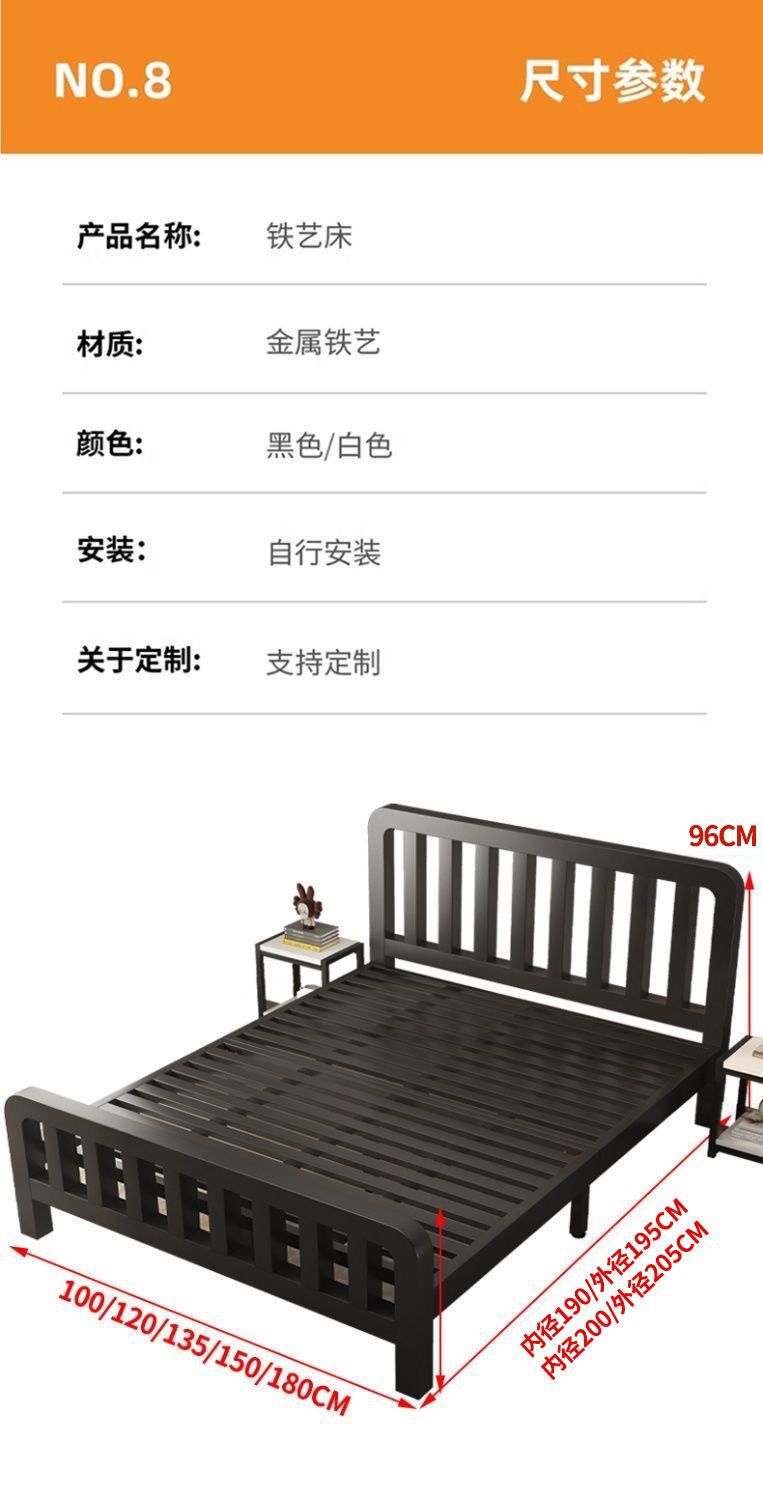북유럽 스타일의 현대적인 간단한 철제 침대 더블 홈 임대 학생 경제적 인 강화 싱글 침대 이상한 소리 없음스토어 가기