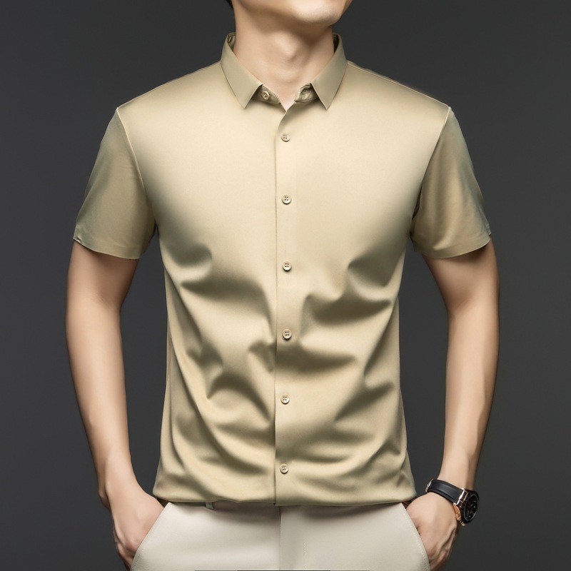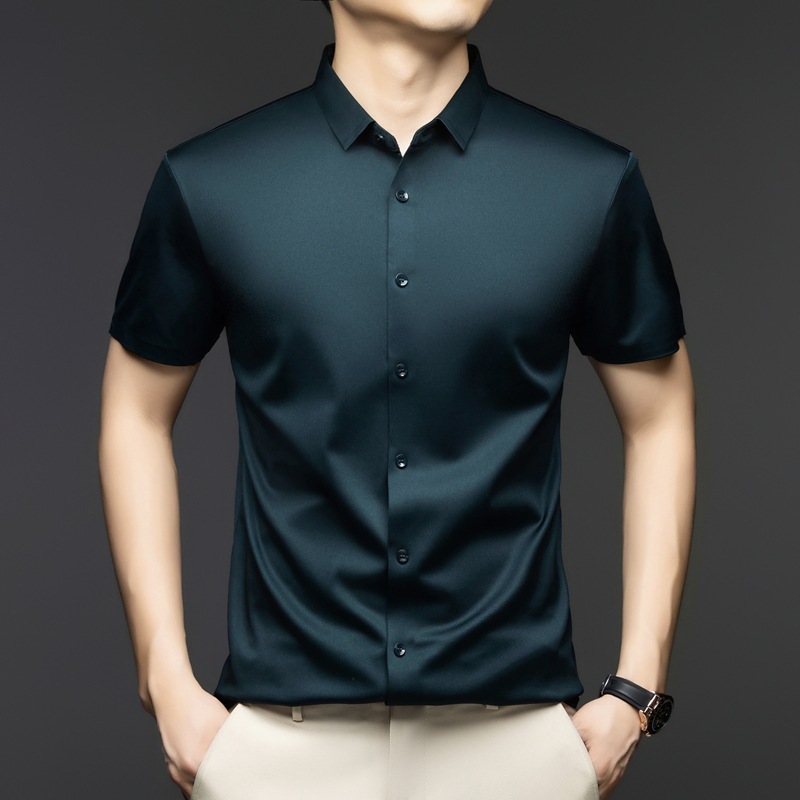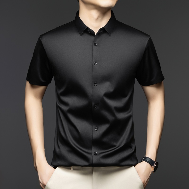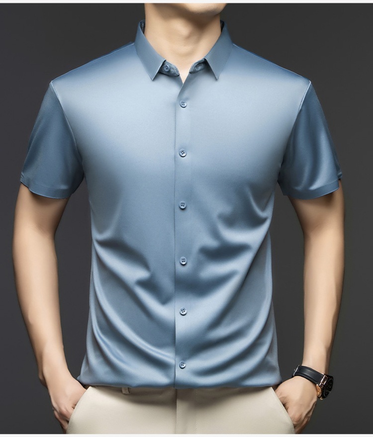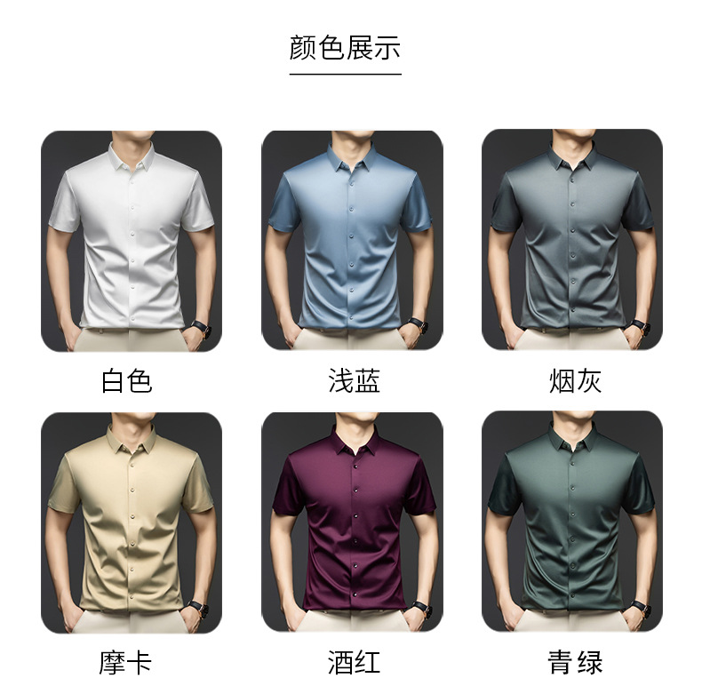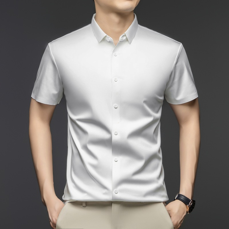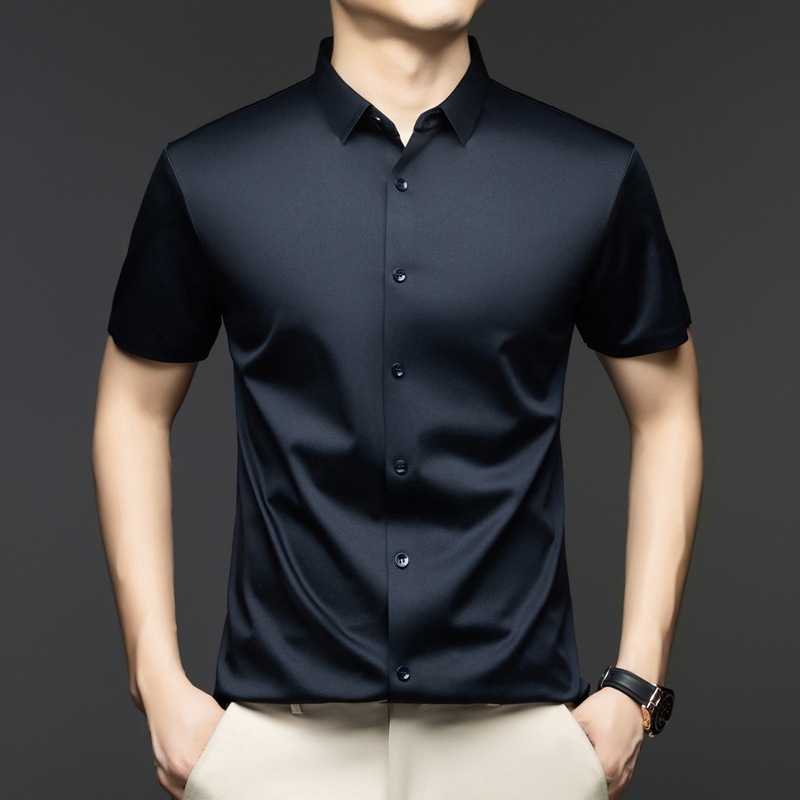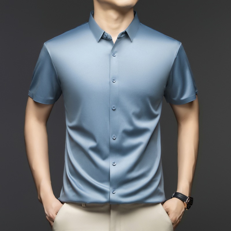 2025 여름 얼음 실크 반팔 셔츠 남성 비즈니스 캐주얼 통기성 주름 방지 원활한 솔리드 컬러 남성용 다용도 셔츠스토어 가기