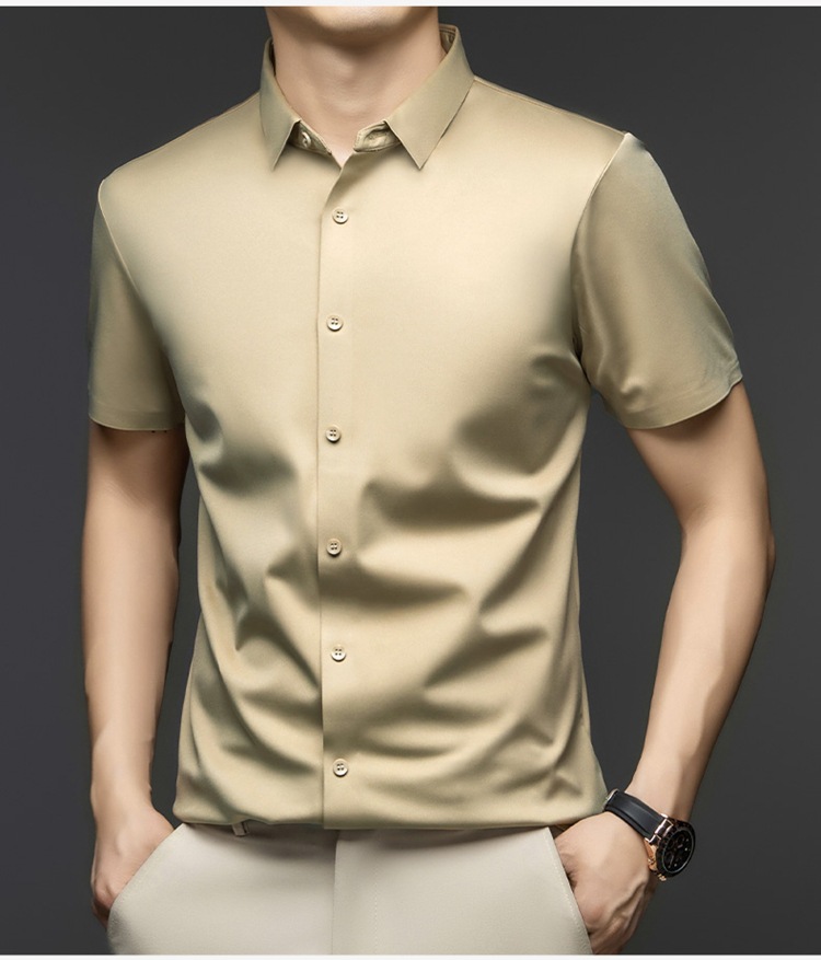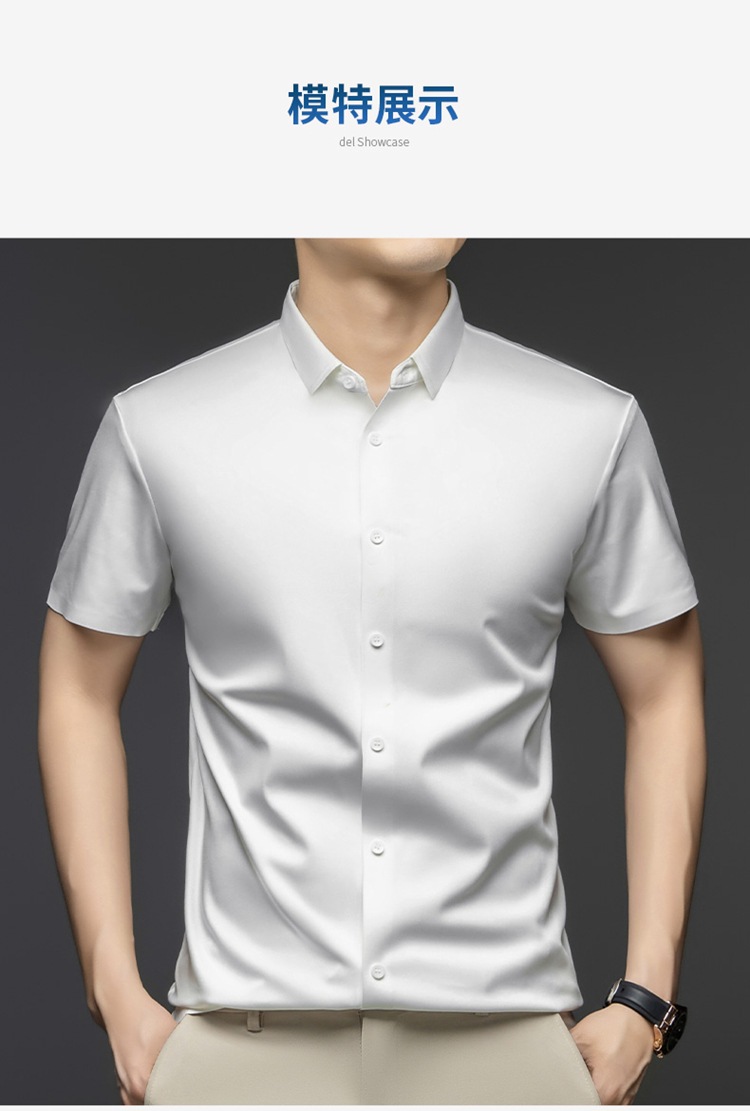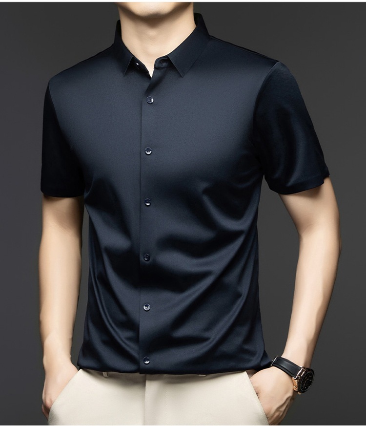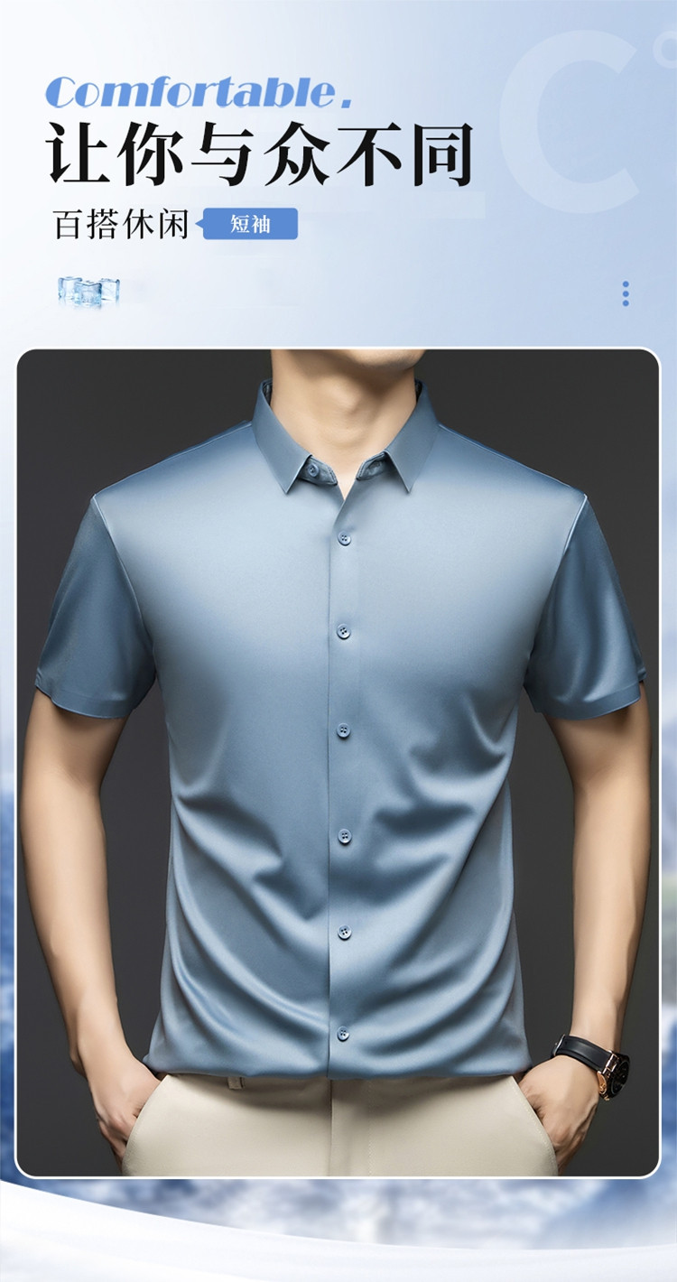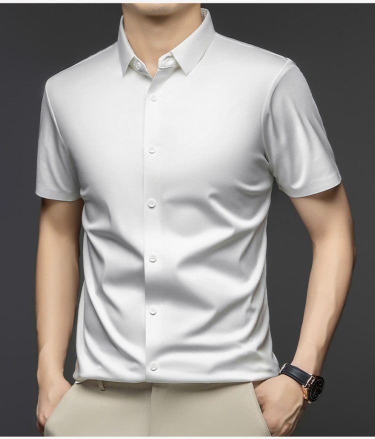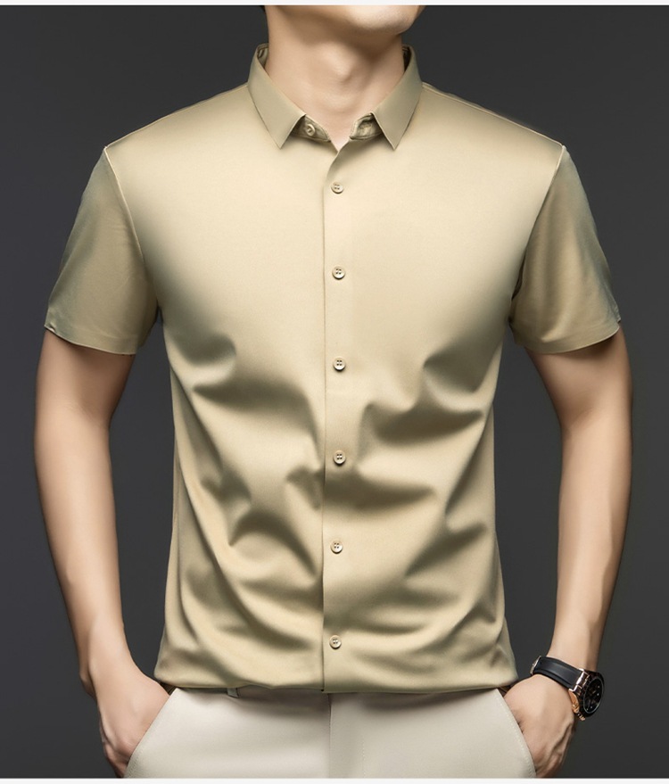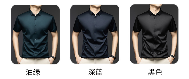 2025 여름 얼음 실크 반팔 셔츠 남성 비즈니스 캐주얼 통기성 주름 방지 원활한 솔리드 컬러 남성용 다용도 셔츠스토어 가기