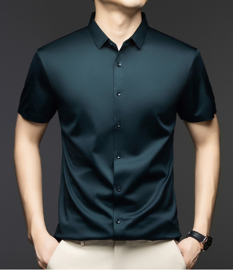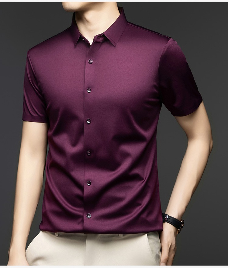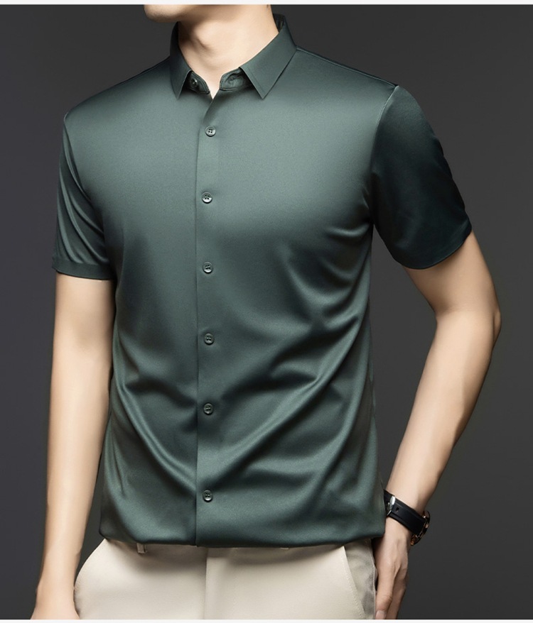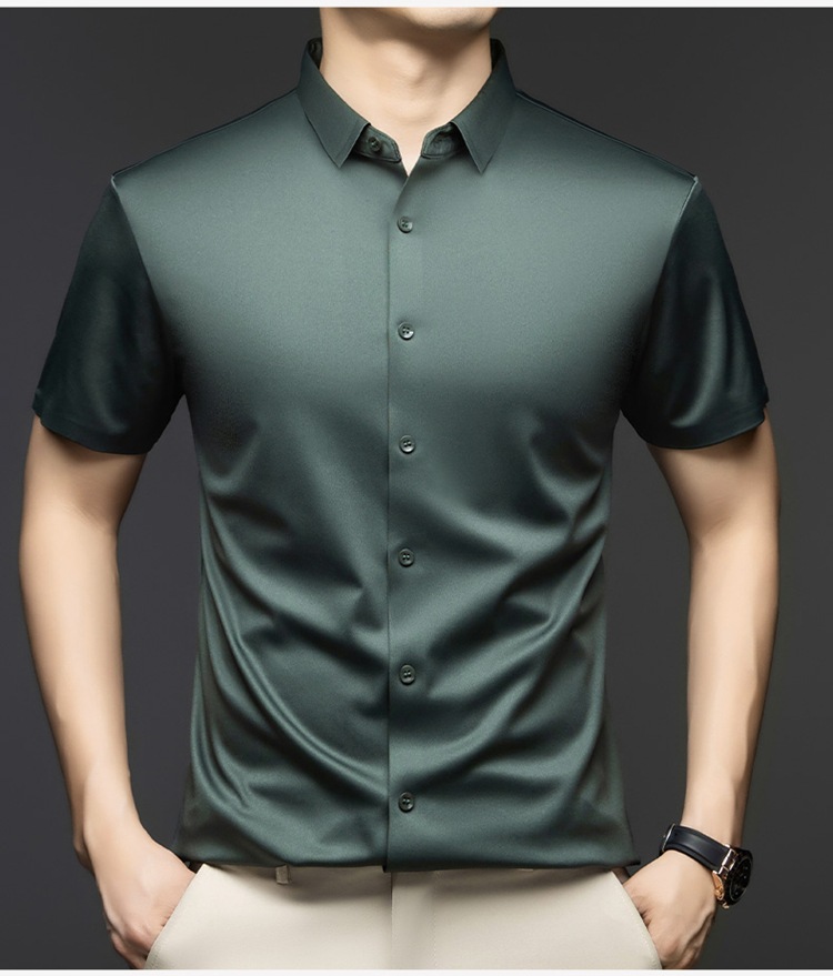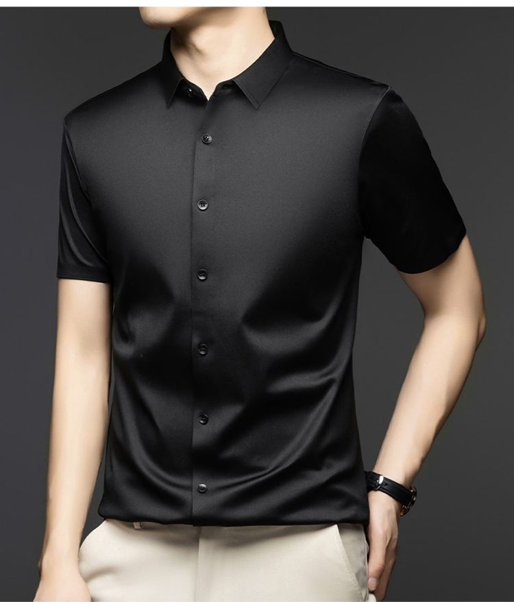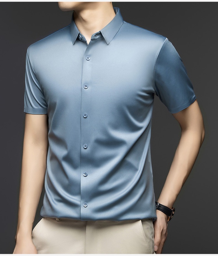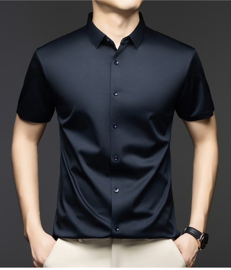 2025 여름 얼음 실크 반팔 셔츠 남성 비즈니스 캐주얼 통기성 주름 방지 원활한 솔리드 컬러 남성용 다용도 셔츠스토어 가기