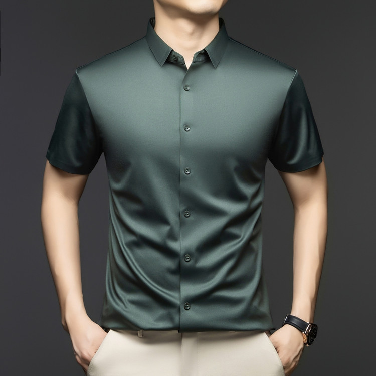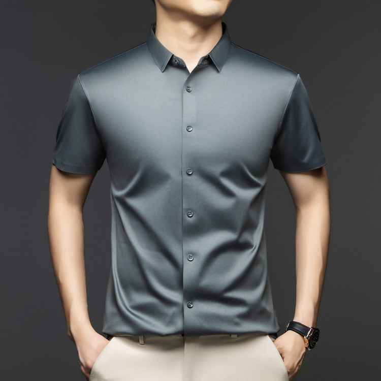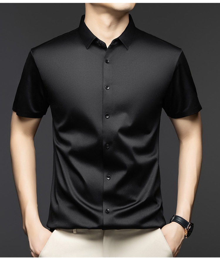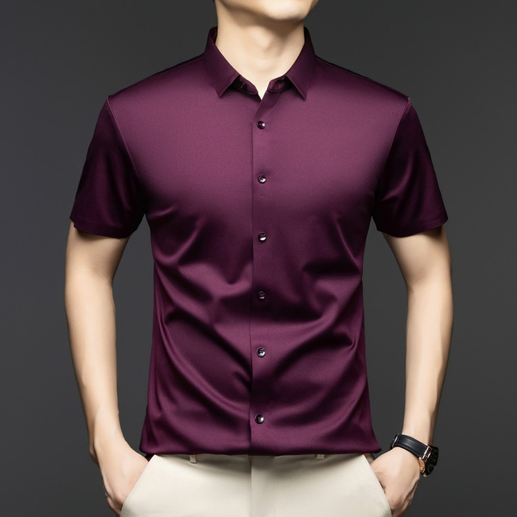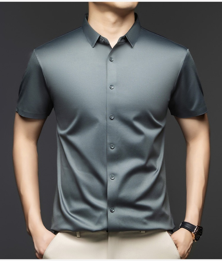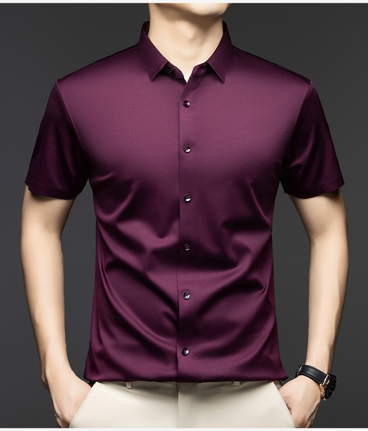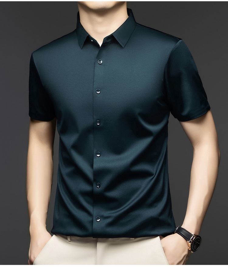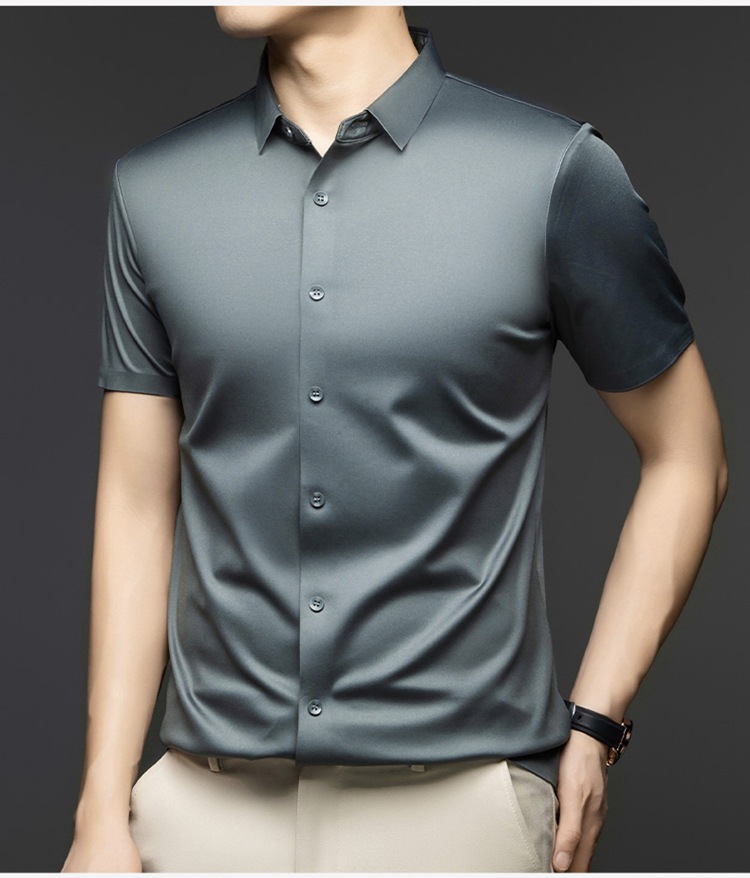 2025 여름 얼음 실크 반팔 셔츠 남성 비즈니스 캐주얼 통기성 주름 방지 원활한 솔리드 컬러 남성용 다용도 셔츠스토어 가기