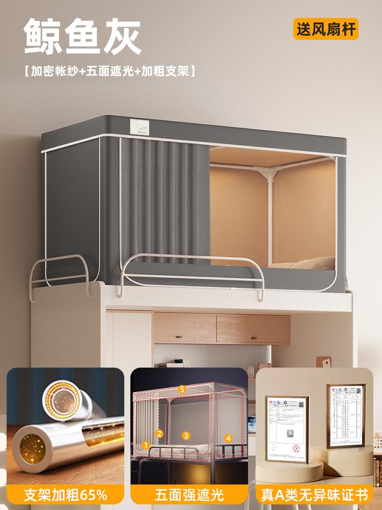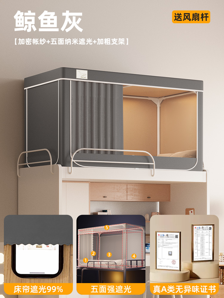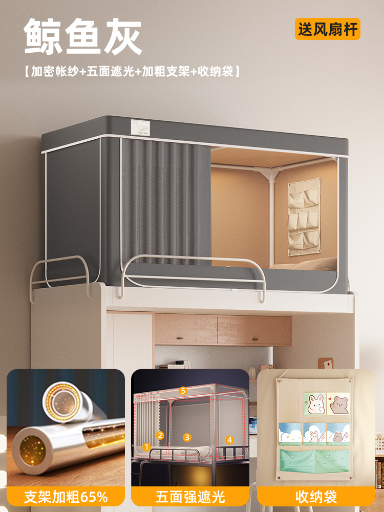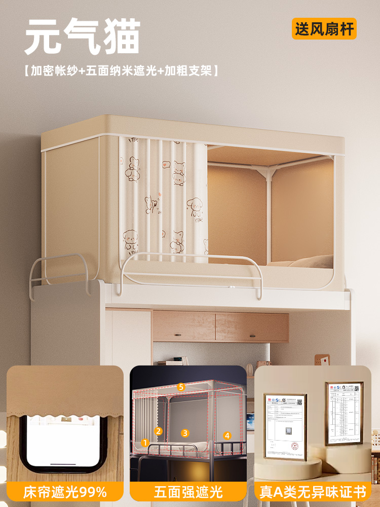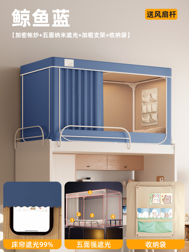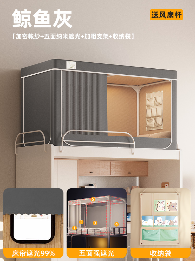 대학생을 위한 5겹 강력한 차광 기숙사 침대 커튼, 일체형 모기장, 싱글 이층 침대, 범용 올인클루시브 커튼스토어 가기