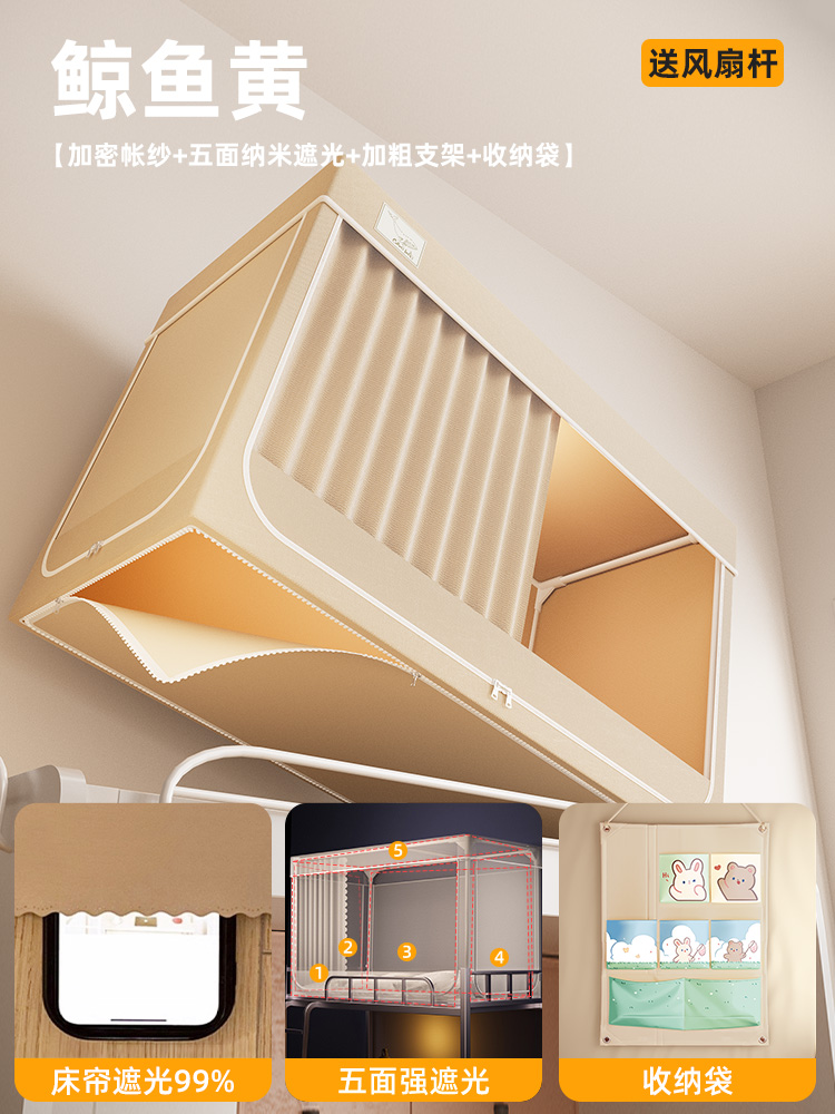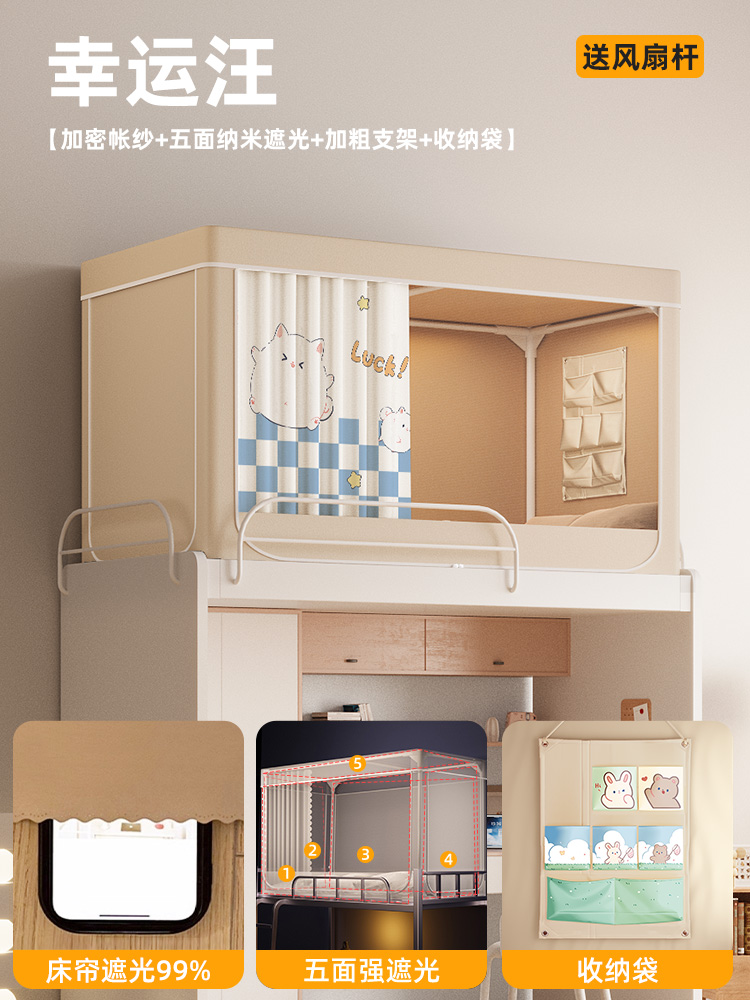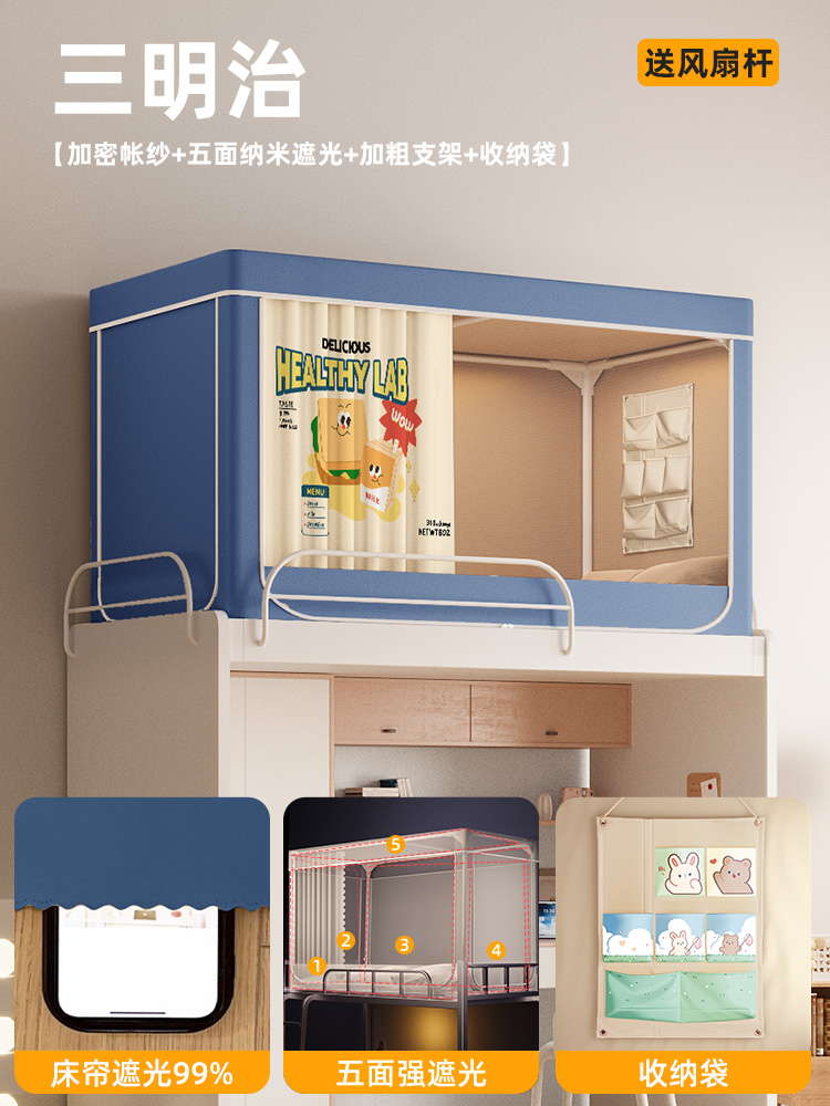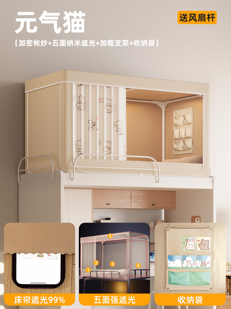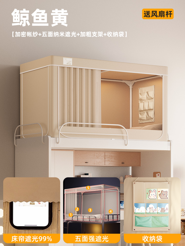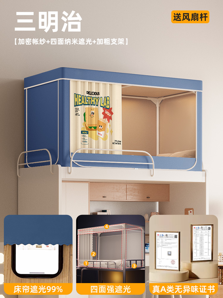 대학생을 위한 5겹 강력한 차광 기숙사 침대 커튼, 일체형 모기장, 싱글 이층 침대, 범용 올인클루시브 커튼스토어 가기