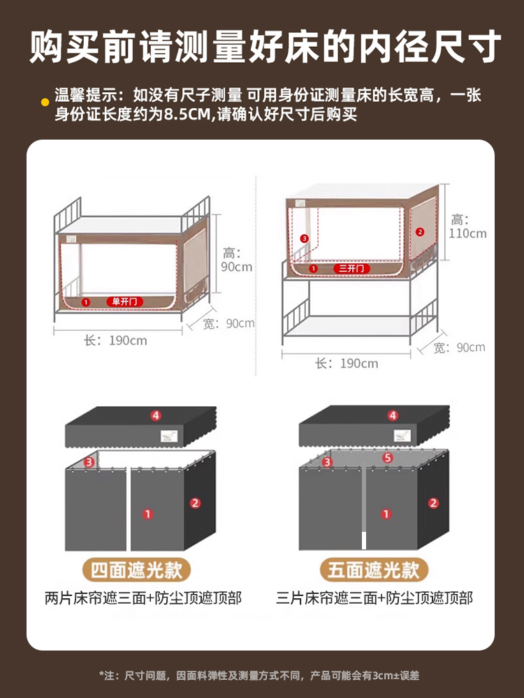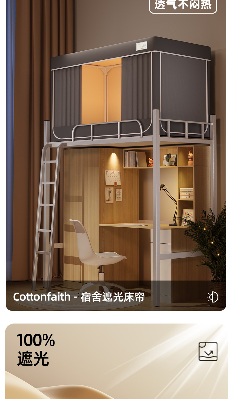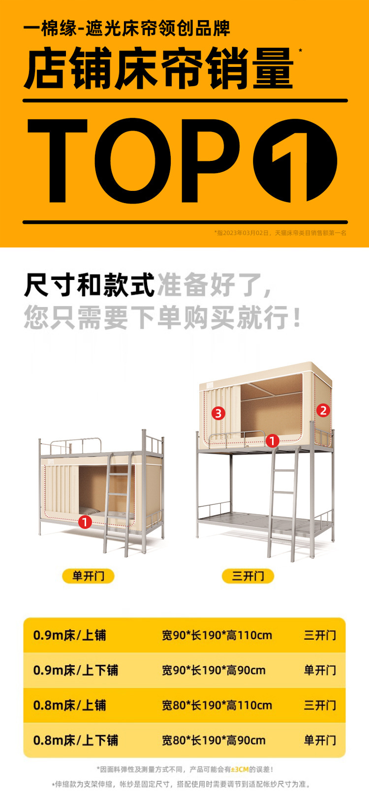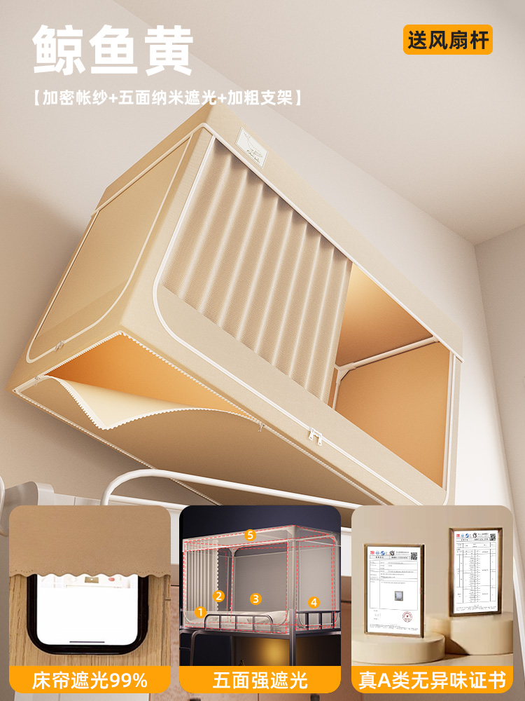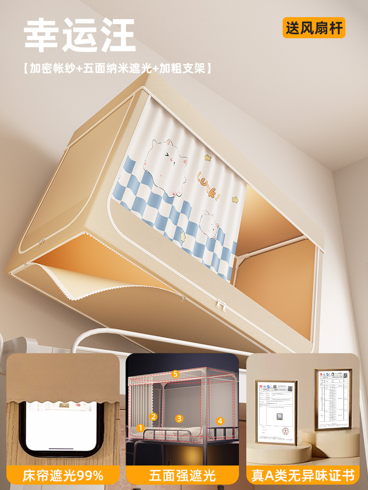 대학생을 위한 5겹 강력한 차광 기숙사 침대 커튼, 일체형 모기장, 싱글 이층 침대, 범용 올인클루시브 커튼스토어 가기