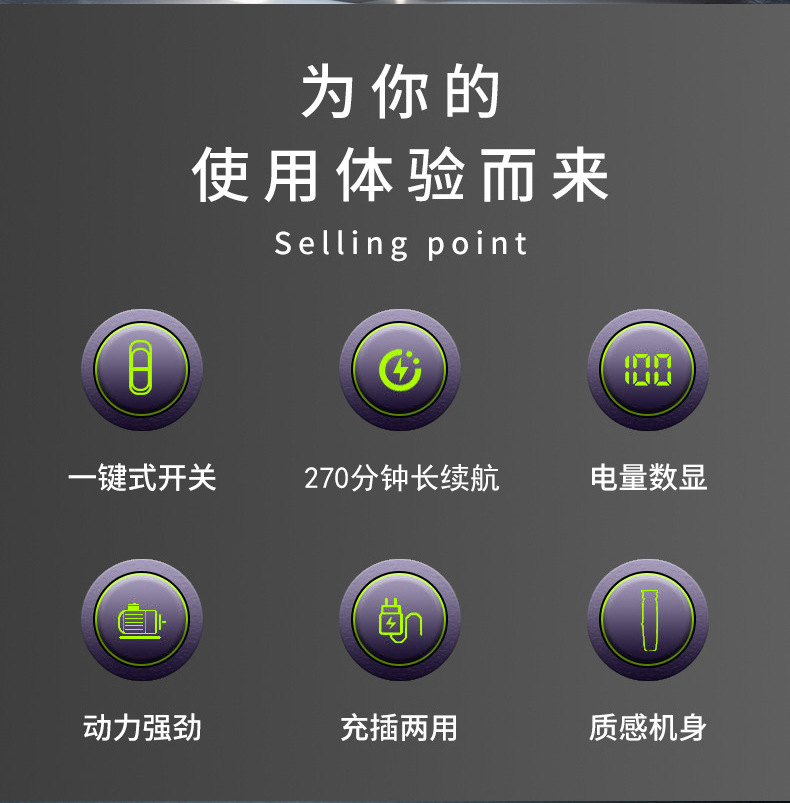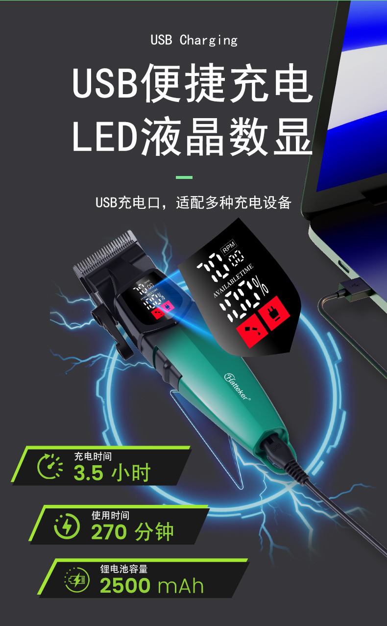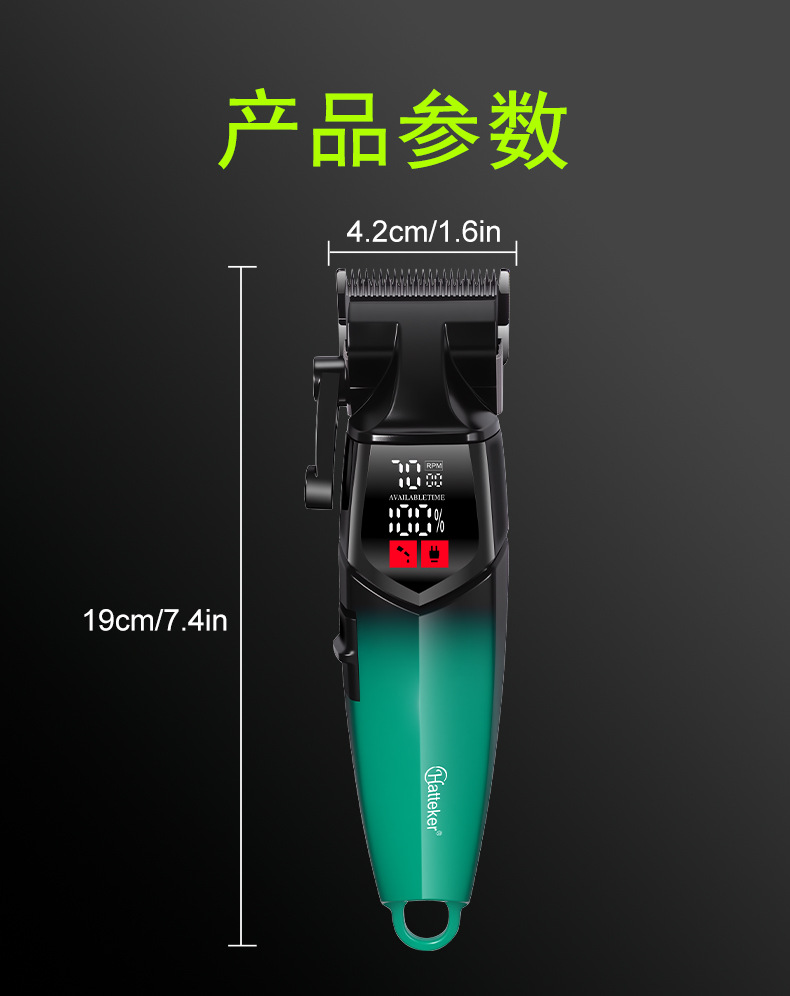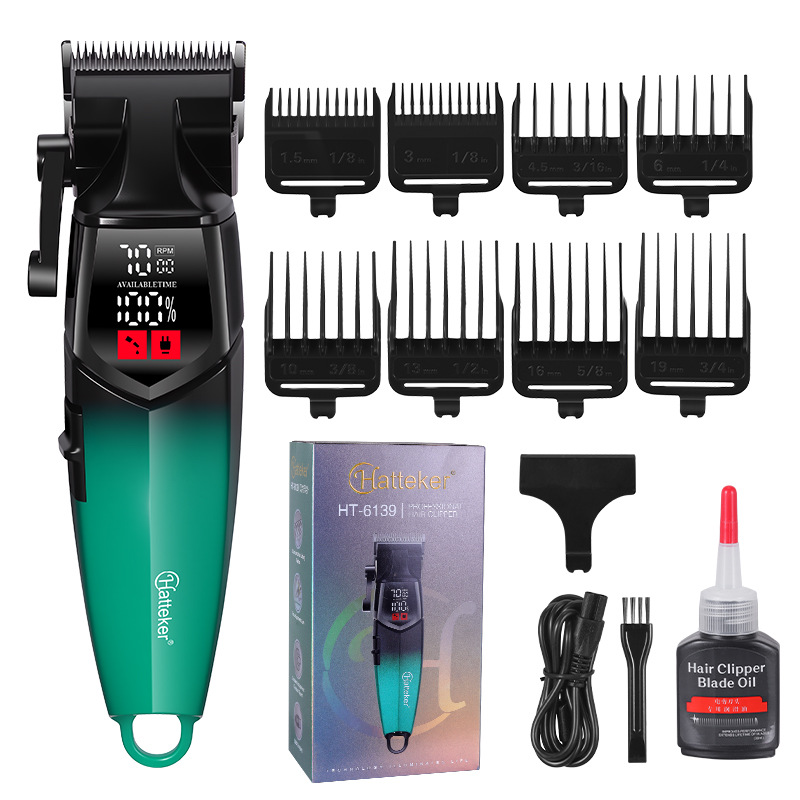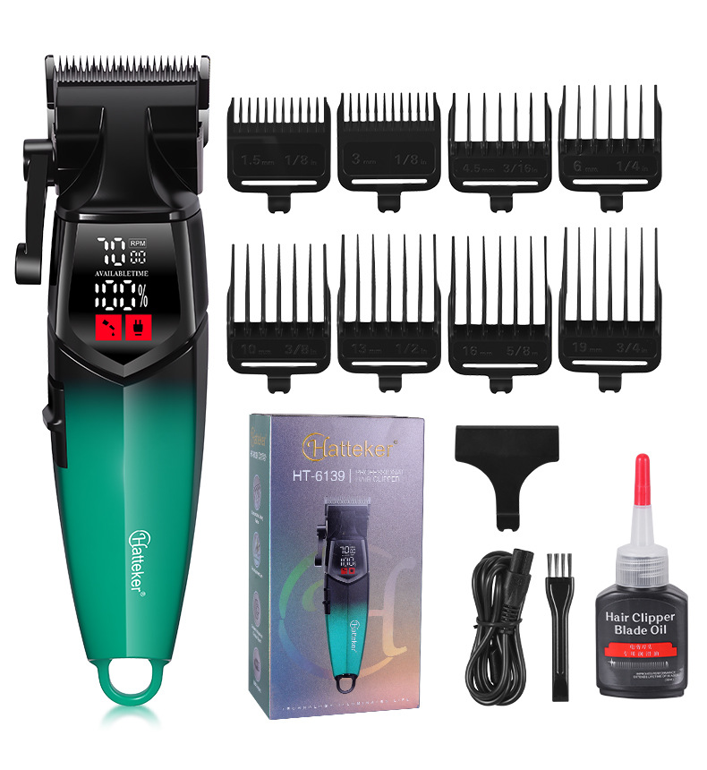 产品配置:理发器+限位梳(1.5/3/4.5/6/10/13/16/19MM)+清洁刷+润滑油+USB线+刀头保护盖+多国说明书
