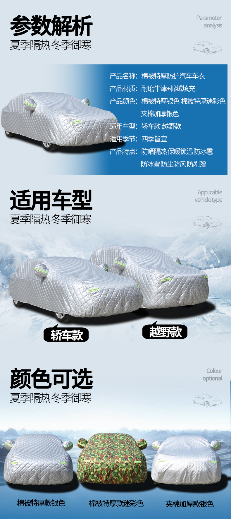 두꺼운 자동차 커버, 자외선 차단, 비, 눈, 우박, 서리 방지, 동북면 이불, 겨울 보온, 방한, 풀 커버
