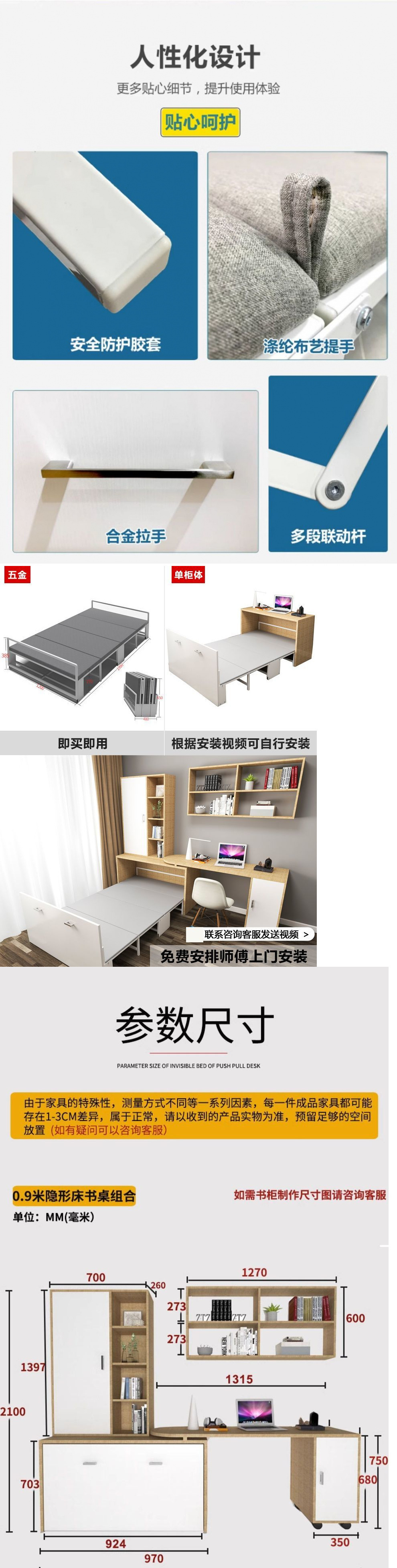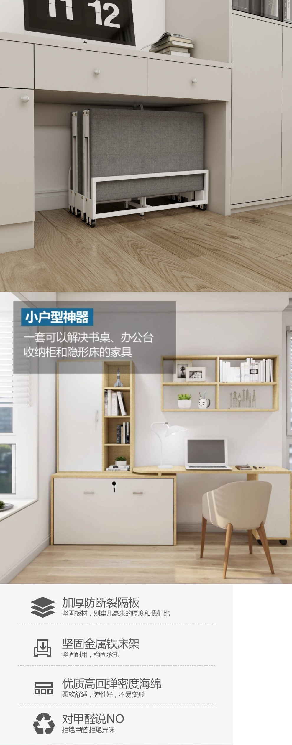 가정용 소형 아파트용 부드럽게 접히는 보이지 않는 접이식 침대, 캐비닛형 점심시간 다기능 책상 옷장에 접을 수 있음스토어 가기