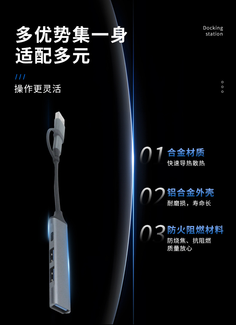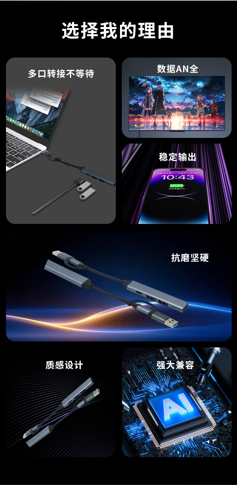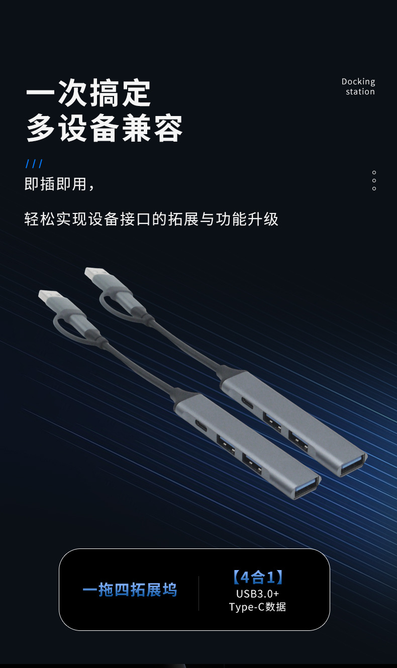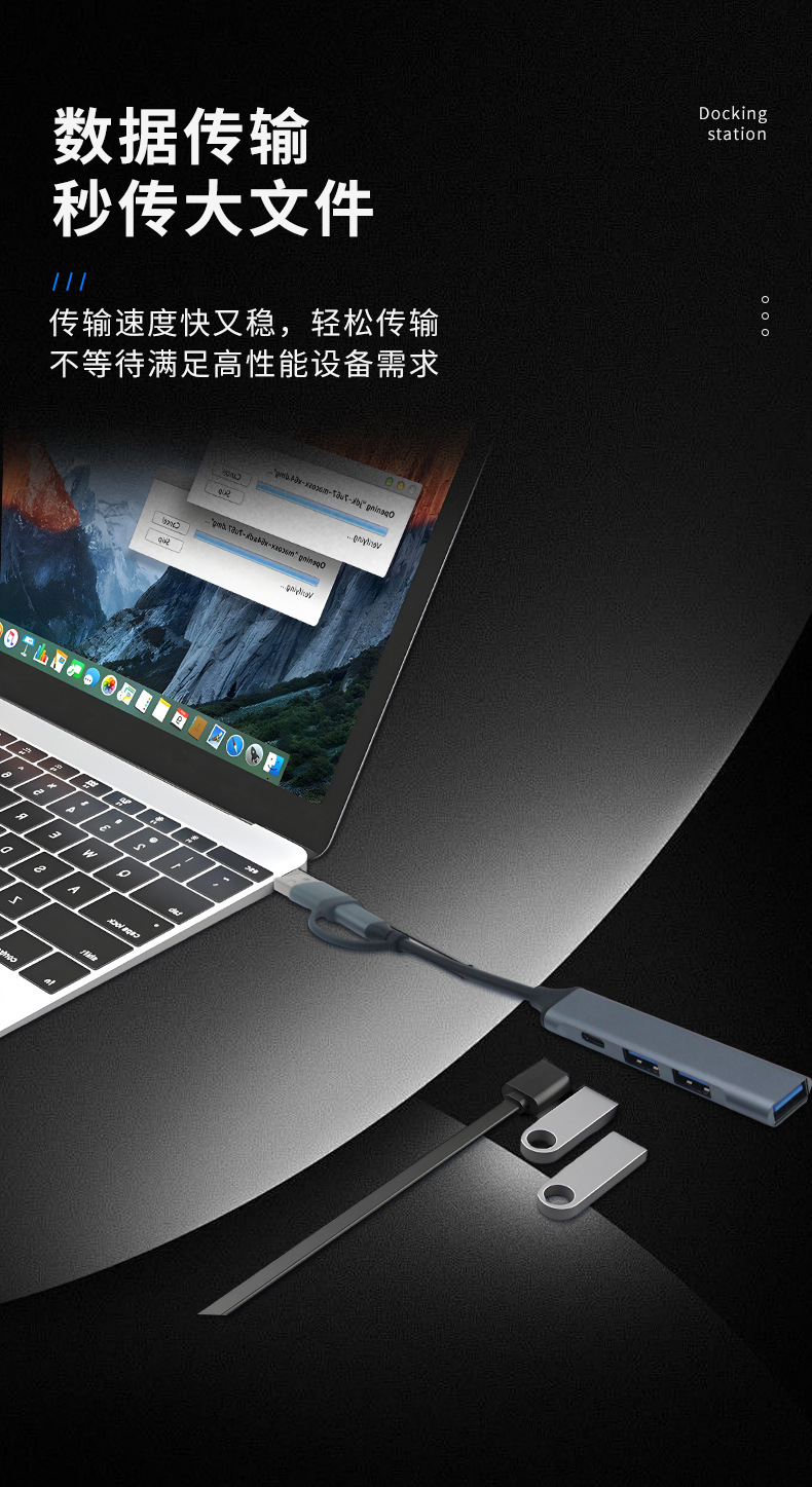 usbhub3.0 도킹 스테이션 usb 분배기 Typec 인터페이스 4-in-one 허브 1-4 도킹 스테이션