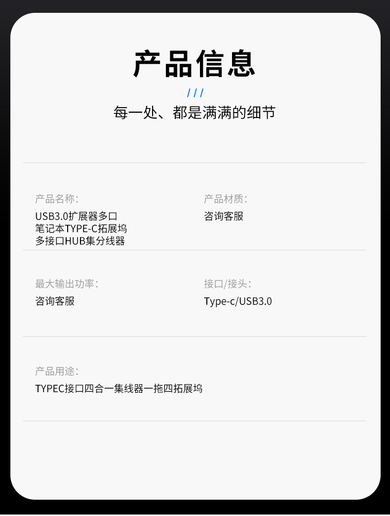 usbhub3.0 도킹 스테이션 usb 분배기 Typec 인터페이스 4-in-one 허브 1-4 도킹 스테이션스토어 가기