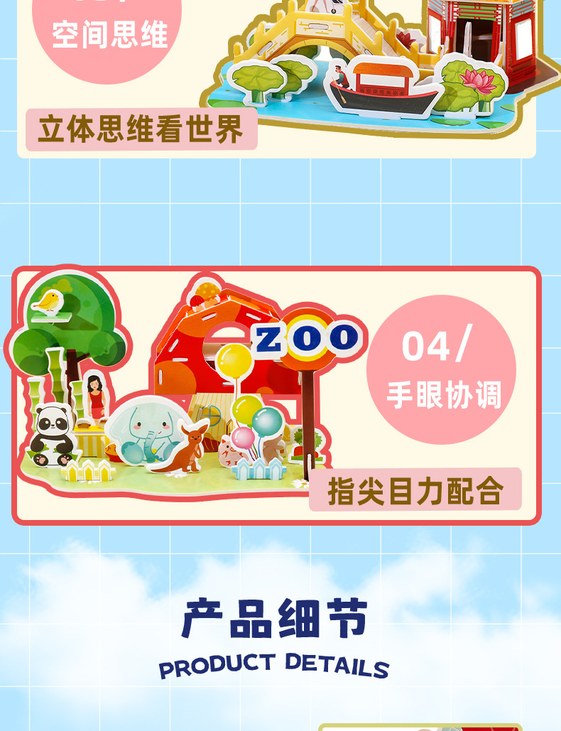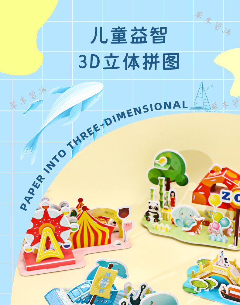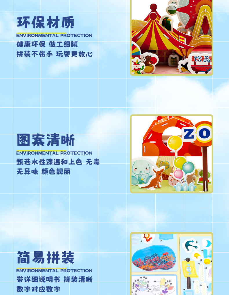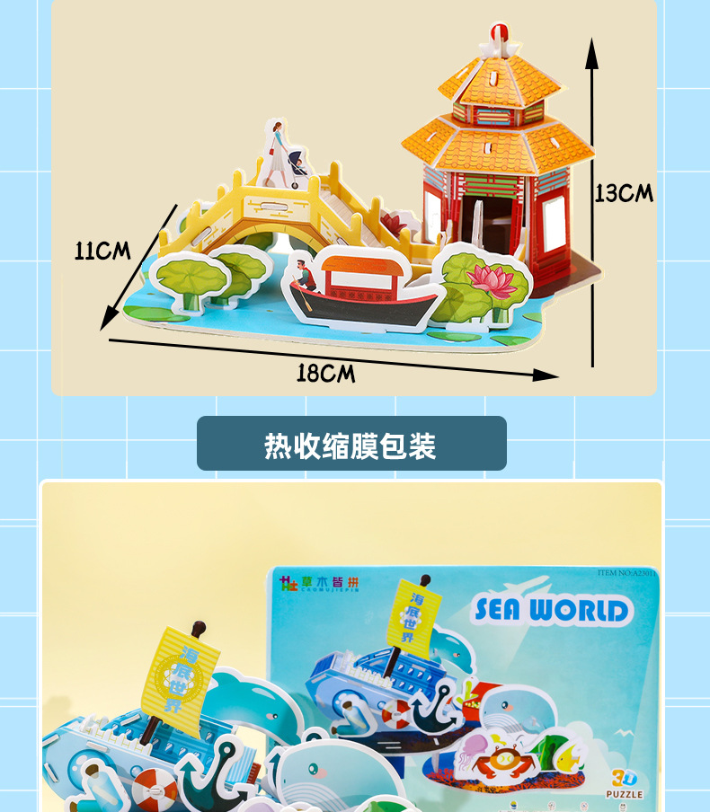 국경 간 인기있는 3D 입체 퍼즐 유치원 학교 수제 DIY 모델 어린이 교육 소녀 3-6 세 장난감스토어 가기