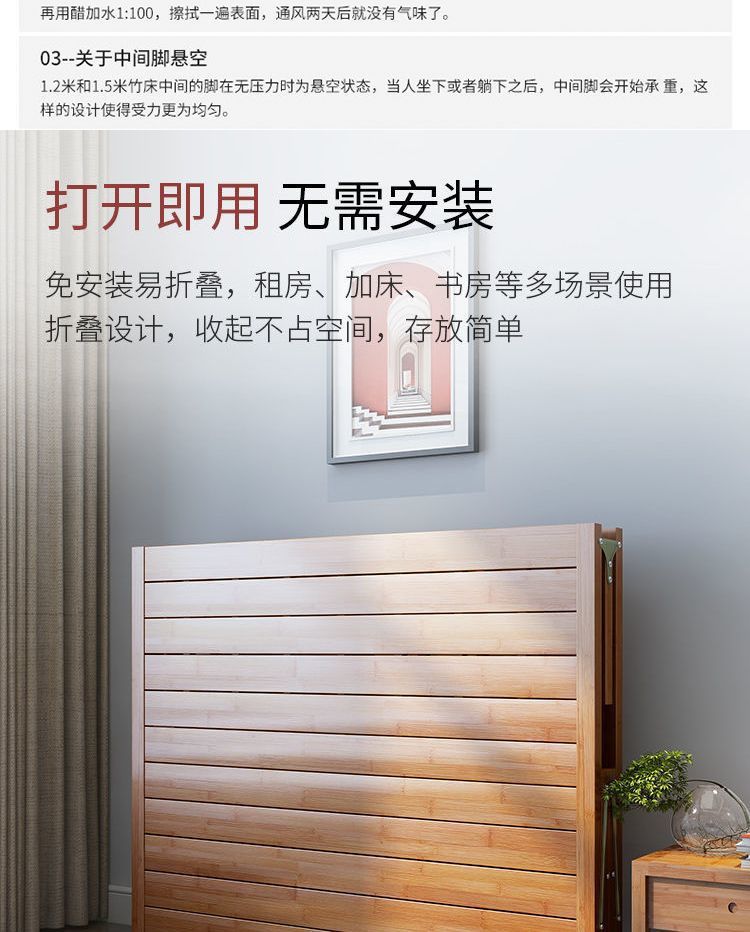 대나무 침대 접이식 침대 싱글 더블 홈 점심 시간 시원한 침대 성인 임대 주택 간단한 단단한 나무 침대 대나무 침대스토어 가기