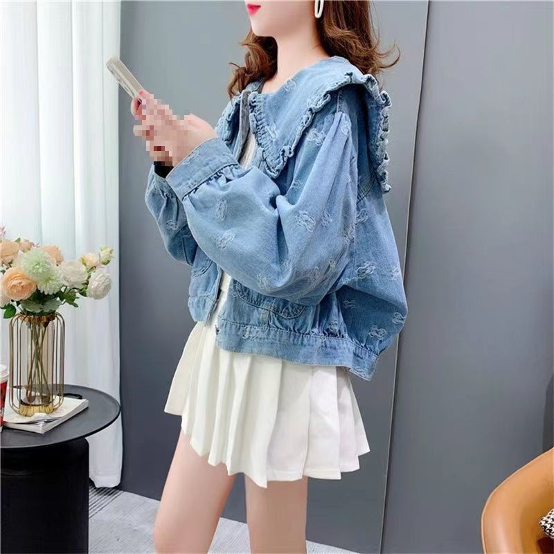 인형 칼라 새로운 느슨한 한국 스타일 데님 재킷 여성 가을 스타일 2025 짧은 연령 감소 재킷 탑 캐주얼스토어 가기