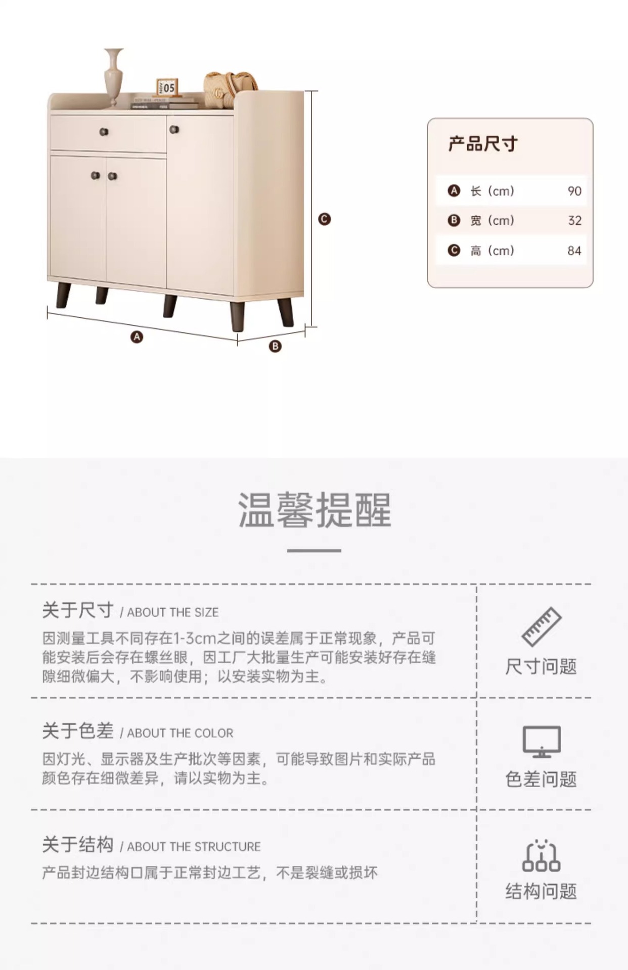 • [눌러서 문을 열고 문 3개와 서랍 1개] 따뜻한 흰색 90*32*100cm 조립;
