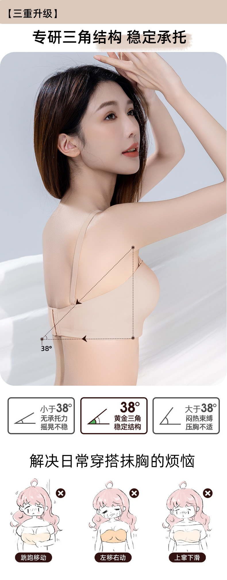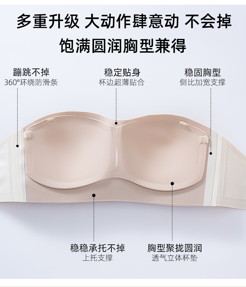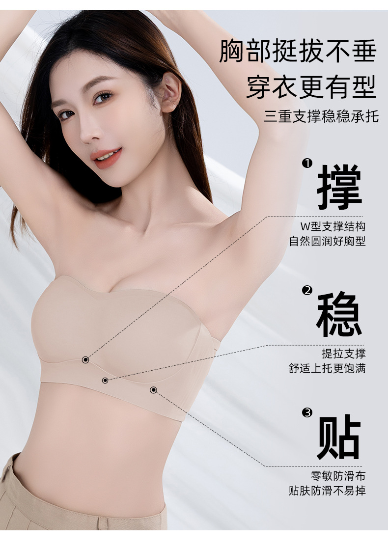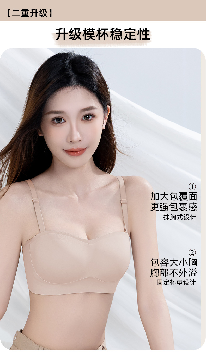 【sw 동일 모델】여성용 스트랩리스 브라, 미끄럼 방지, 작은 가슴을 위한 푸쉬업, 보이지 않는 무봉제 탑 브라