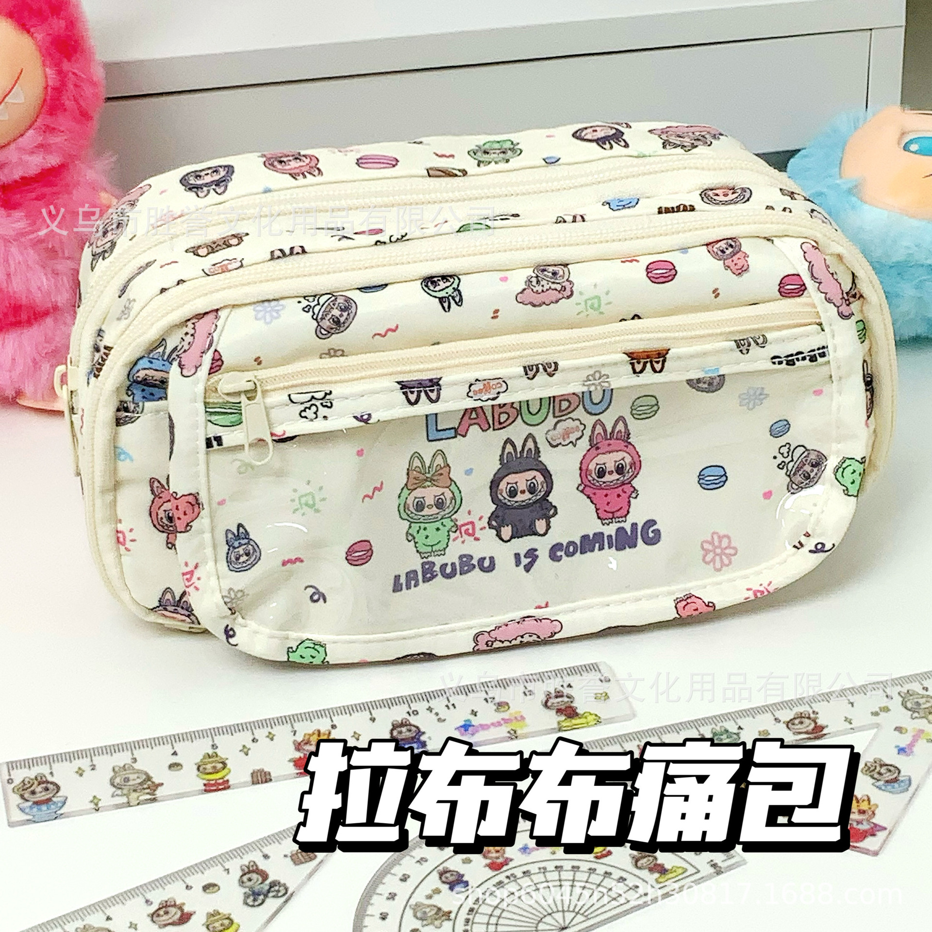 새로운 Labubu 통증 가방 연필 가방 학생 대용량 문구 가방 보관 가방 귀여운 다층 고가치 연필 상자스토어 가기