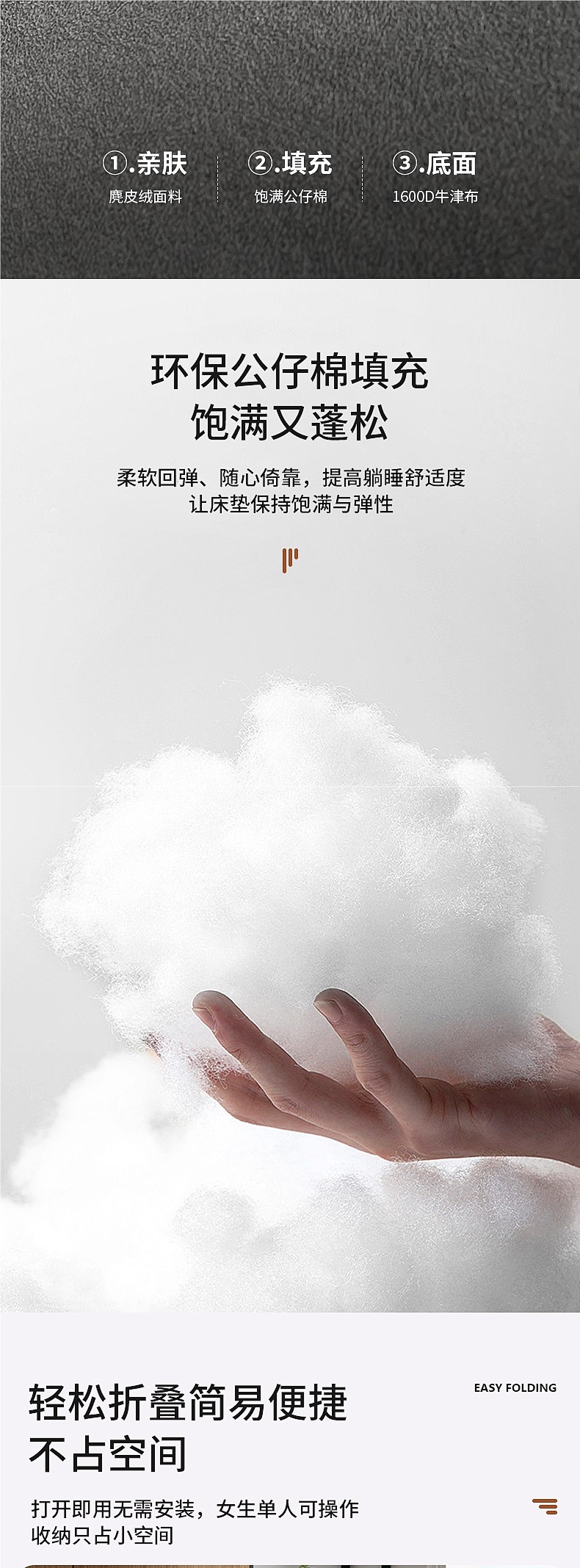 • 170*60cm 두꺼운 스웨이드 모델 [매트리스 일체형 ★ 뒤집어서 음소거】다크 그레이