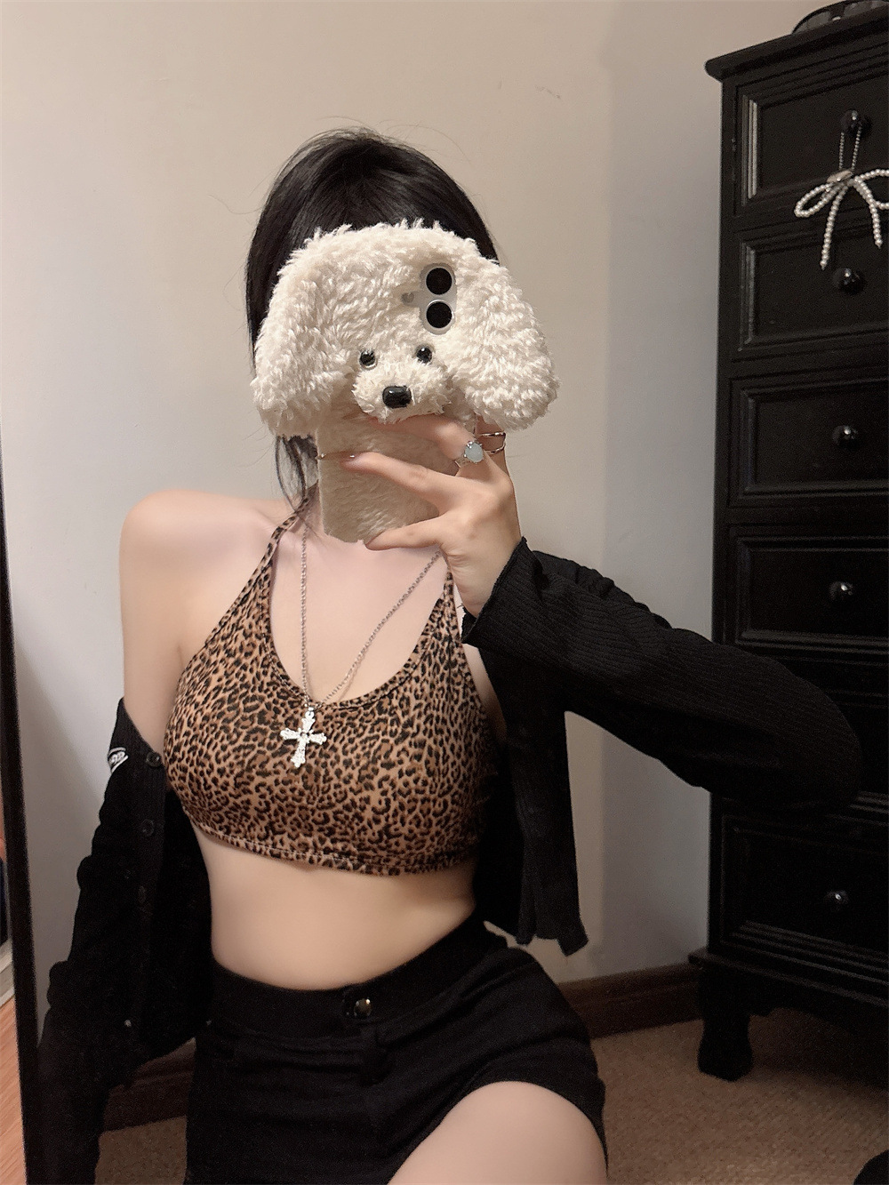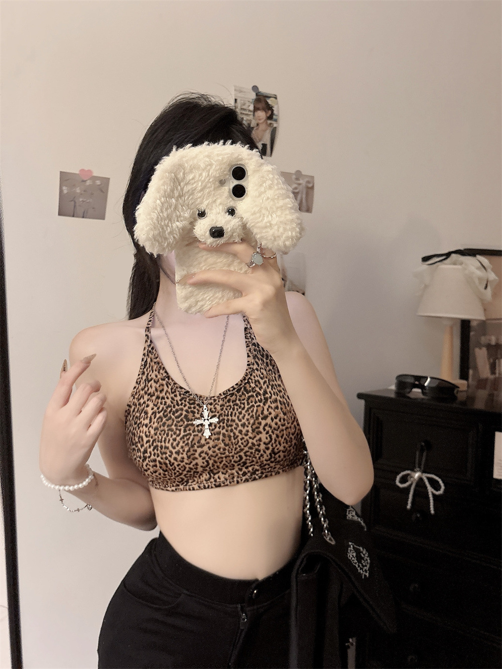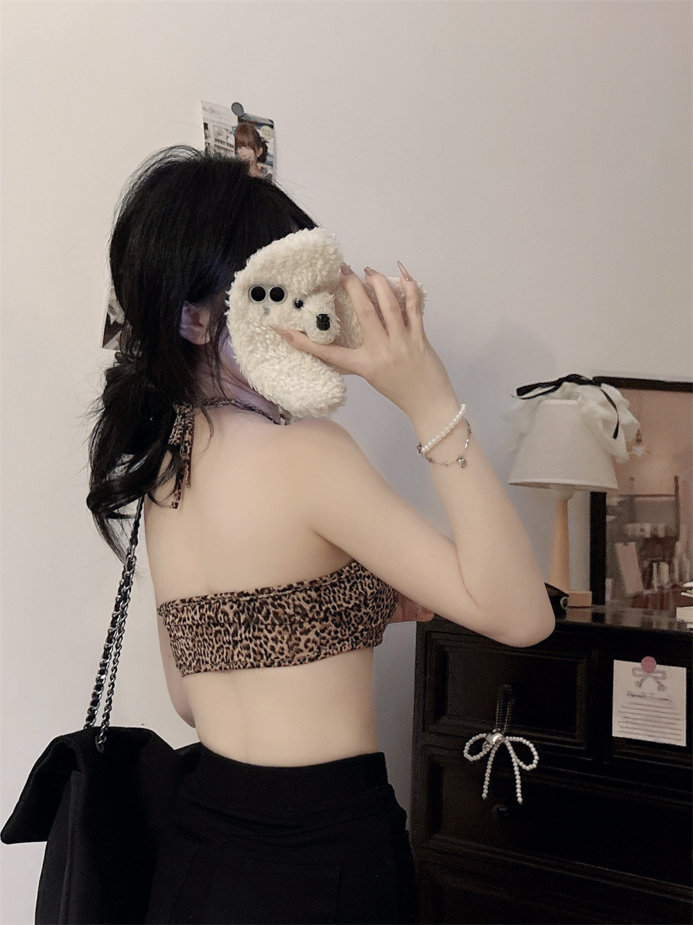 6108 # 아이스 실크 홀터넥 스트랩 튜브 탑 서스펜더 유럽과 미국 스타일의 핫 소녀 섹시한 백리스 레오파드 프린트 속옷 랩 가슴 이너웨어