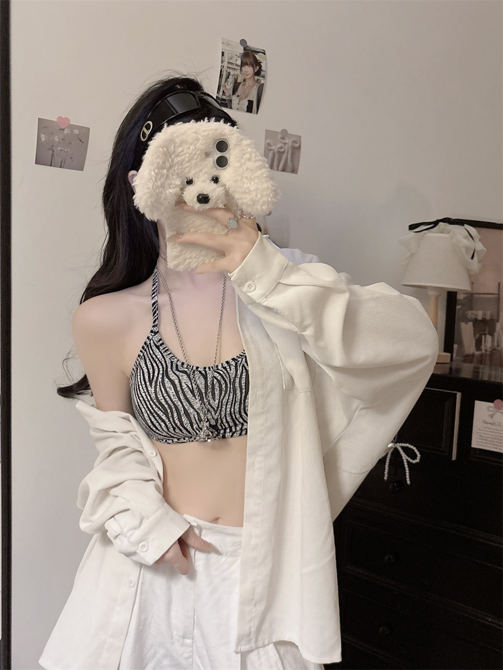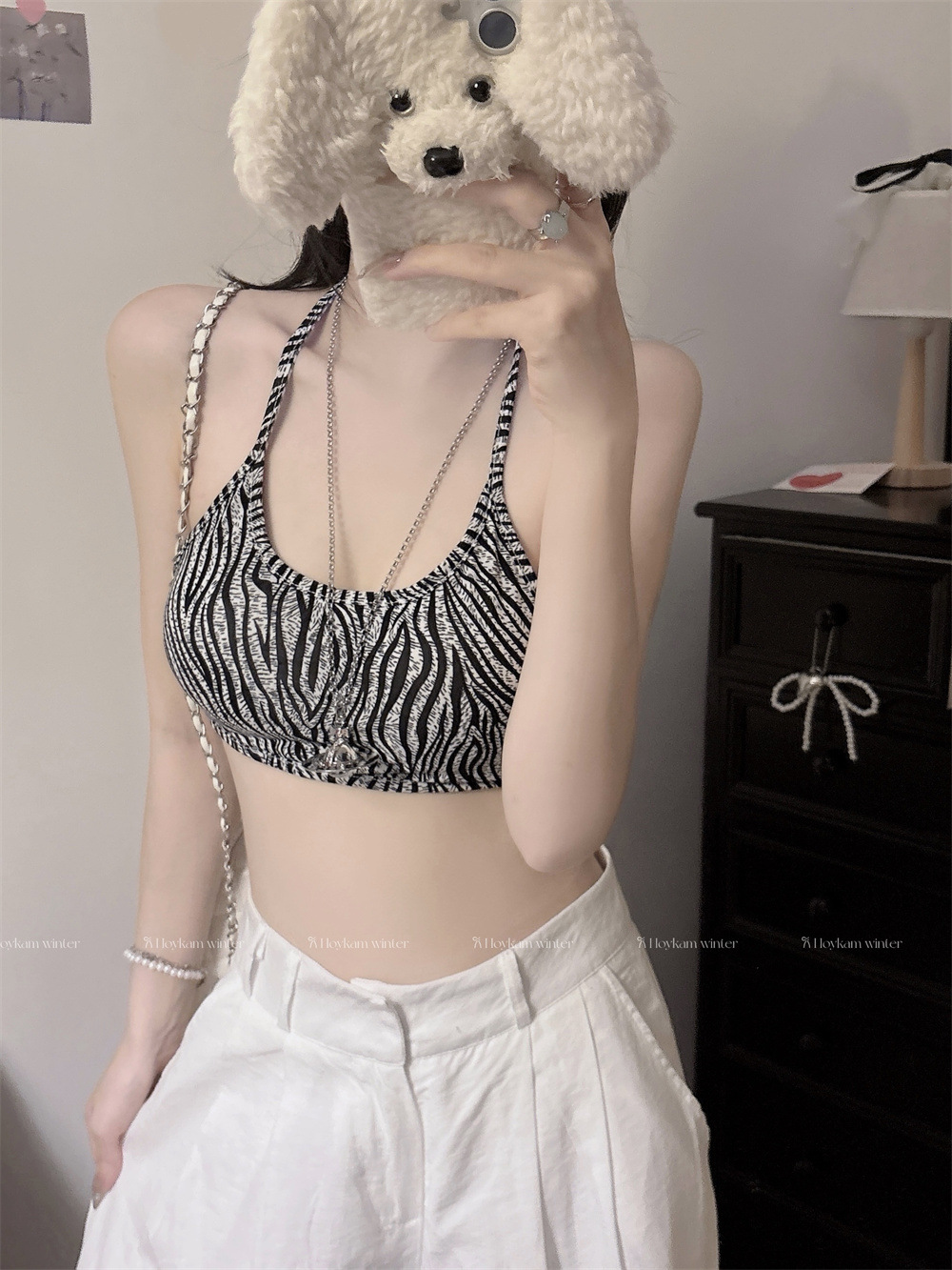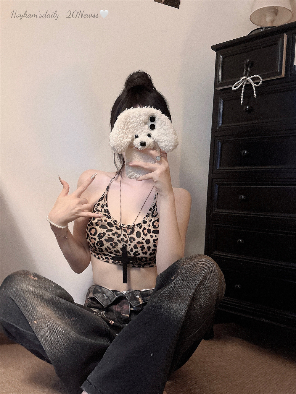 6108 # 아이스 실크 홀터넥 스트랩 튜브 탑 서스펜더 유럽과 미국 스타일의 핫 소녀 섹시한 백리스 레오파드 프린트 속옷 랩 가슴 이너웨어