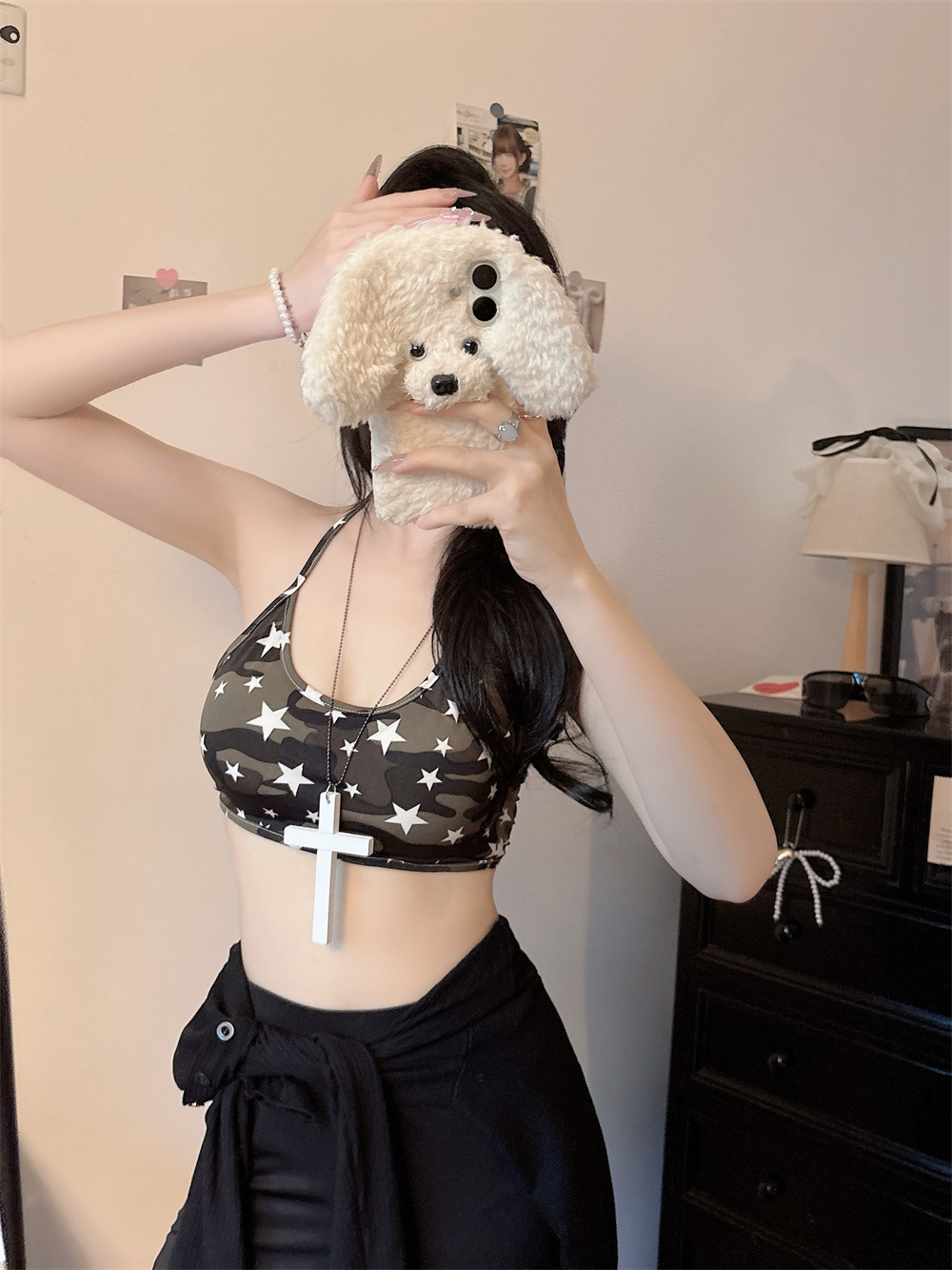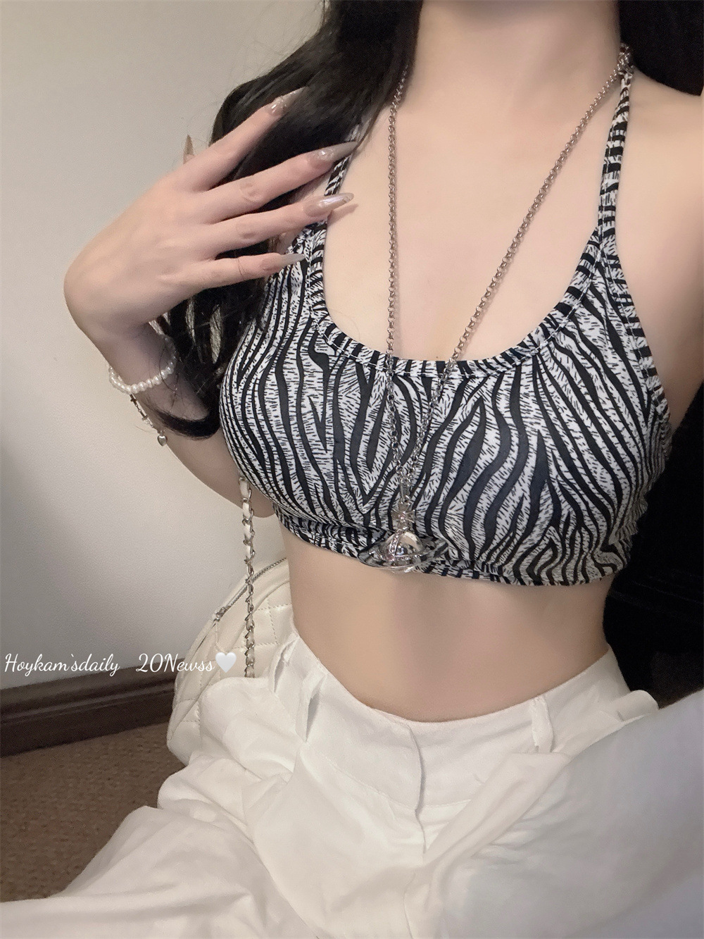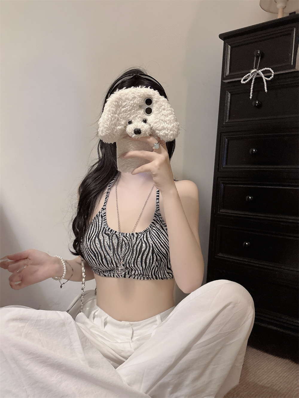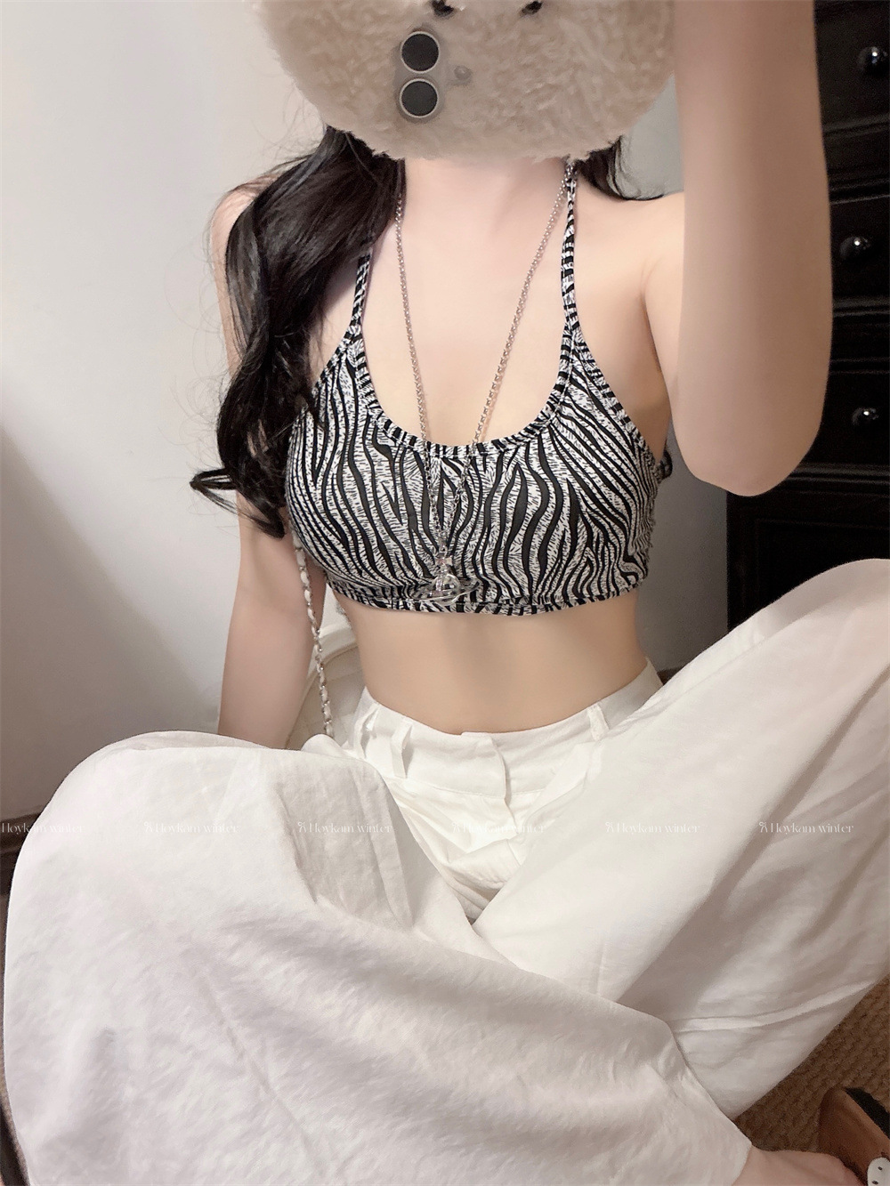 6108 # 아이스 실크 홀터넥 스트랩 튜브 탑 서스펜더 유럽과 미국 스타일의 핫 소녀 섹시한 백리스 레오파드 프린트 속옷 랩 가슴 이너웨어스토어 가기