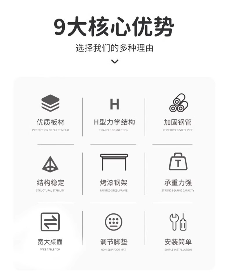 • [업그레이드 된 대담한 50MM 테이블 다리] 질감이 있는 검정색 + 흰색 프레임
