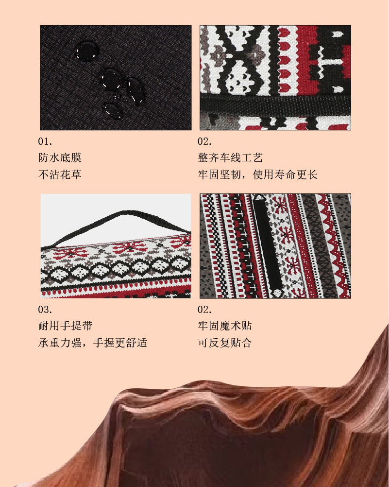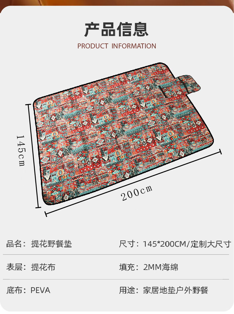 두꺼운 방습 매트, 휴대용 야외 방수 민족 스타일 피크닉 매트, 피크닉 담요, 싱글 캠핑 매트, 잔디 매트