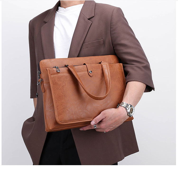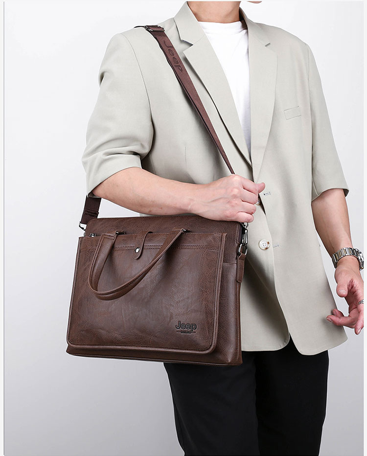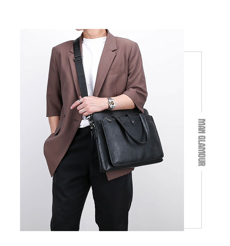 남성용 서류 가방 가로 비즈니스 남성용 가방 복고풍 클러치 숄더백 부드러운 가죽 고급 노트북 가방스토어 가기