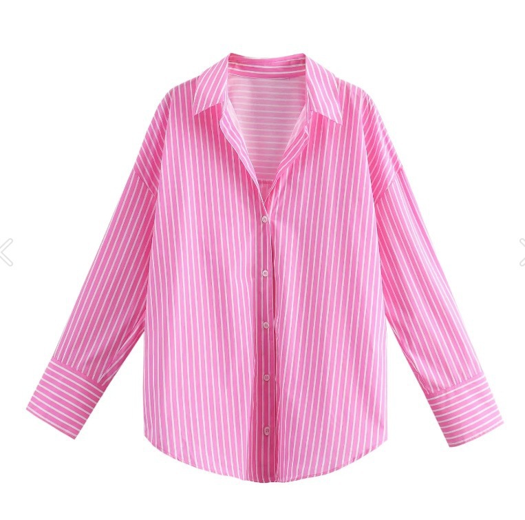 대외 무역 도매 봄 신상 여성 유럽과 미국 스타일의 다용도 줄무늬 옷깃 싱글 브레스트 긴팔 루즈 셔츠스토어 가기