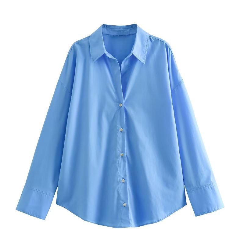 대외 무역 도매 봄 신상 여성 유럽과 미국 스타일의 다용도 줄무늬 옷깃 싱글 브레스트 긴팔 루즈 셔츠