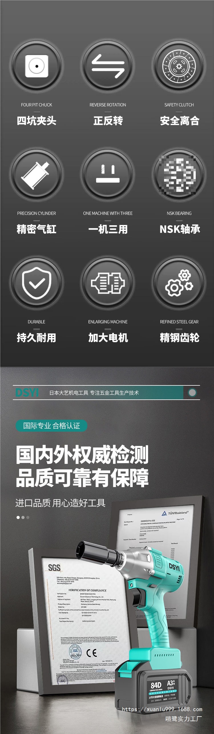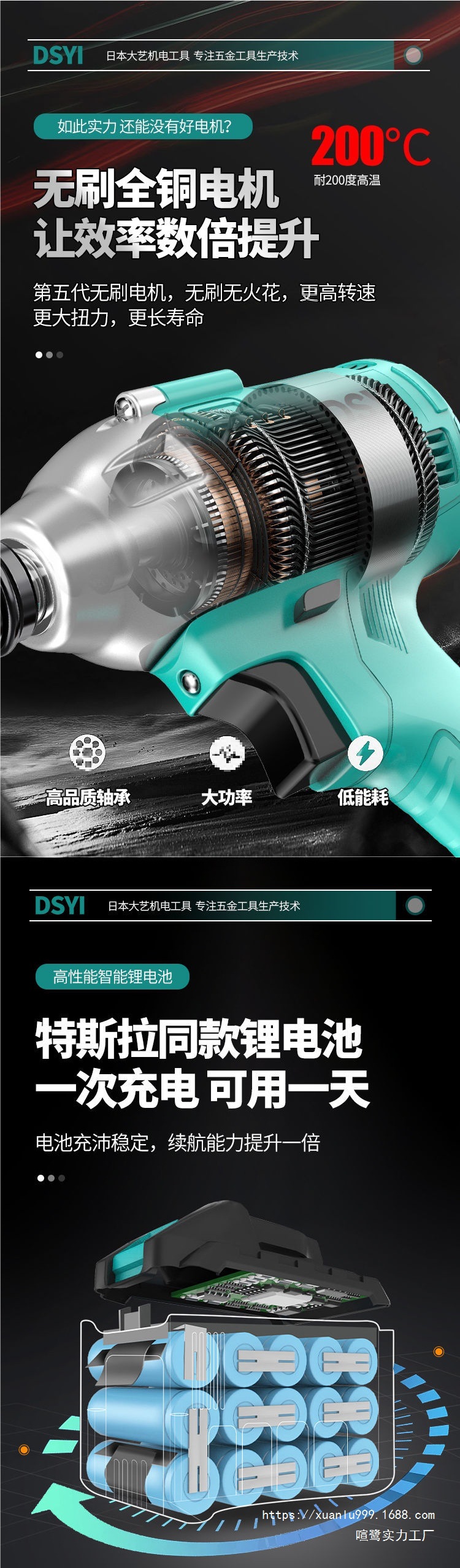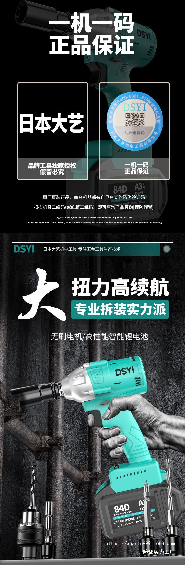 V 일본 Dayi 전기 렌치 브러시리스 토크 DSYI 목공 리튬 전기 자동차 수리 임팩트 2106 선반 공작 공기 대포스토어 가기
