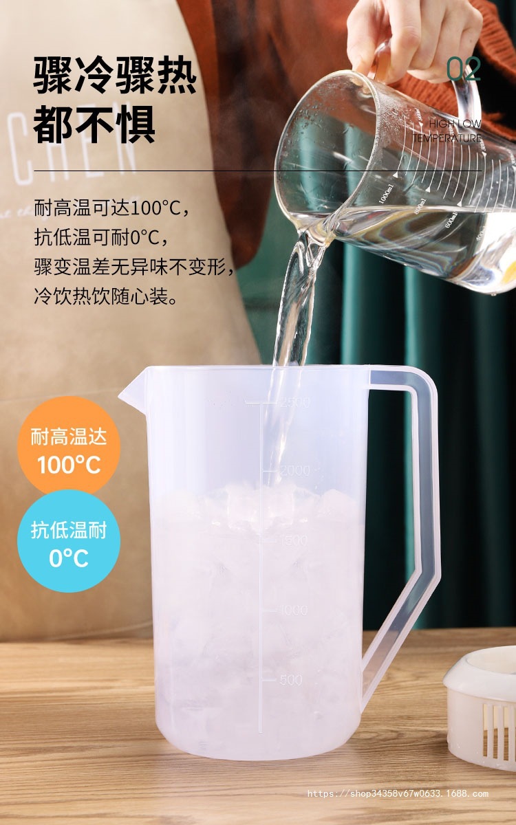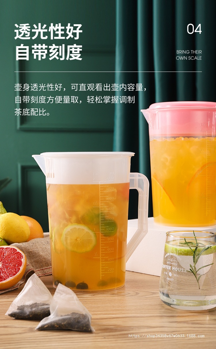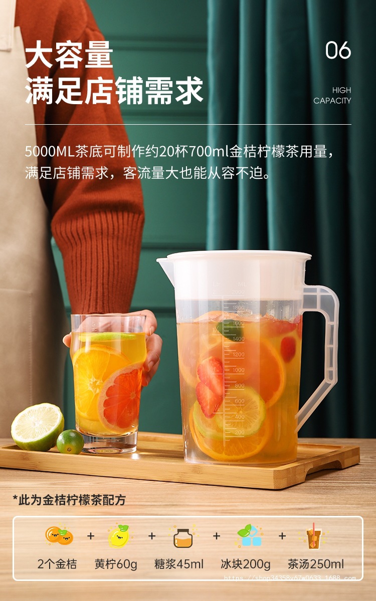 플라스틱 냉수병 용량 가정용 차 양동이 계량 주전자 상업용 스케일이있는 고온 방지 밀크 티 샵 냉수병