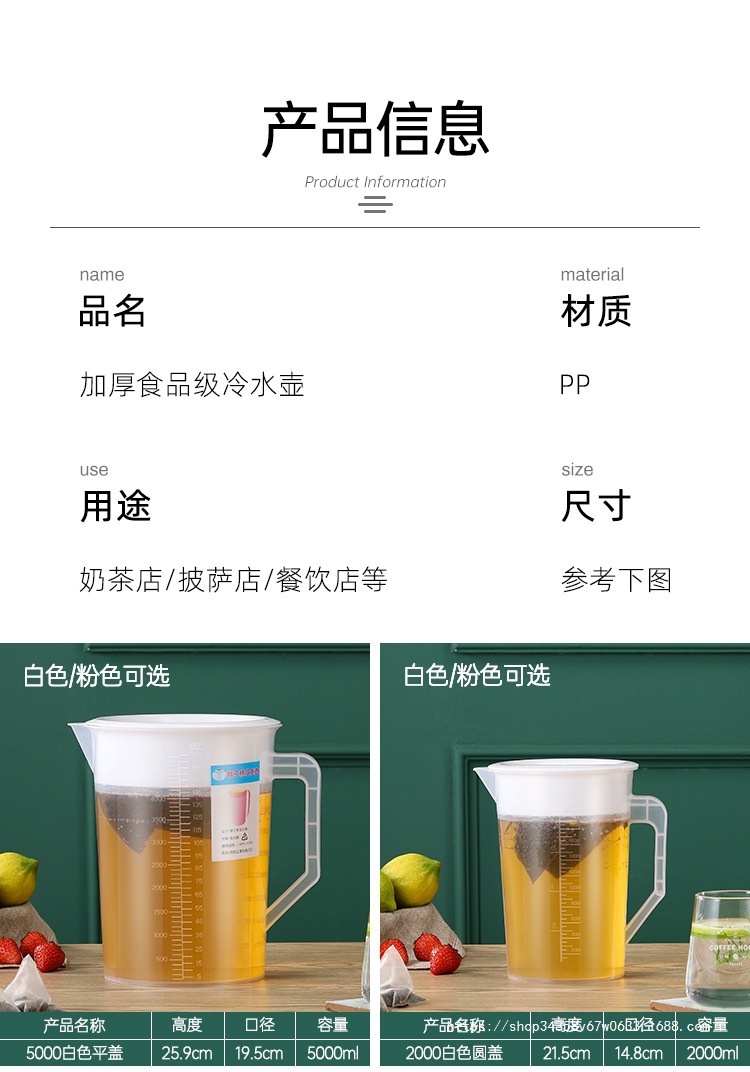 플라스틱 냉수병 용량 가정용 차 양동이 계량 주전자 상업용 스케일이있는 고온 방지 밀크 티 샵 냉수병스토어 가기