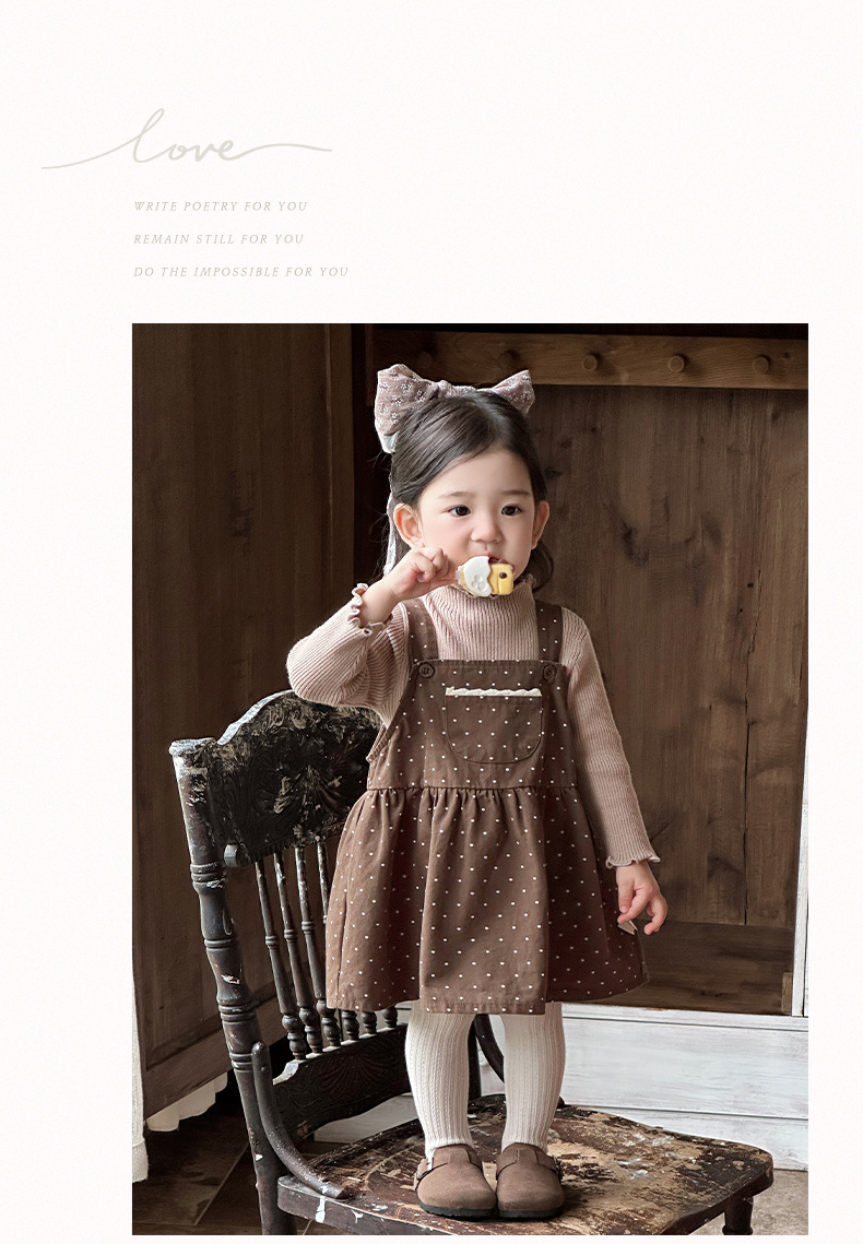 여자 아기 봄, 가을 정장 달콤한 폴카 도트 대형 포켓 드레스 귀 바닥 스웨터 조끼 드레스 투피스 세트스토어 가기