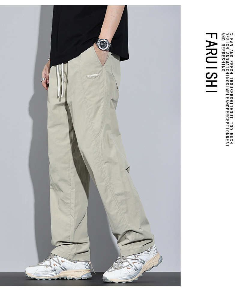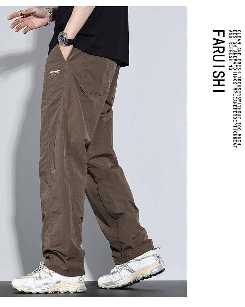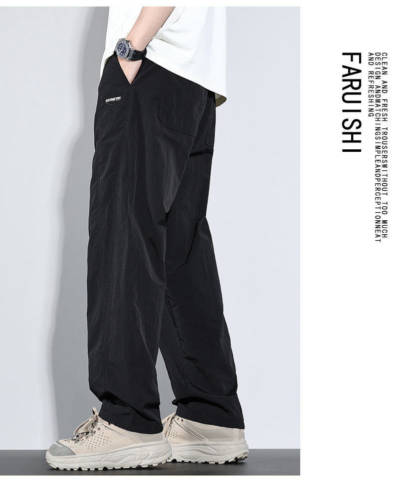 단바오니 | 아메리칸 아이스 실크 팬츠 남성 여름 얇은 속건 루즈 스트레이트 에어컨 드레이프 자외선 차단 시원하고 편안함