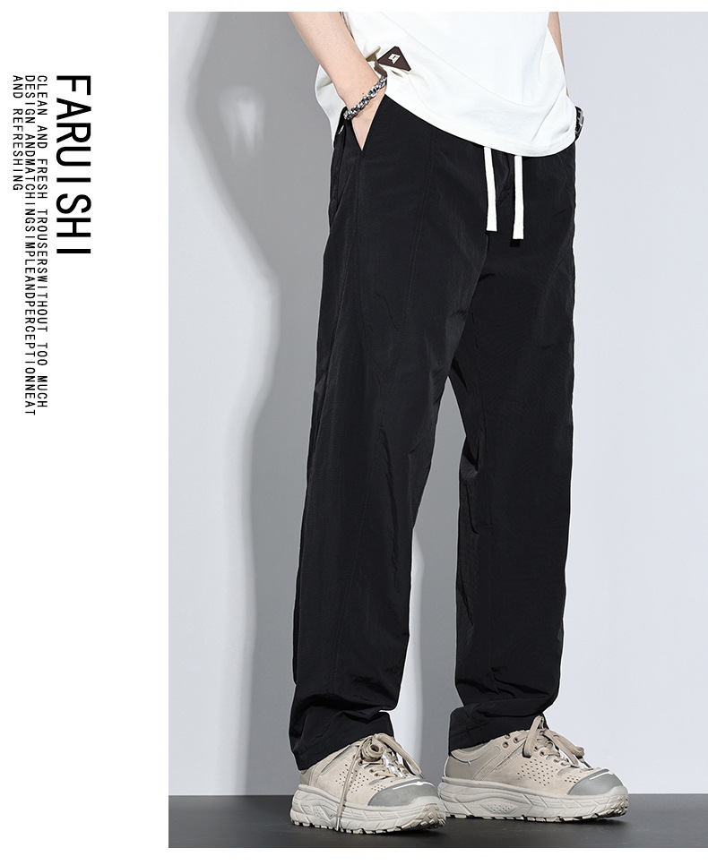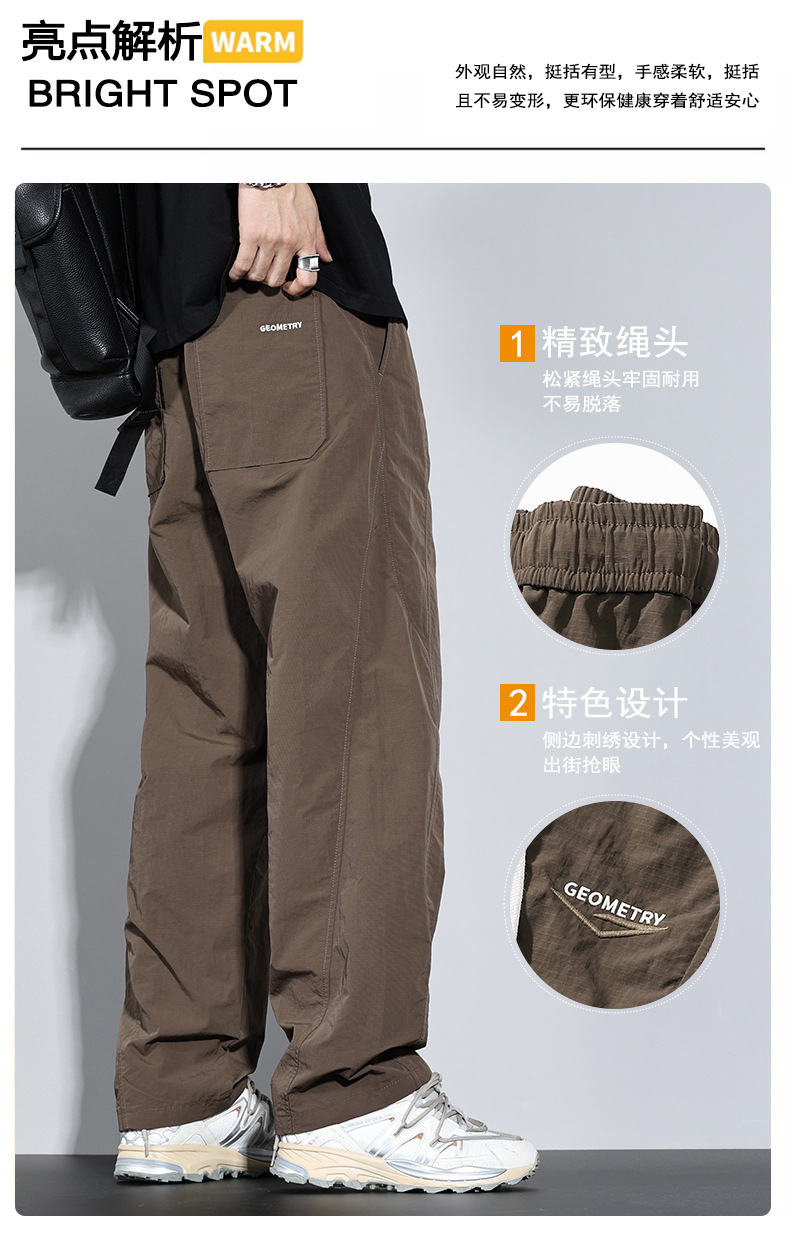 단바오니 | 아메리칸 아이스 실크 팬츠 남성 여름 얇은 속건 루즈 스트레이트 에어컨 드레이프 자외선 차단 시원하고 편안함스토어 가기