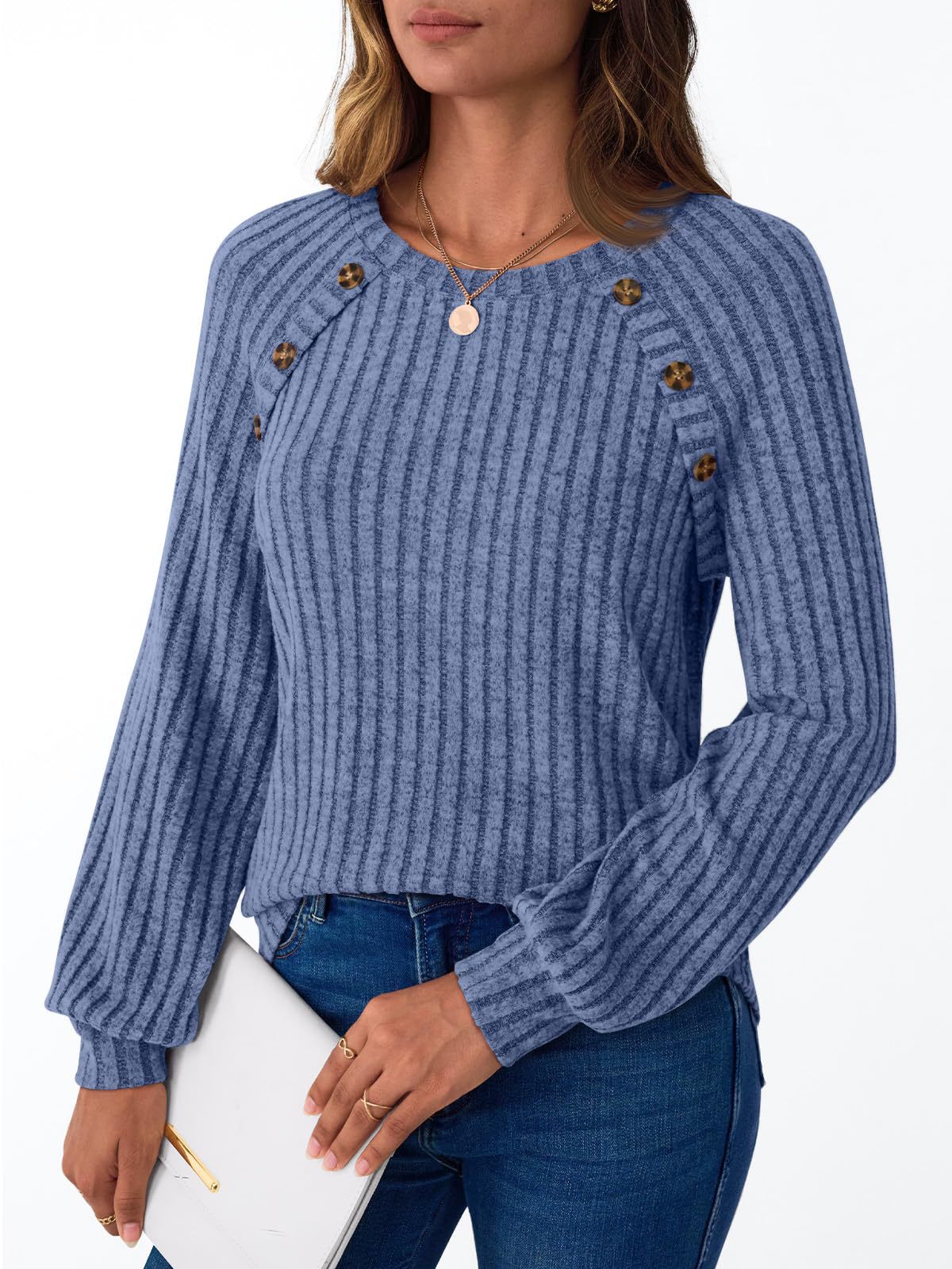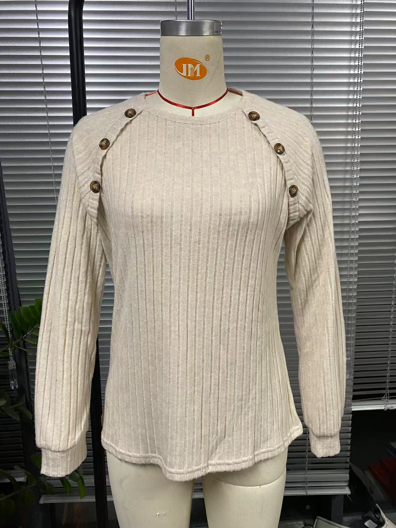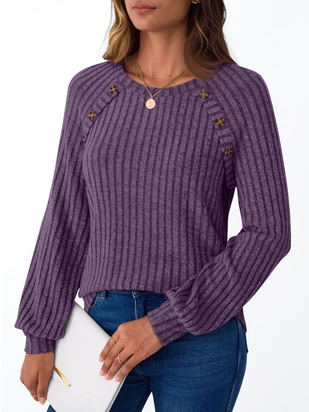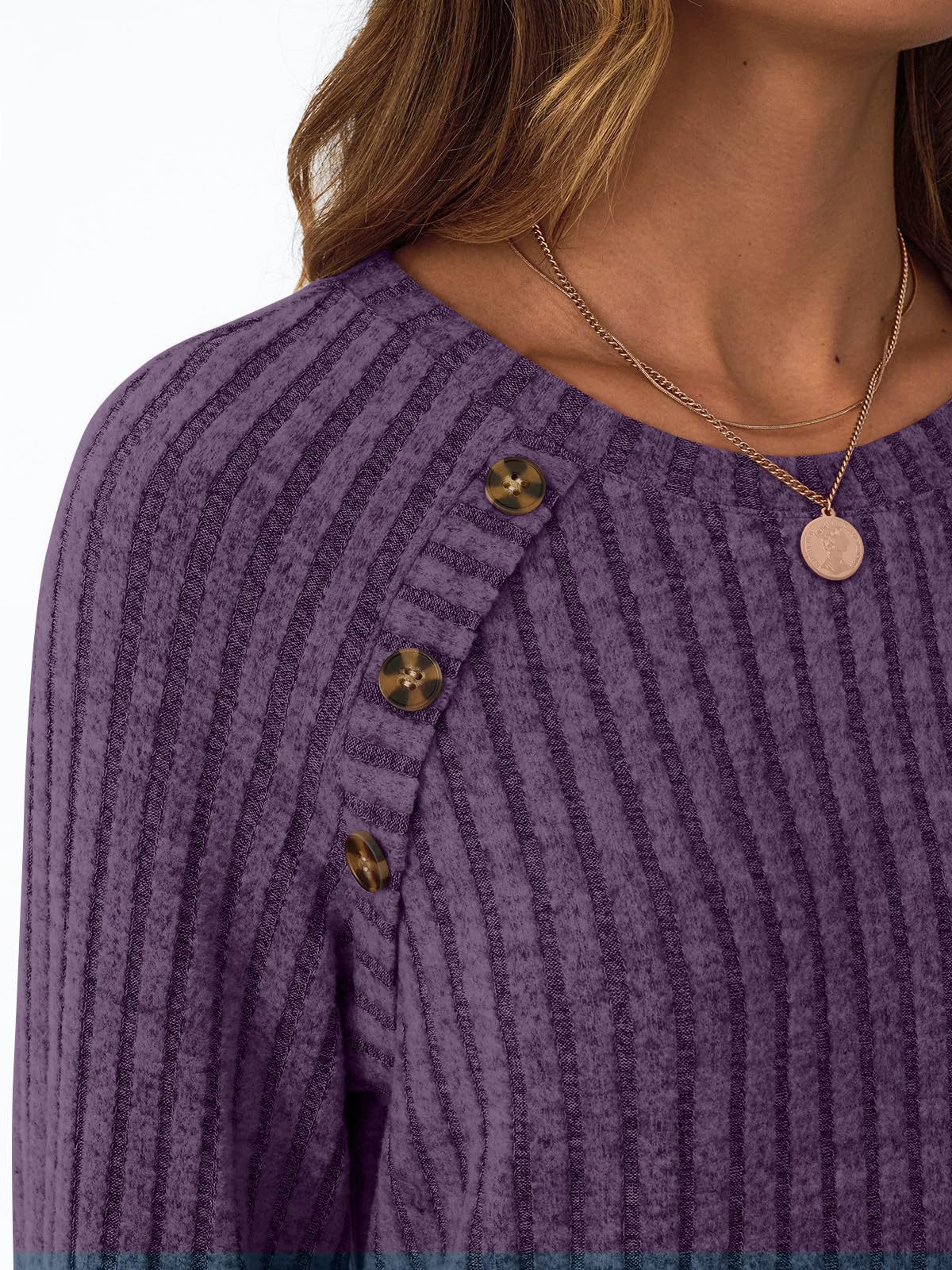 2025 크로스보더 아마존 신작 여성용 라운드 넥 버튼 스플라이스 티셔츠 기질 핏 스트립 캐주얼 스웨트 셔츠