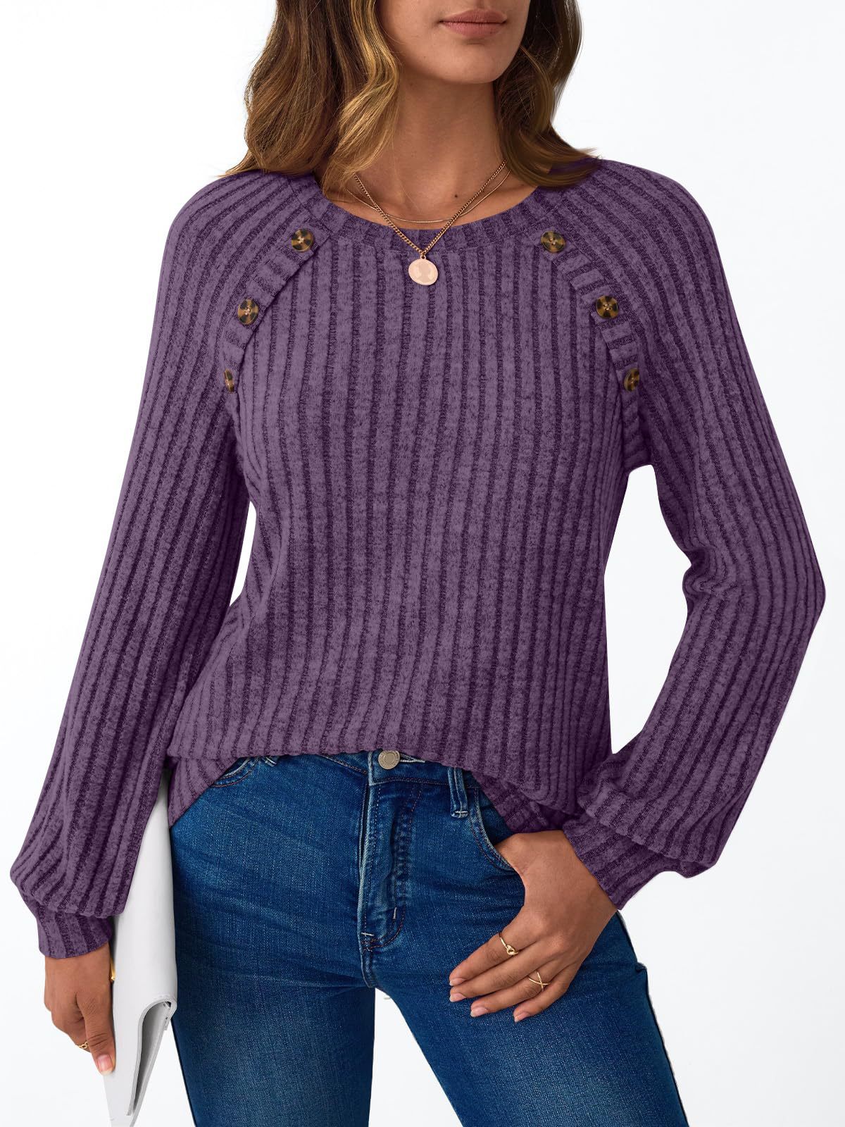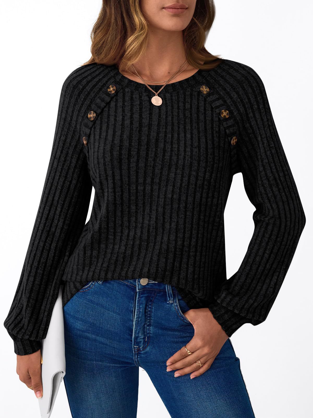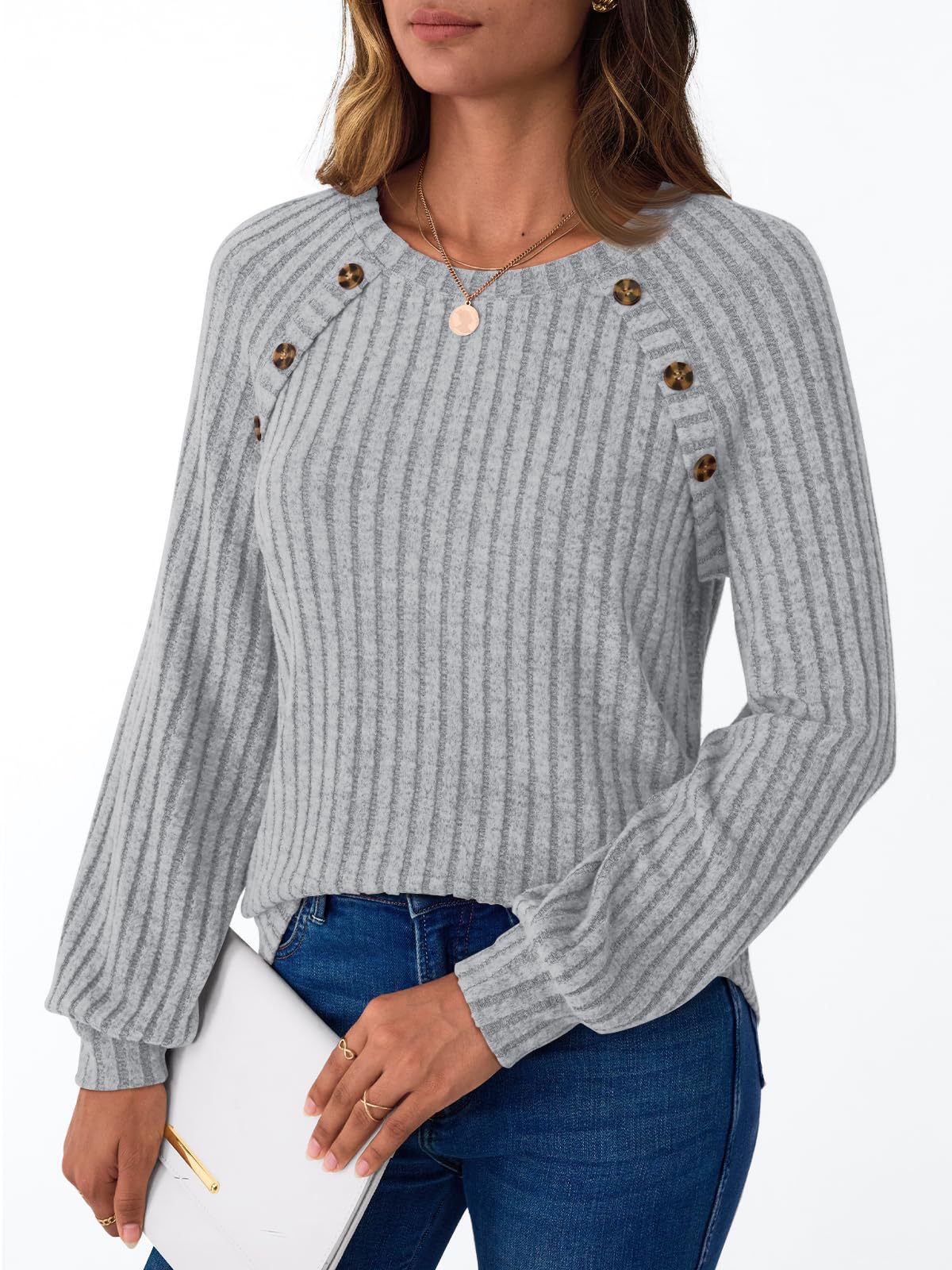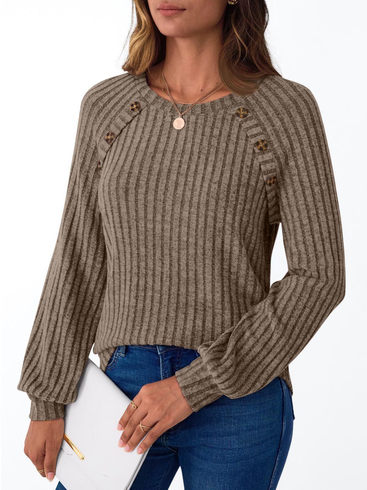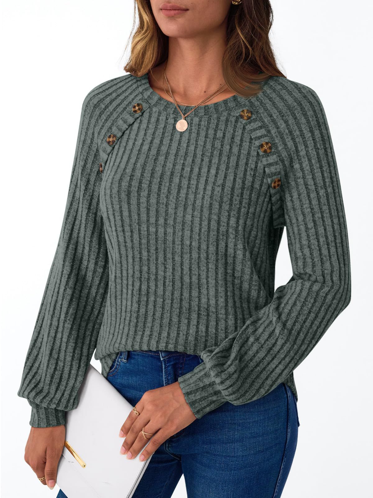2025 크로스보더 아마존 신작 여성용 라운드 넥 버튼 스플라이스 티셔츠 기질 핏 스트립 캐주얼 스웨트 셔츠