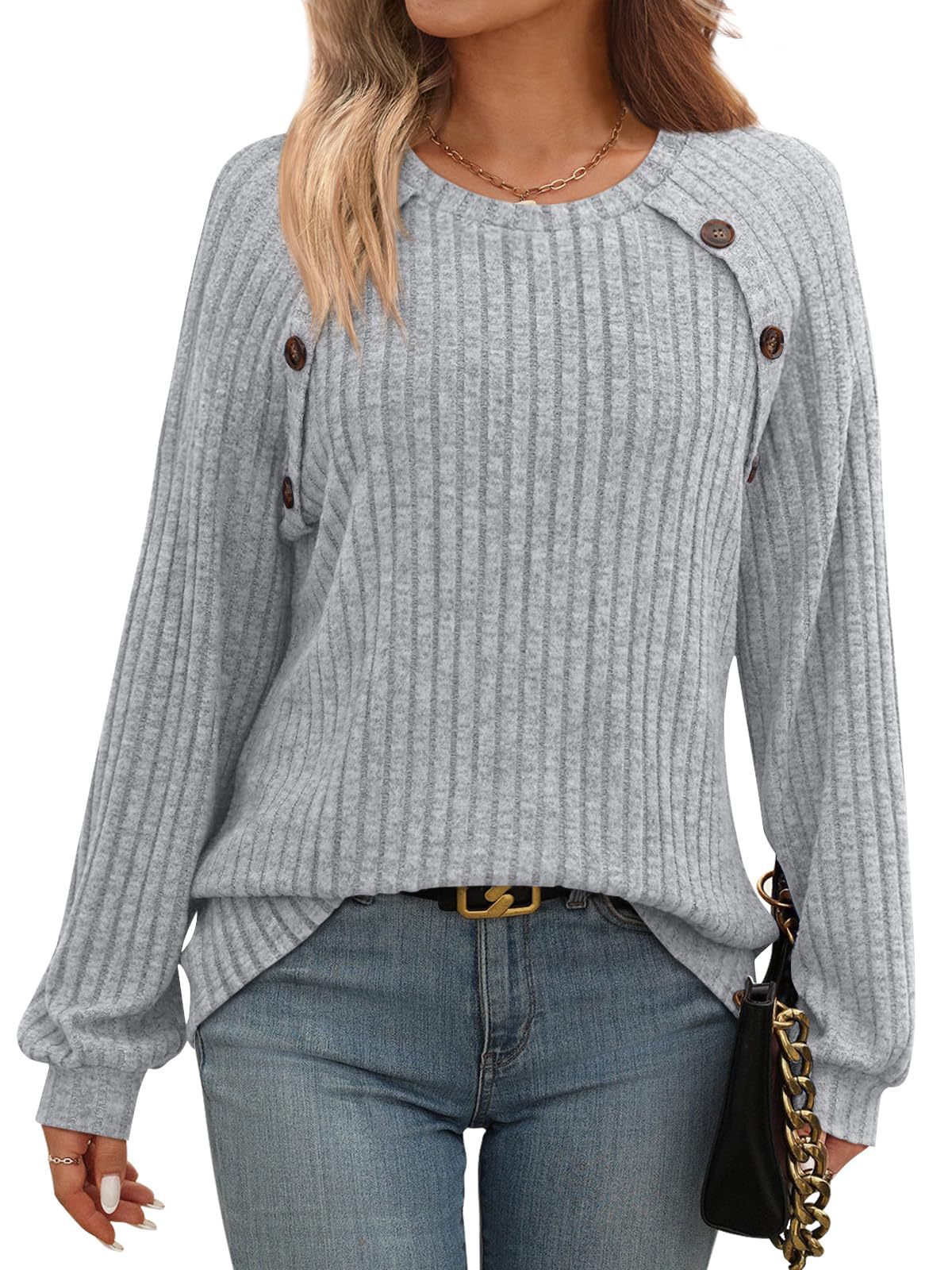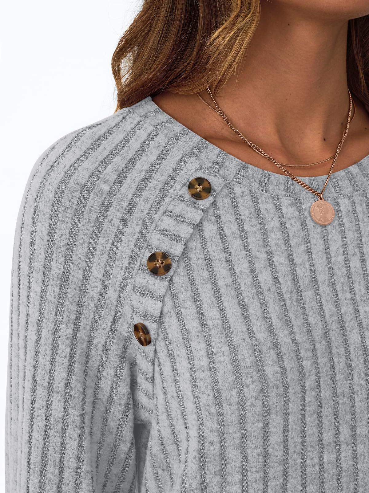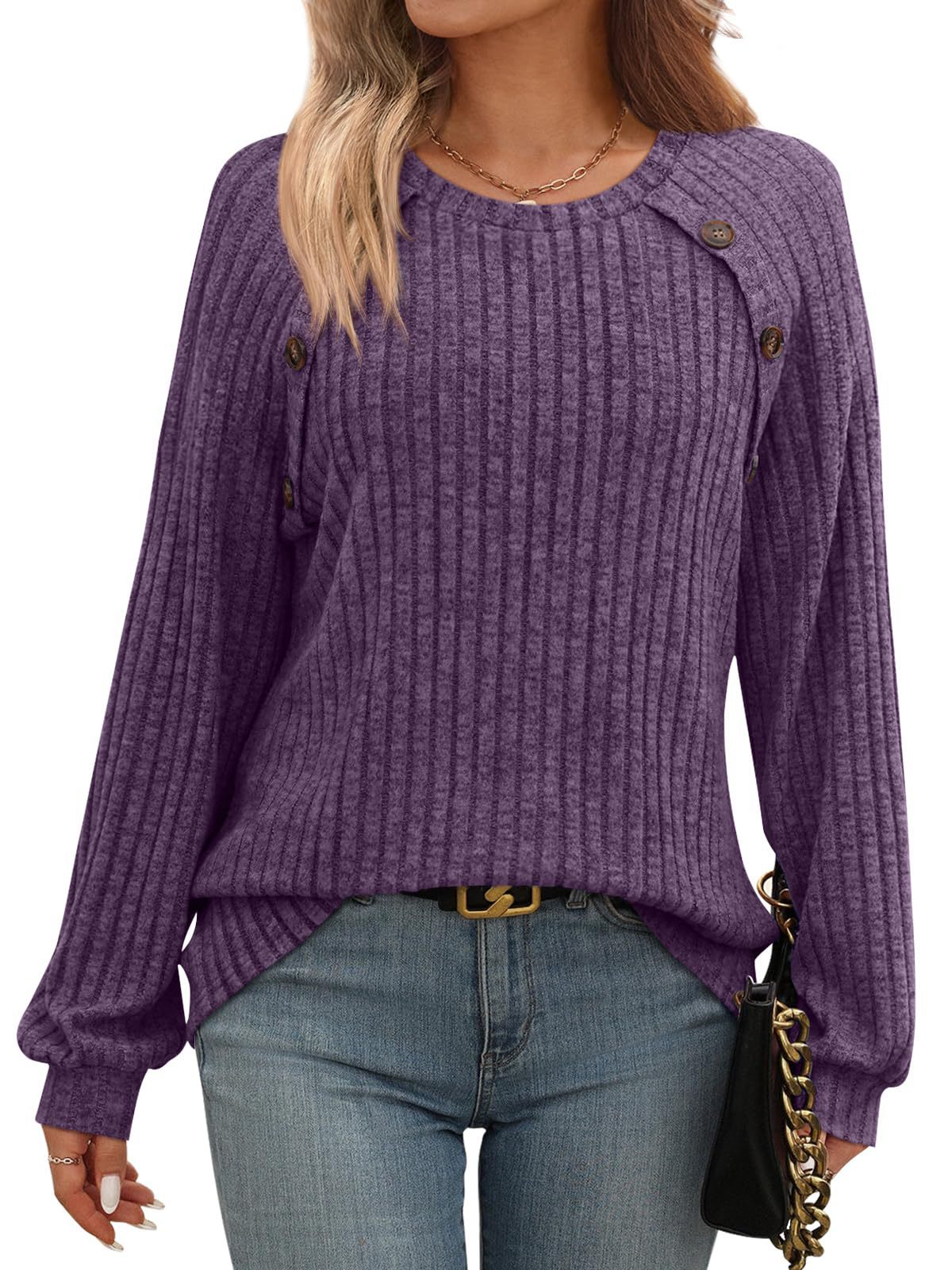 2025 크로스보더 아마존 신작 여성용 라운드 넥 버튼 스플라이스 티셔츠 기질 핏 스트립 캐주얼 스웨트 셔츠스토어 가기
