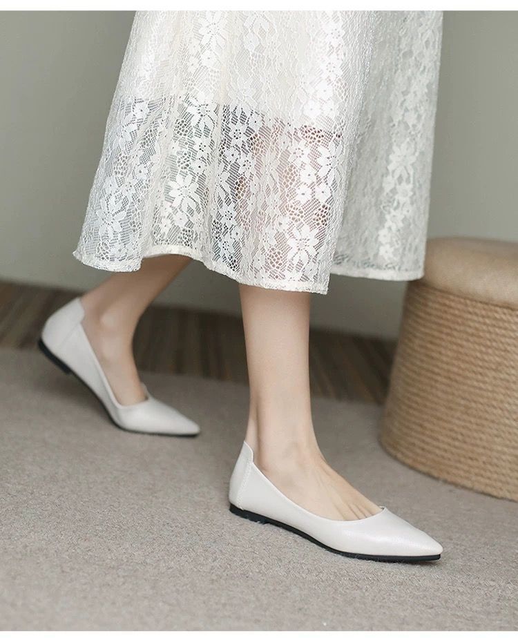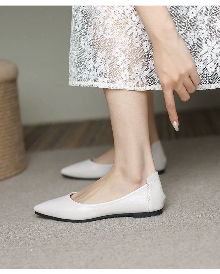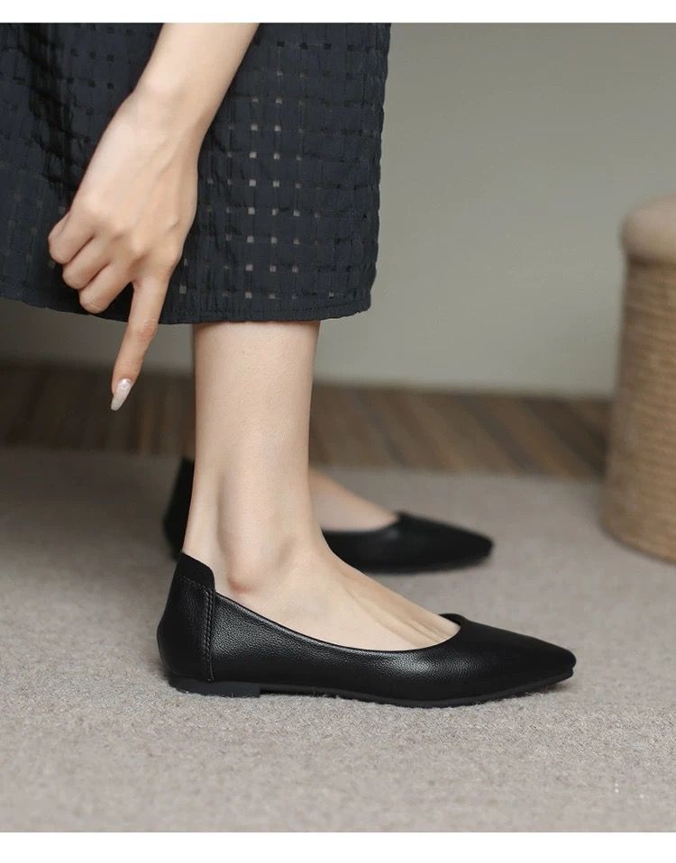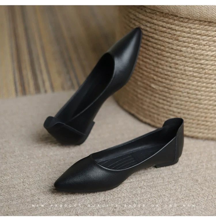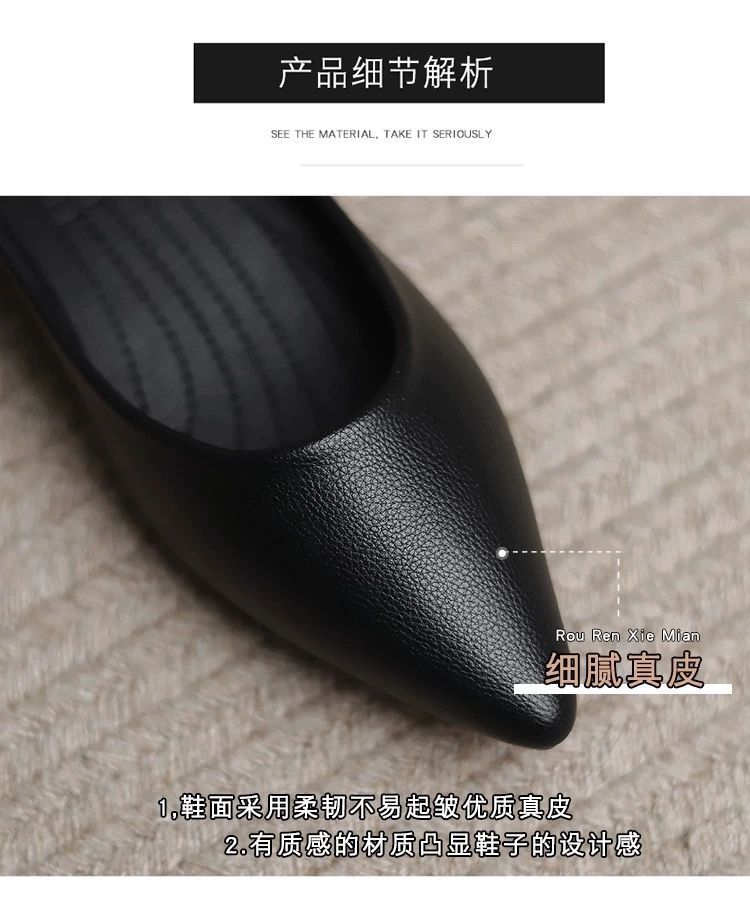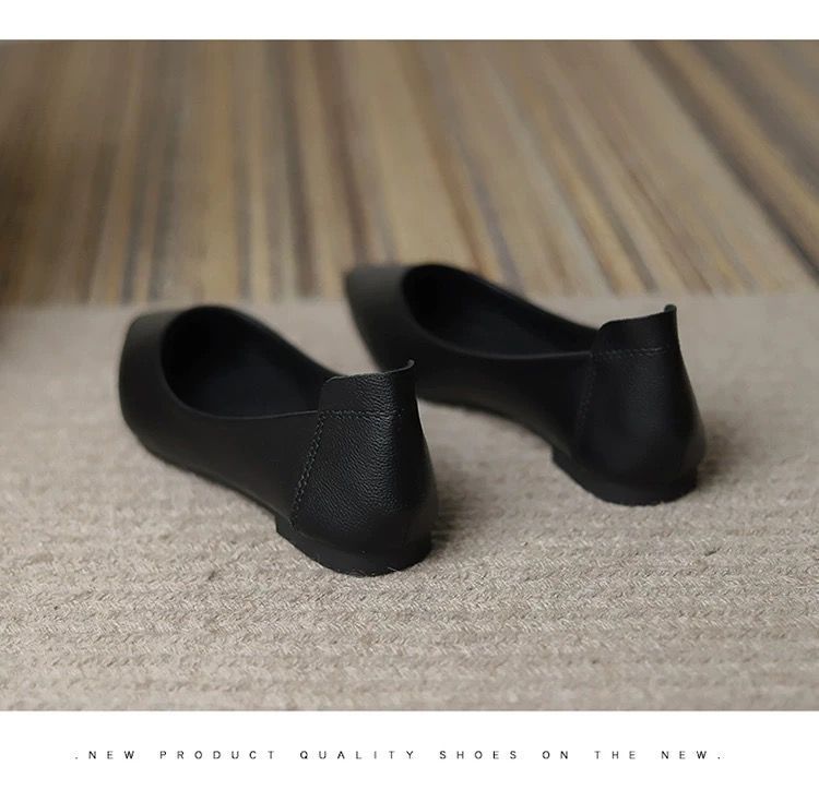 부드러운 가죽 여성 신발 새로운 부드러운 밑창 뾰족한 발가락 플랫 바닥 작업 신발 장시간 서 있어도 발이 피곤하지 않은 전문 검은 가죽 신발스토어 가기