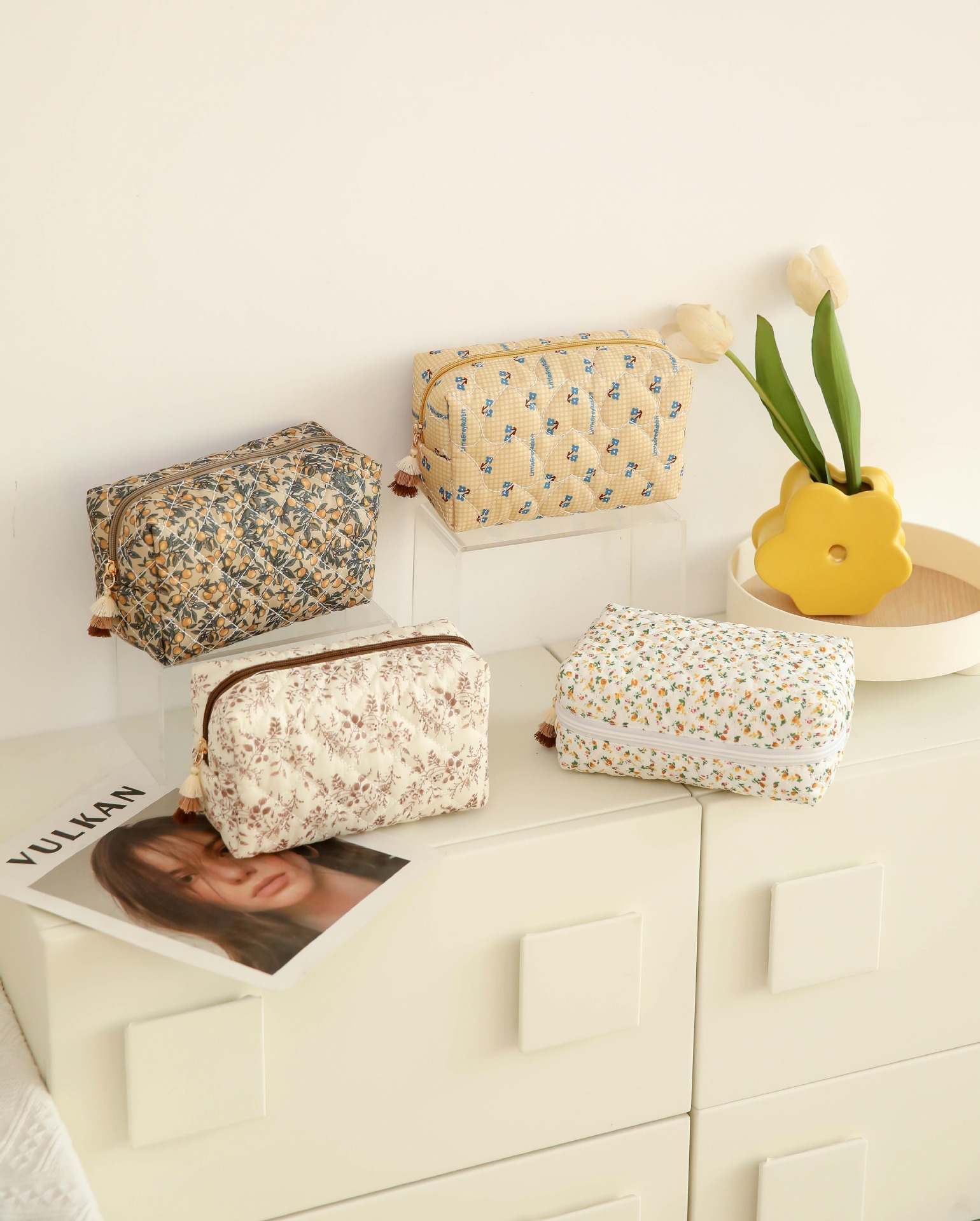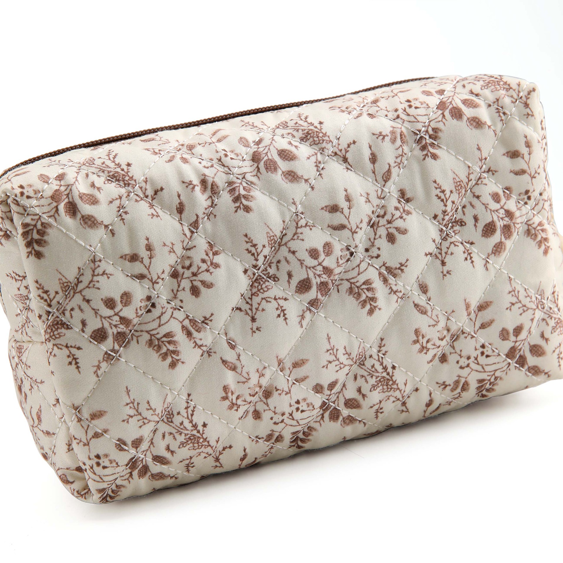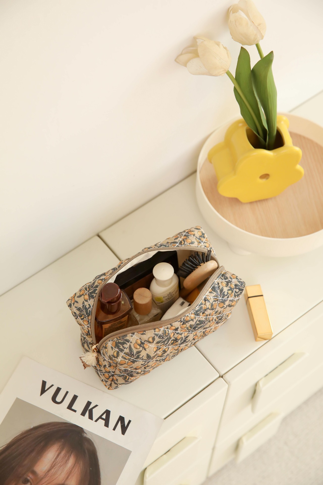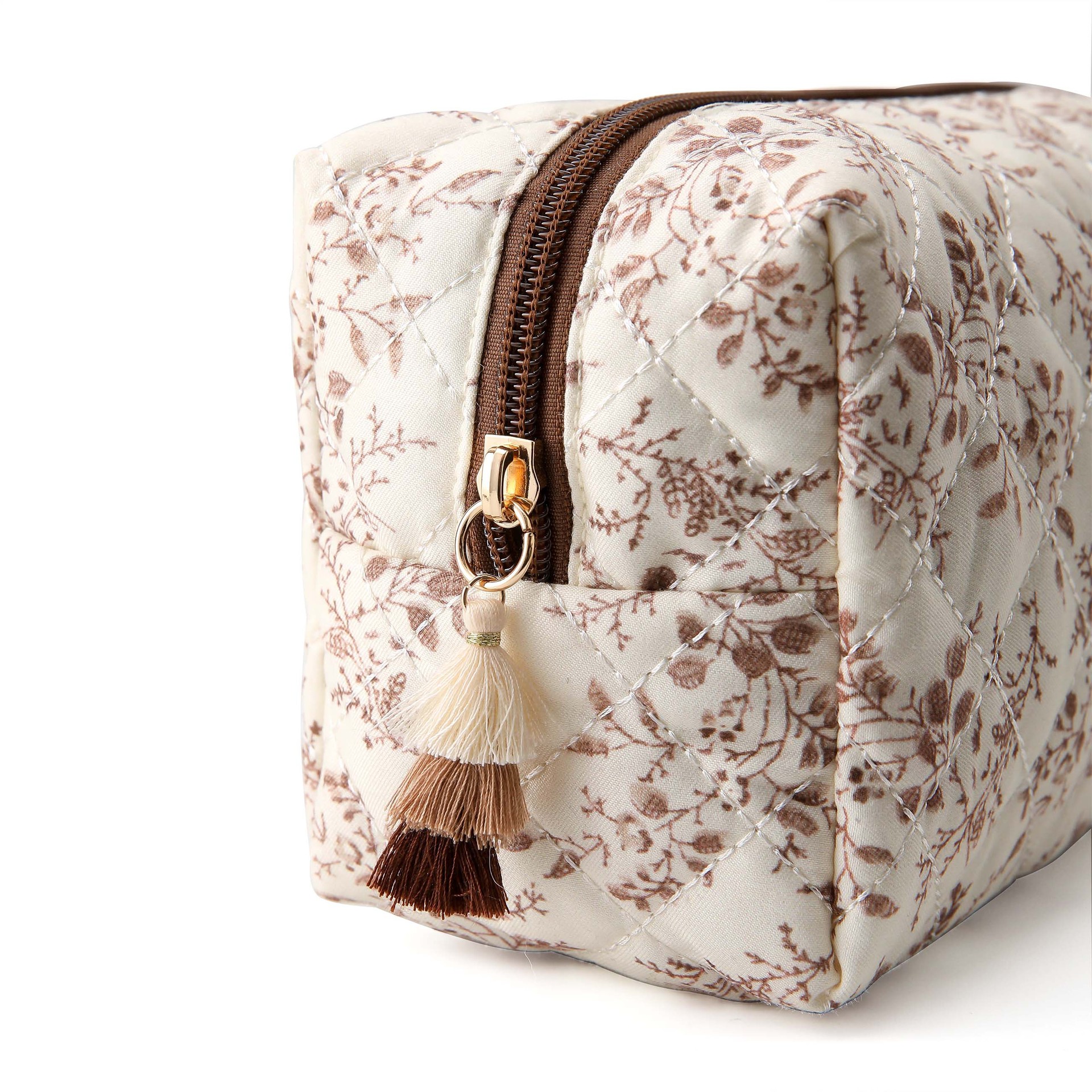 꽃무늬 누비 화장품 가방 대용량 면 수납 세탁 가방 필통 격자 무늬 자수 크로스 보더 인 여성용