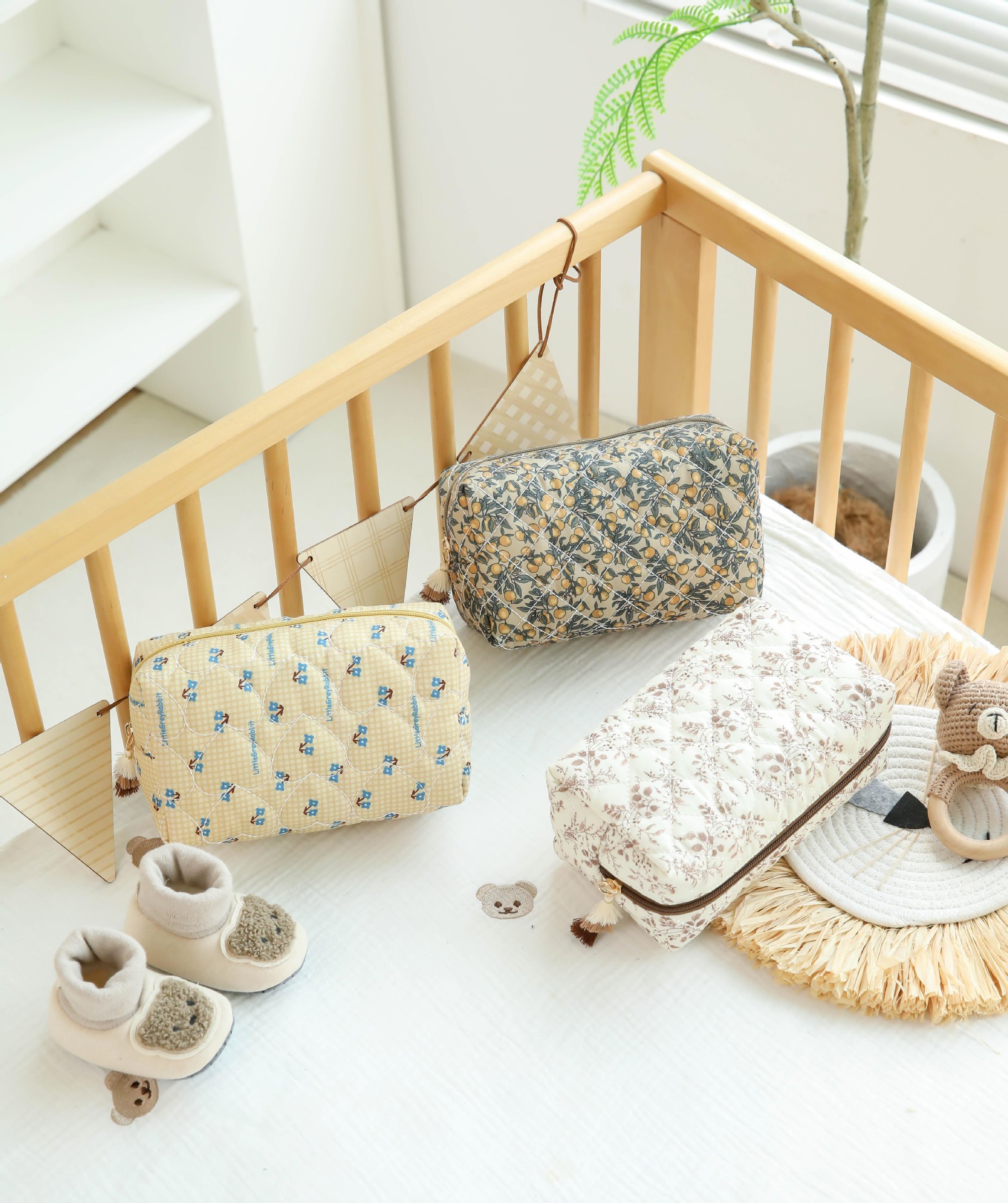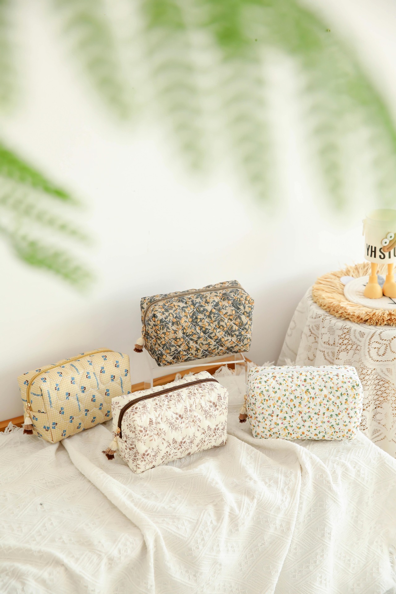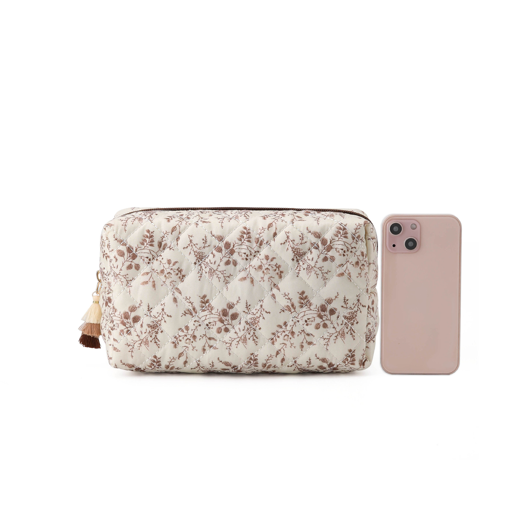 꽃무늬 누비 화장품 가방 대용량 면 수납 세탁 가방 필통 격자 무늬 자수 크로스 보더 인 여성용