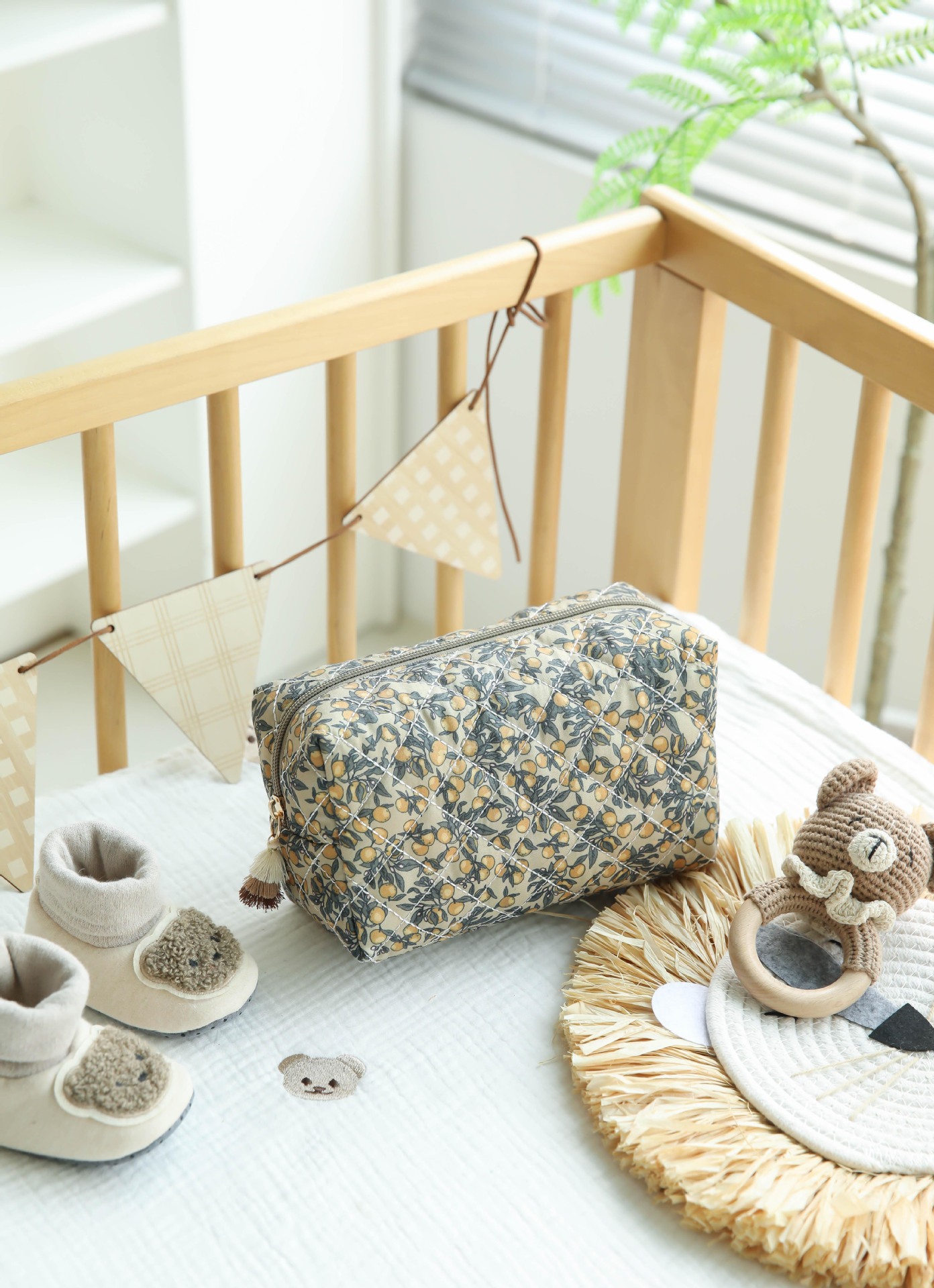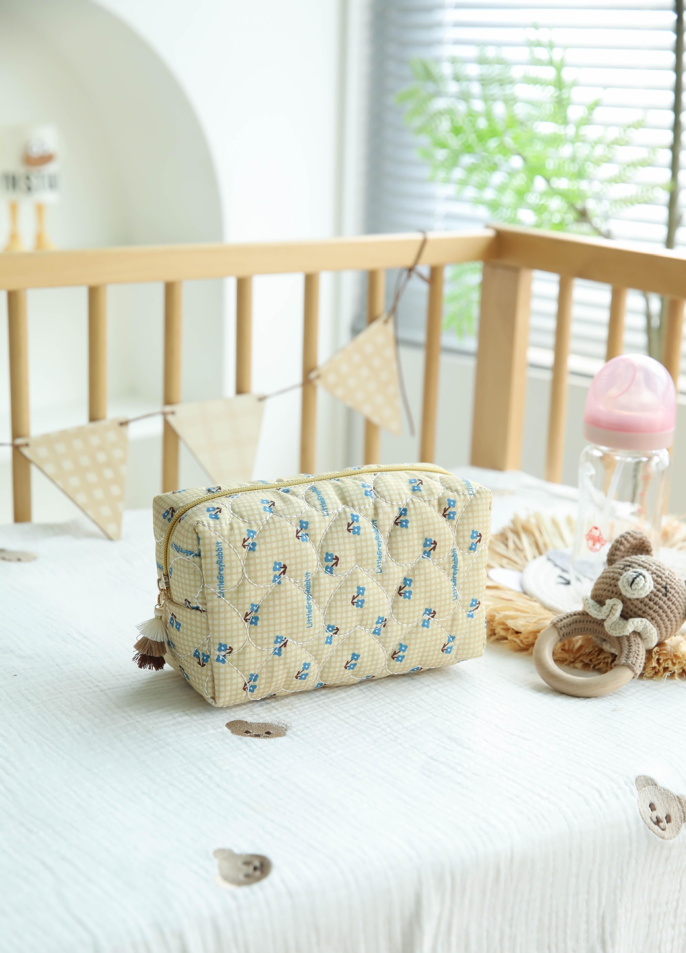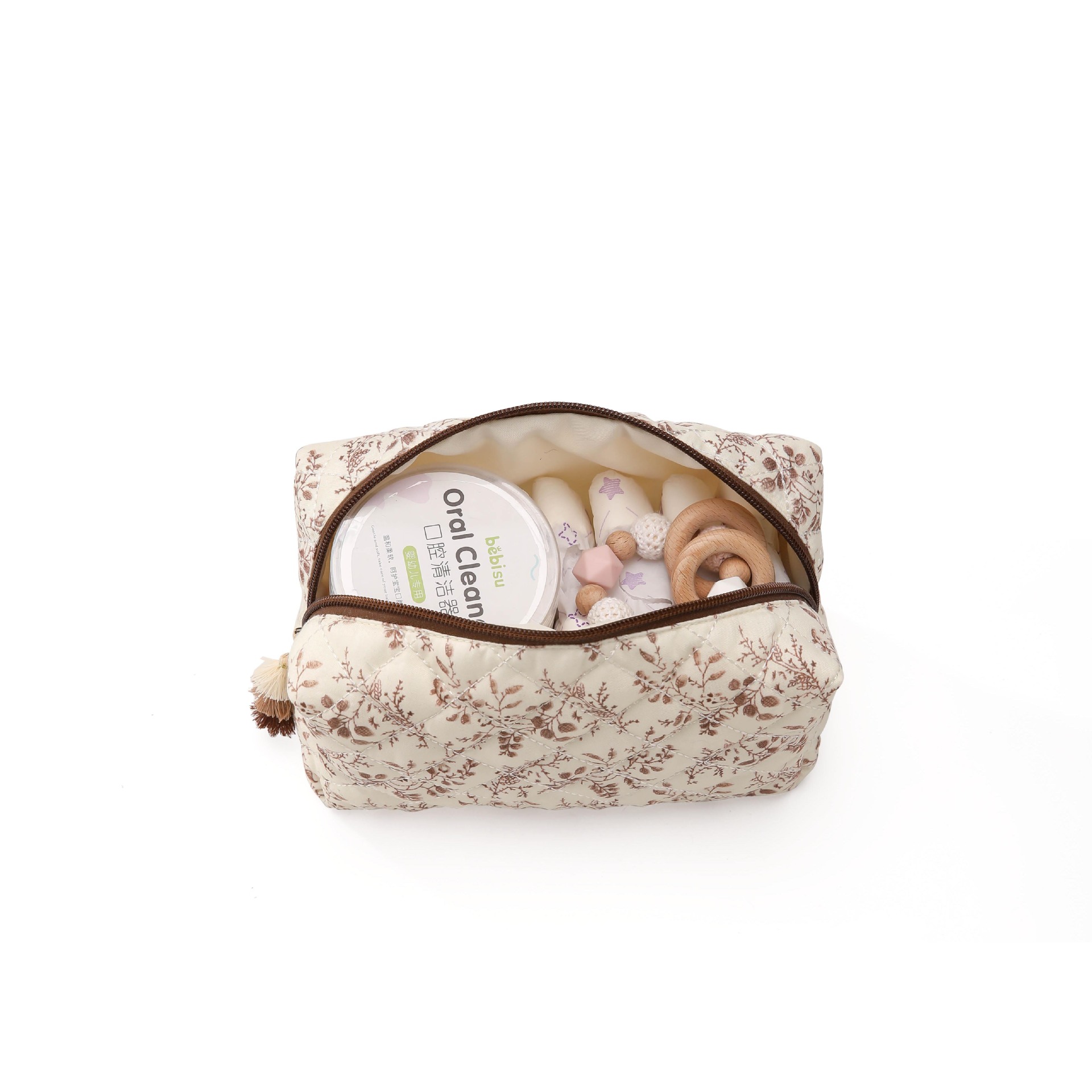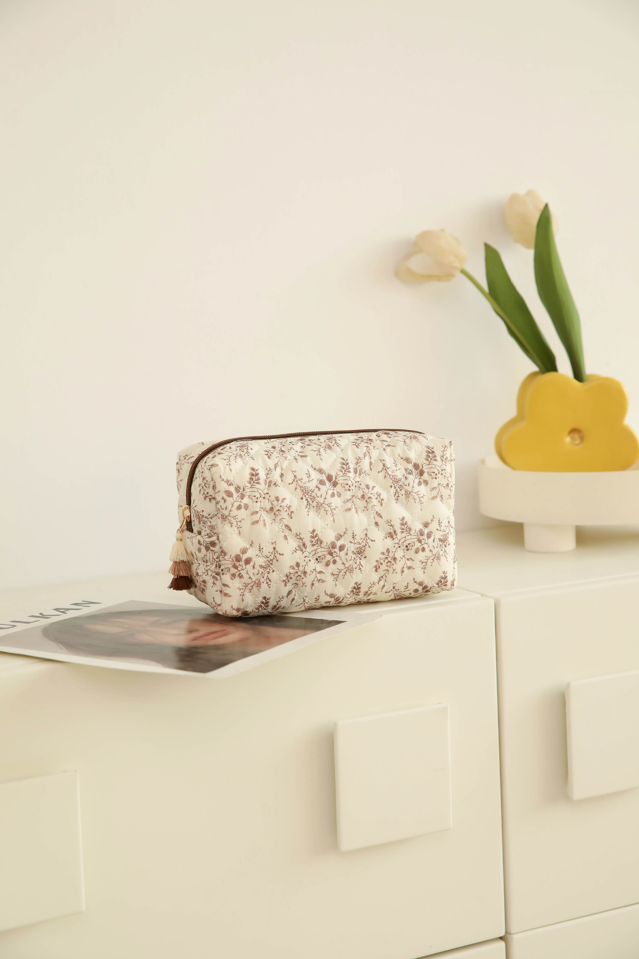 꽃무늬 누비 화장품 가방 대용량 면 수납 세탁 가방 필통 격자 무늬 자수 크로스 보더 인 여성용