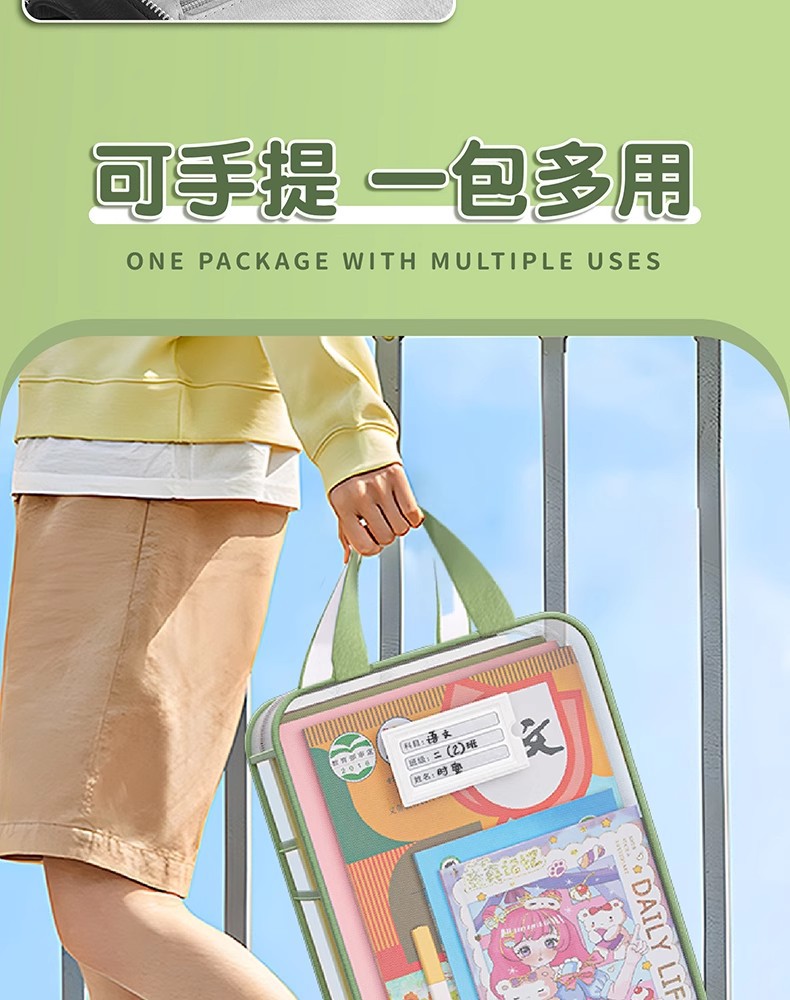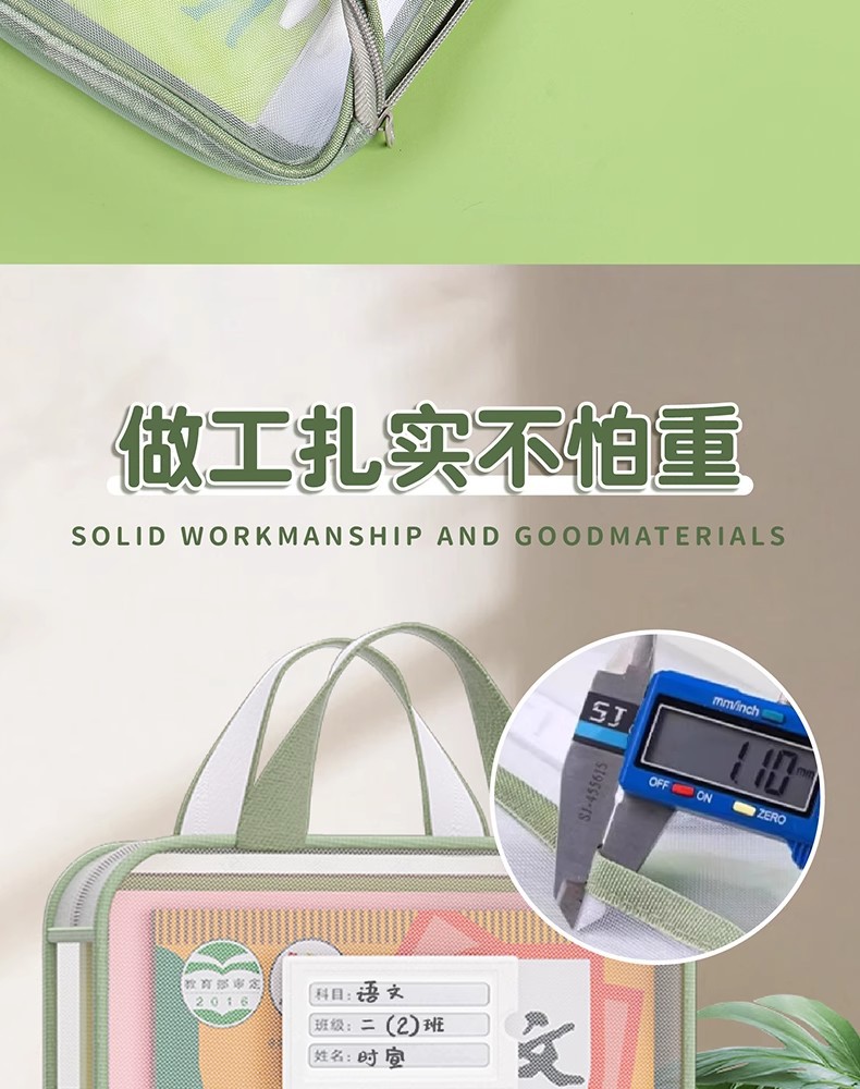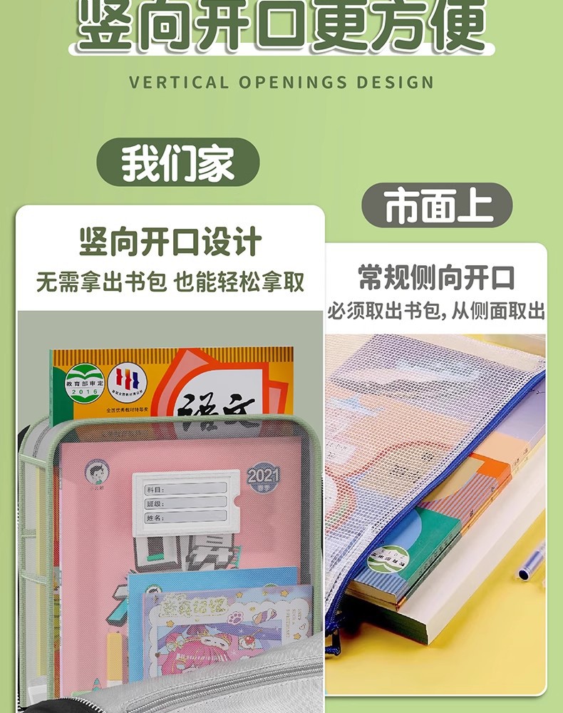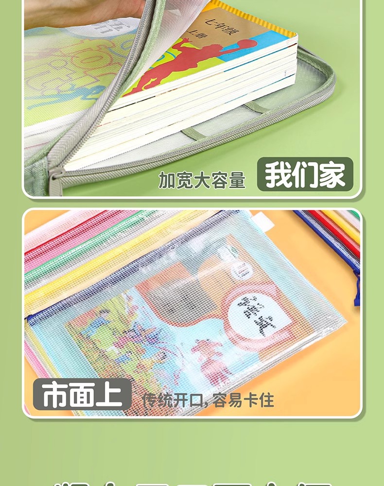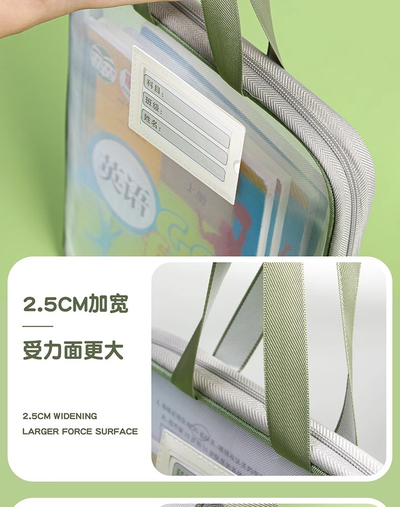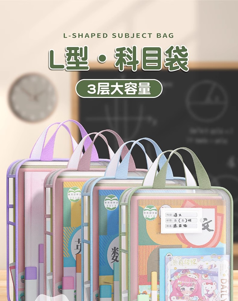 L자형 과목분류가방, 휴대용 투명 L자형 문서가방, 두꺼운 지퍼형 메쉬 과목가방, 학생용 책가방