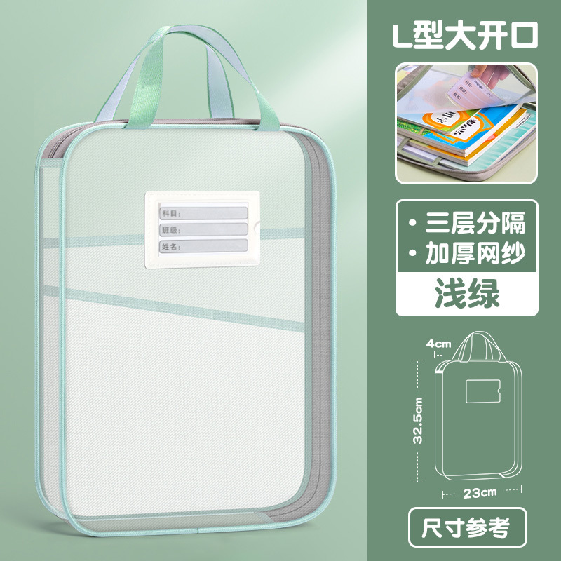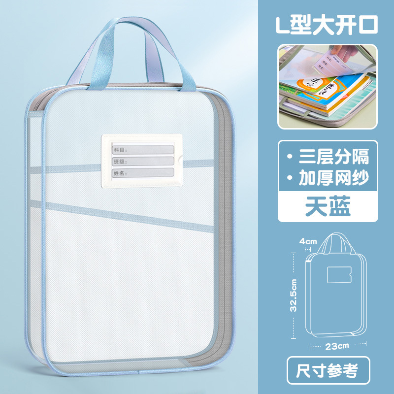 L자형 과목분류가방, 휴대용 투명 L자형 문서가방, 두꺼운 지퍼형 메쉬 과목가방, 학생용 책가방스토어 가기