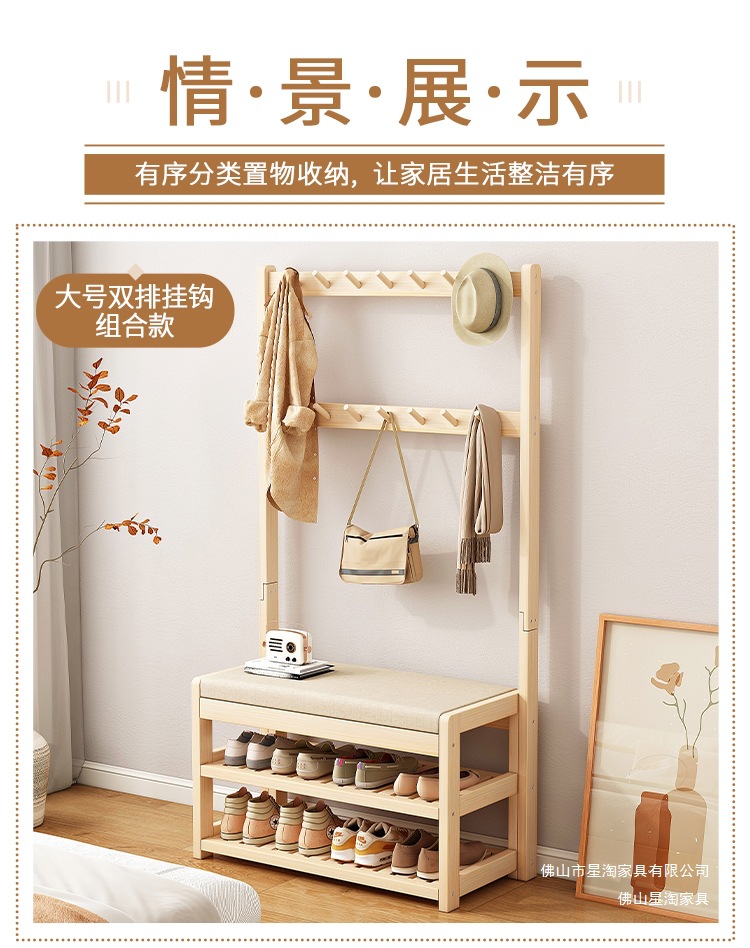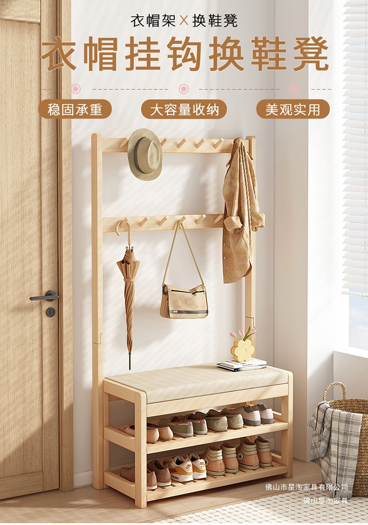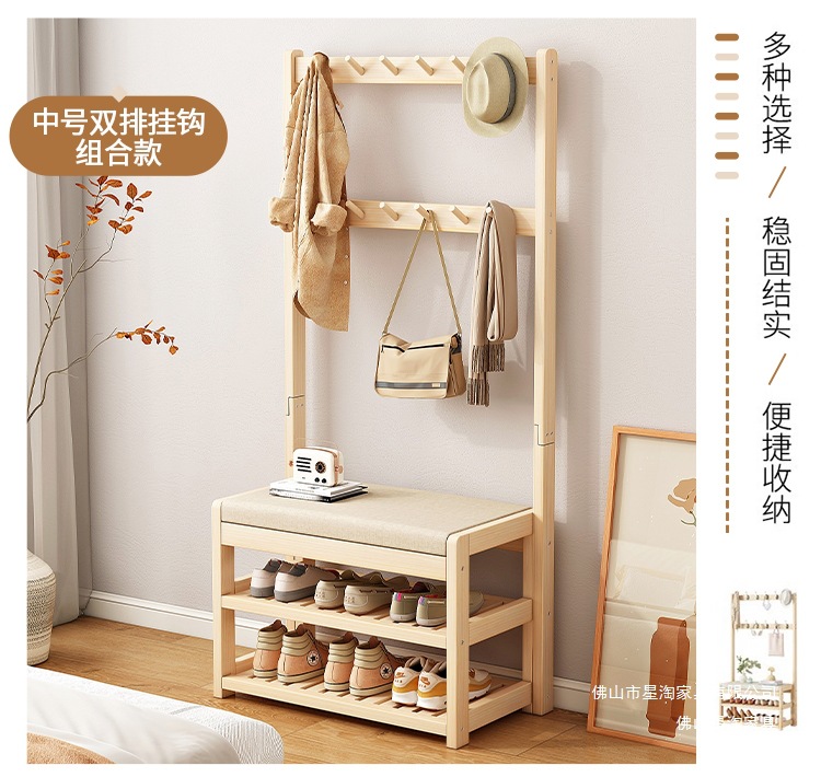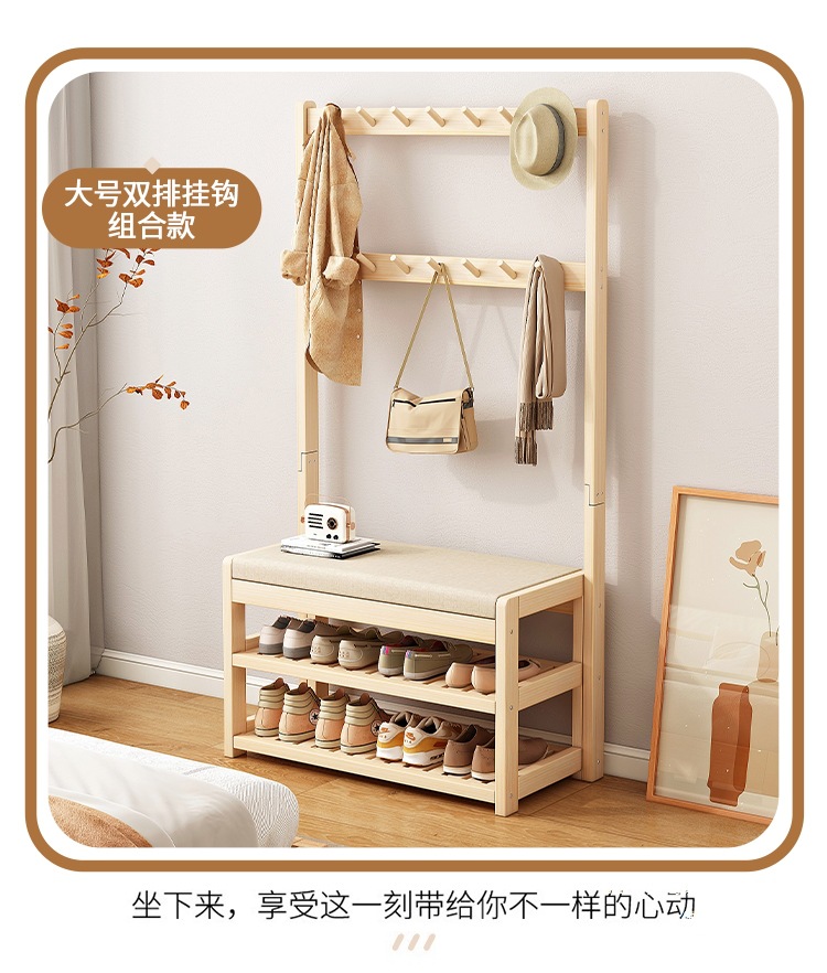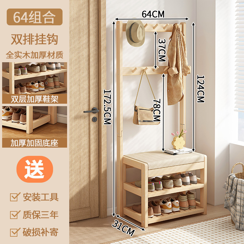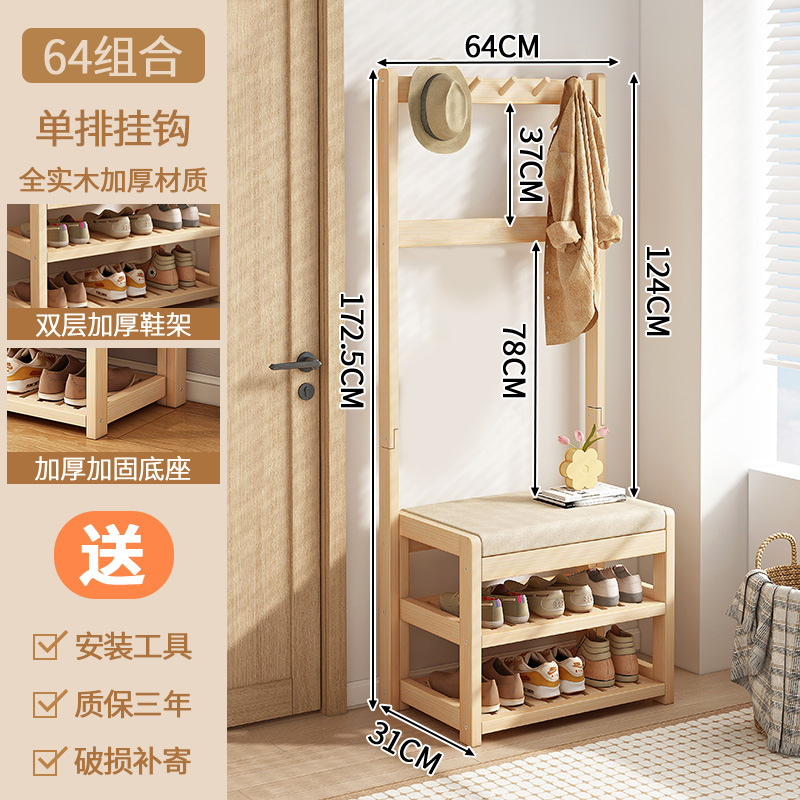 원목 코트 랙, 출입구 신발 교환 의자, 옷걸이, 일체형 출입구, 바닥에서 천장까지, 다기능 침실 수납 걸이