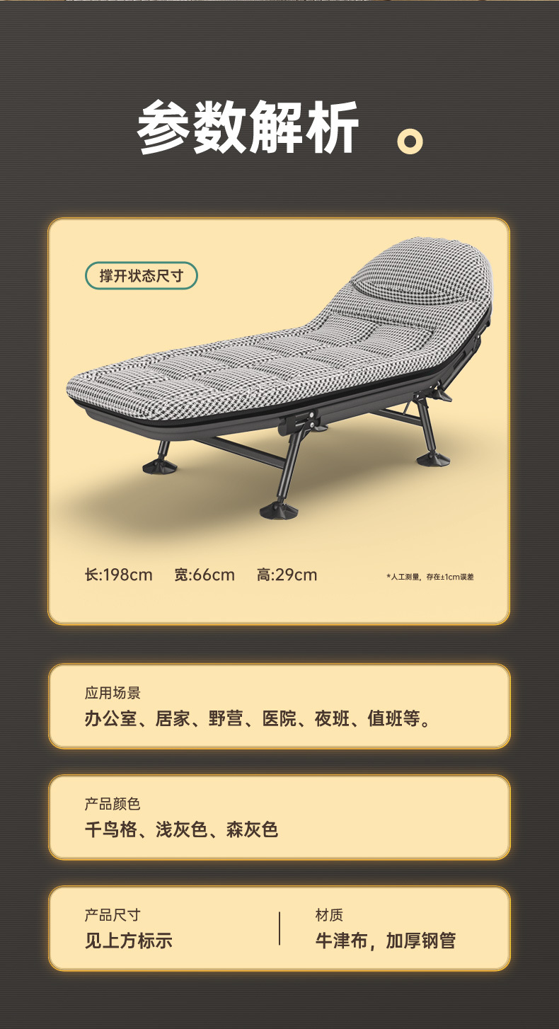 야외용 점심시간 접이식 침대, 심플하고 휴대성이 뛰어난 사무실 캠프 침대, 다기능 안락의자, 동반 침대, 낮잠스토어 가기