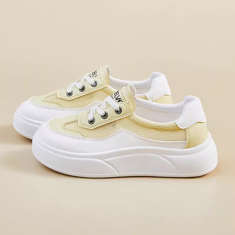 여성을위한 메쉬 통기성 흰색 신발 2025 새로운 여름 플랫폼 두꺼운 밑창 인기 얇은 캐주얼 스포츠 보드 신발